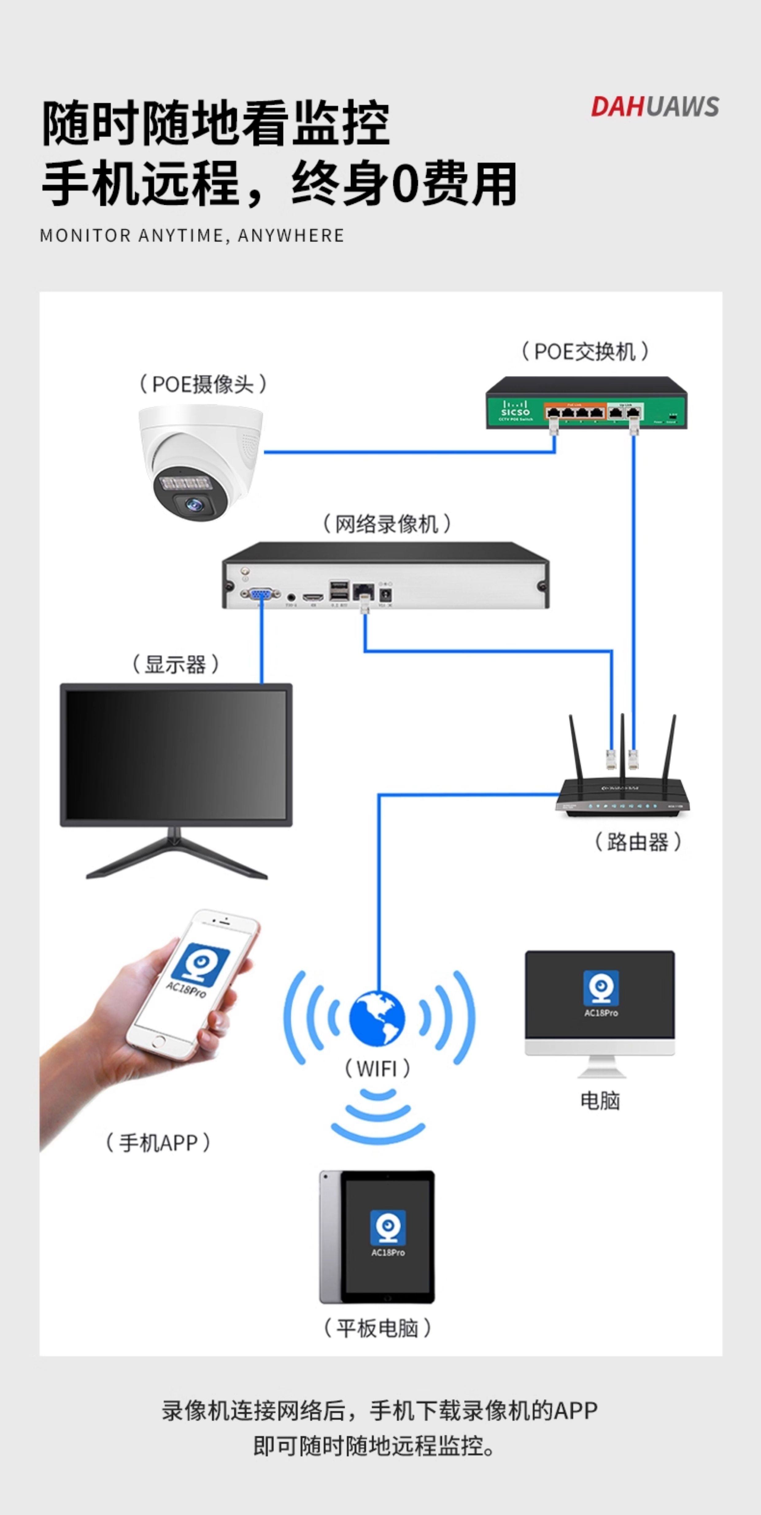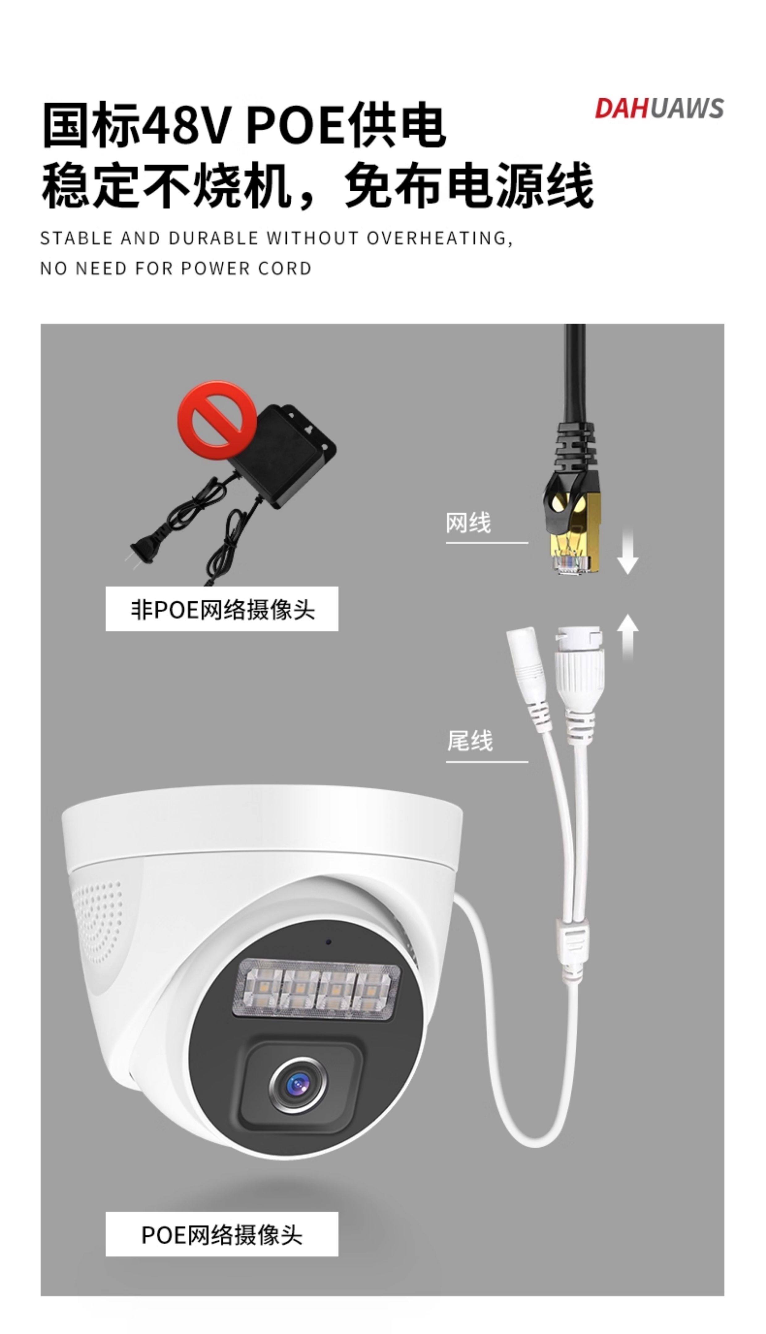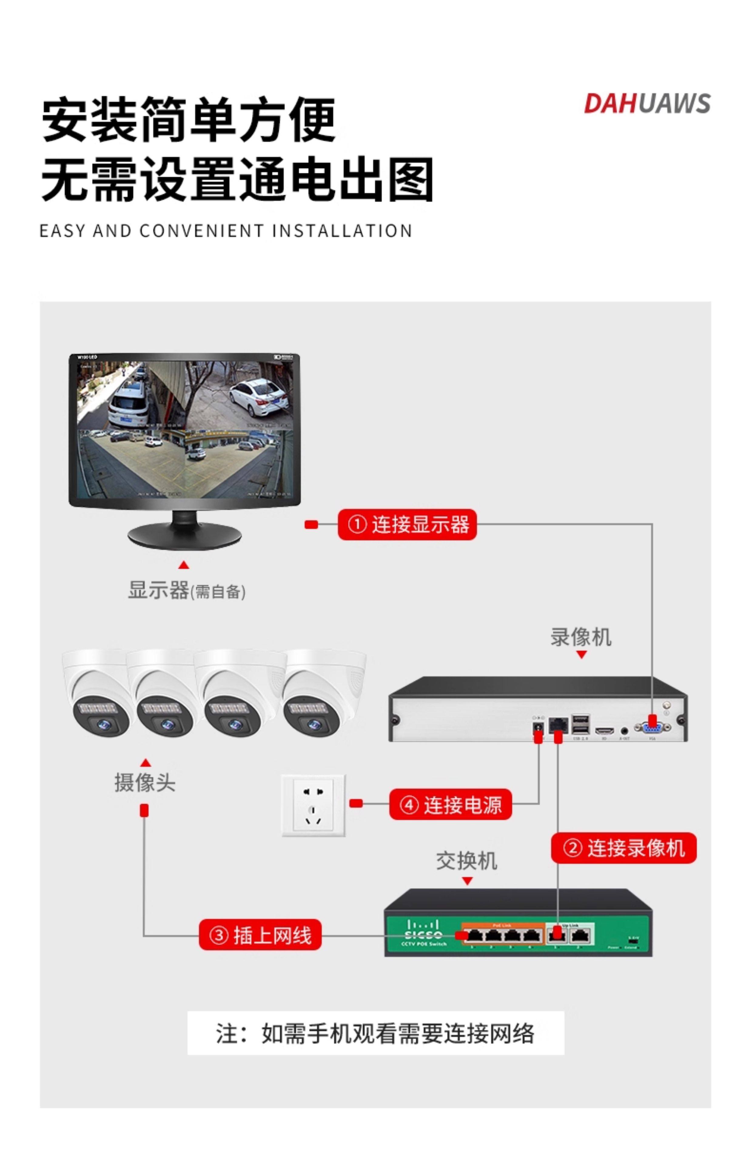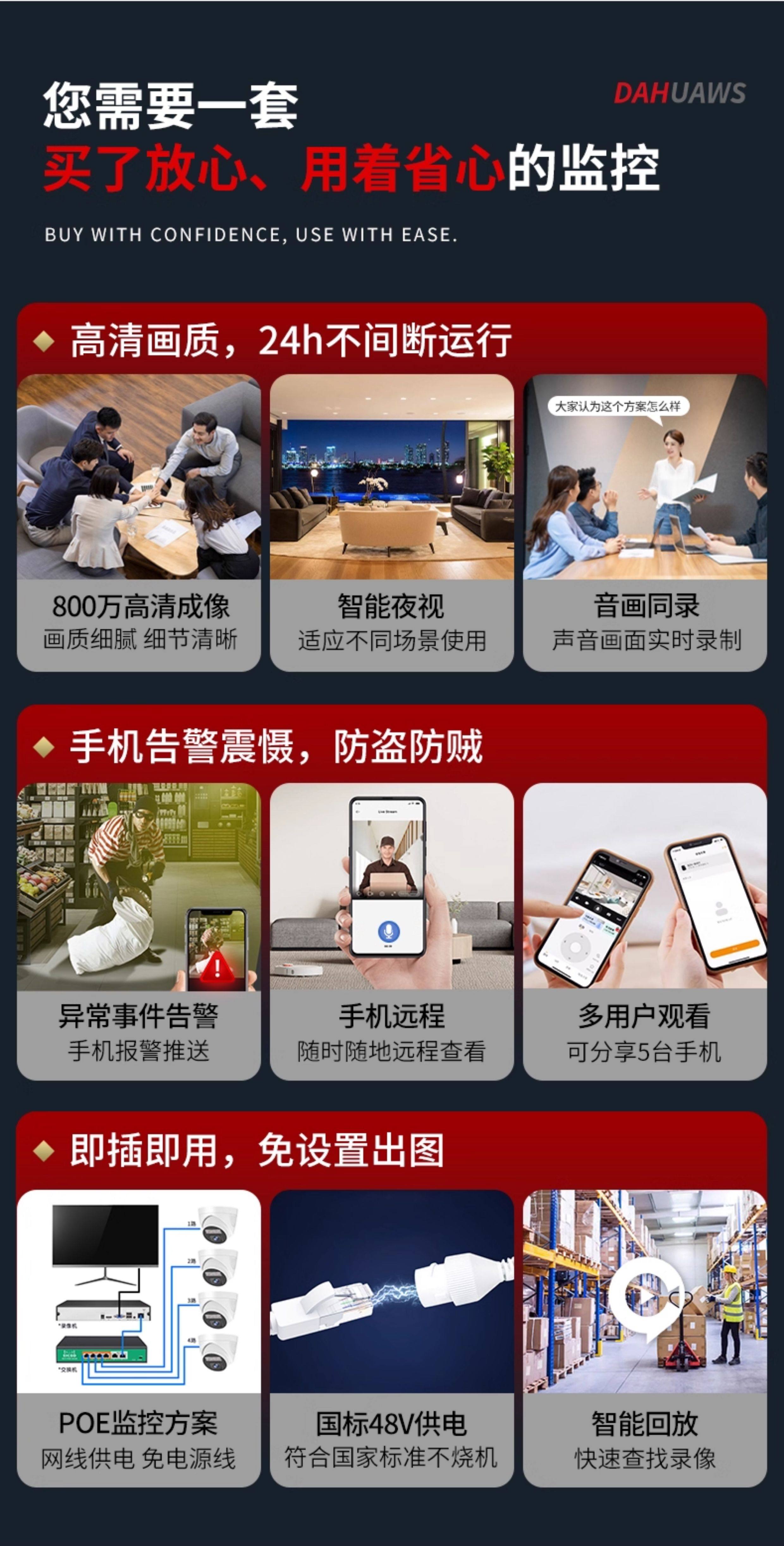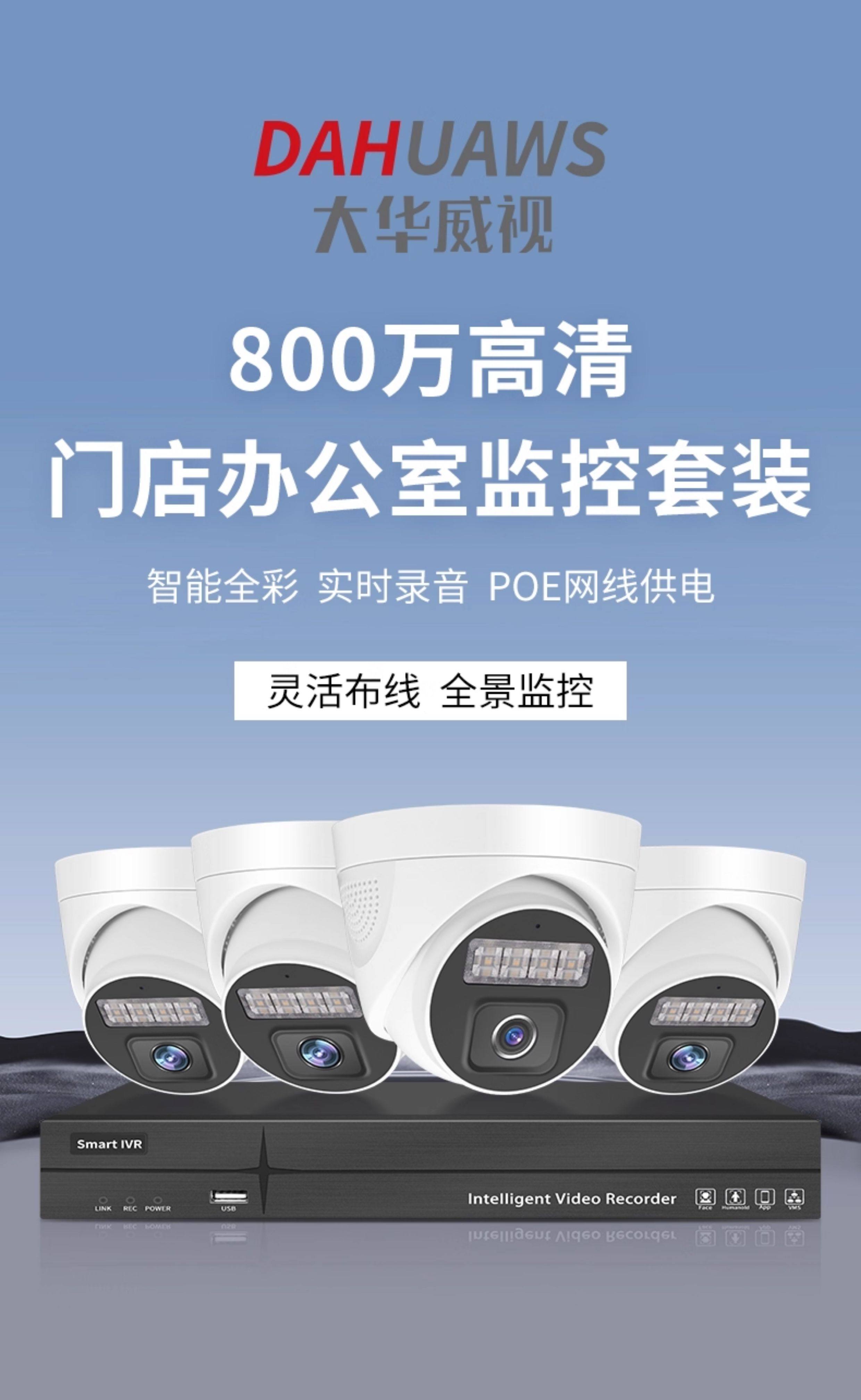 大华威视4K高清监控器设备套装全套poe网线供电摄像头商用家用超市店铺办公室内半球摄影头系统手机远程