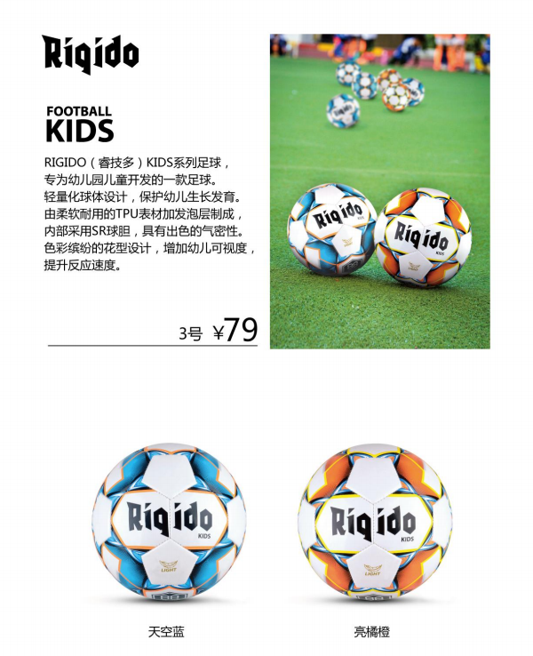 RIGIDO训练球比赛球专为幼儿园开发的足球KIDS3号球天空蓝 亮橘橙