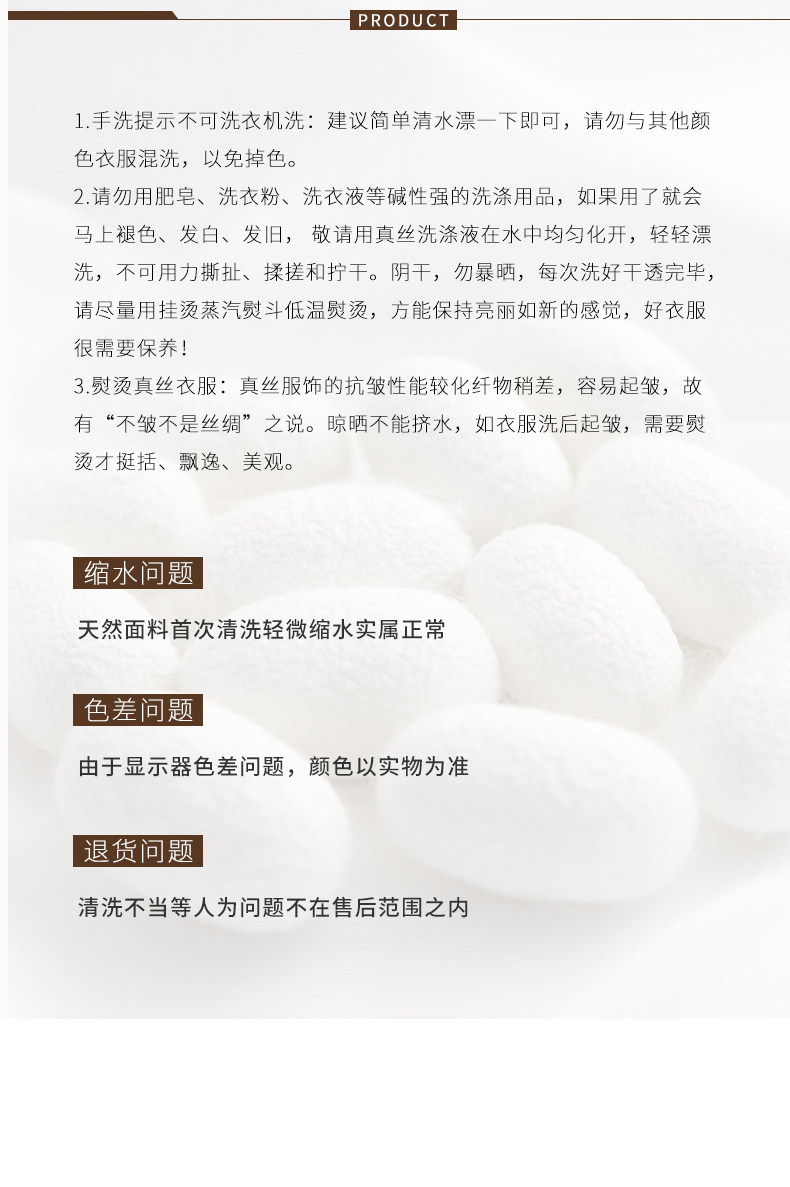 Material Composition 92% Mulberry Silk, 8% Polyurethane Elastic Fiber (Spandex)