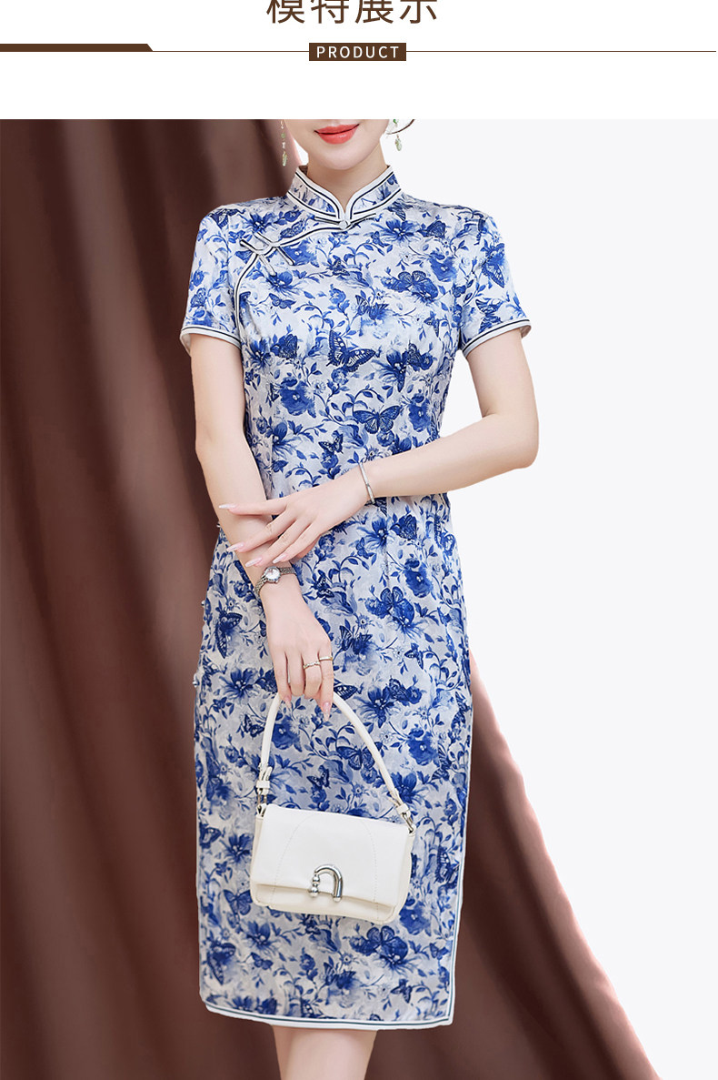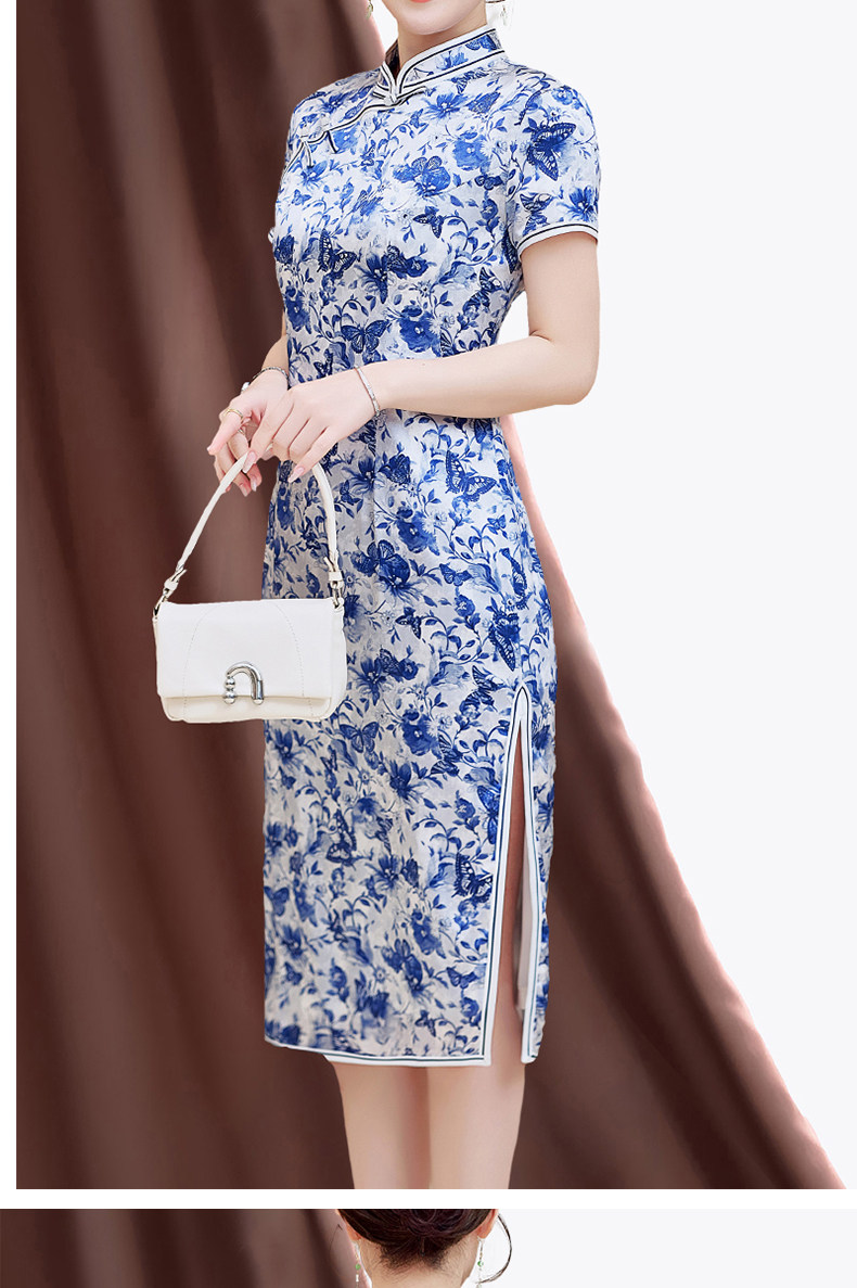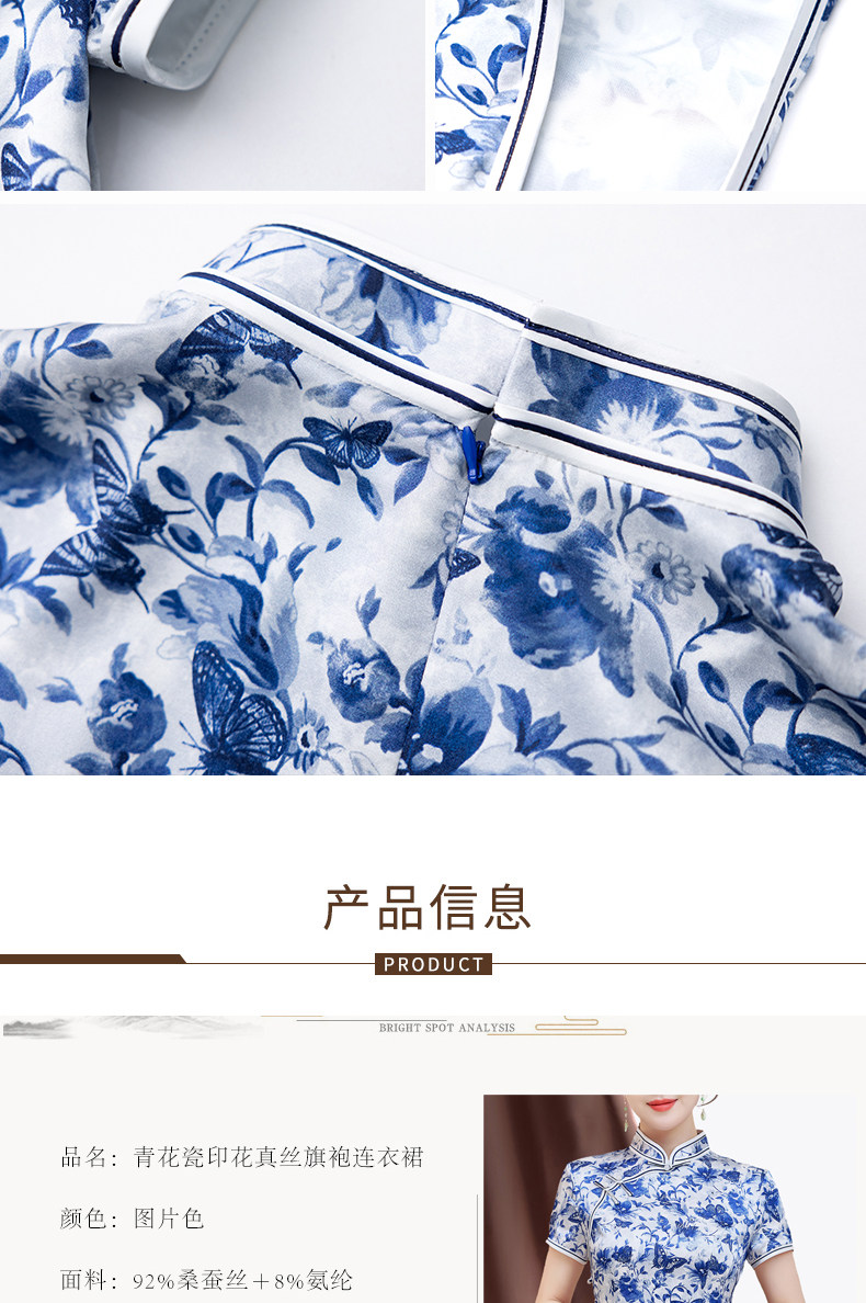 Summer New Style, Modernized Chinese Style, Blue and White Porcelain Print Cheongsam, Silk Dress, Petite Mulberry Silk Dress