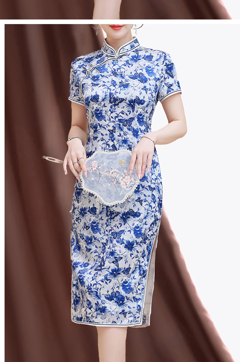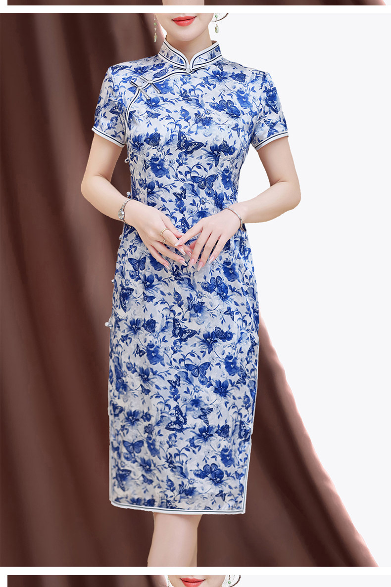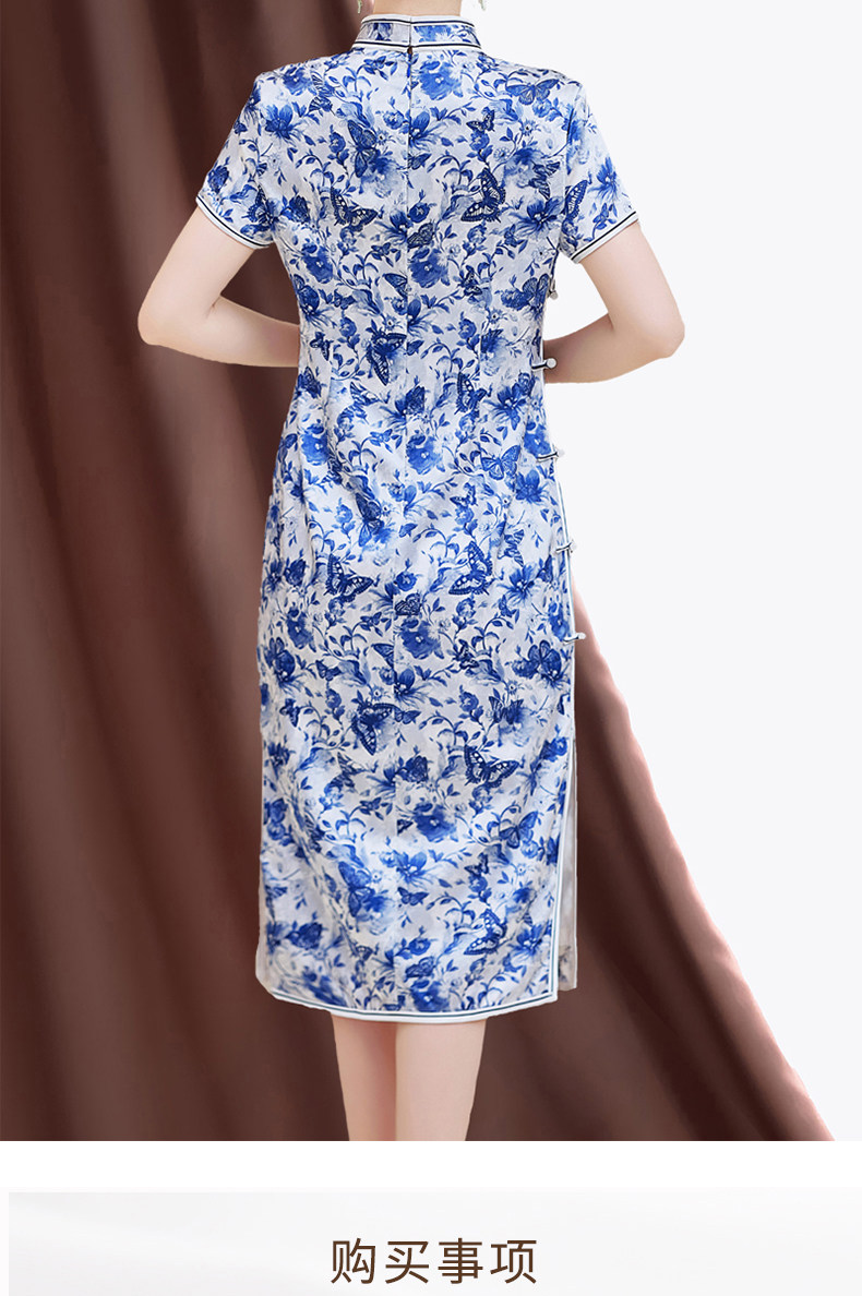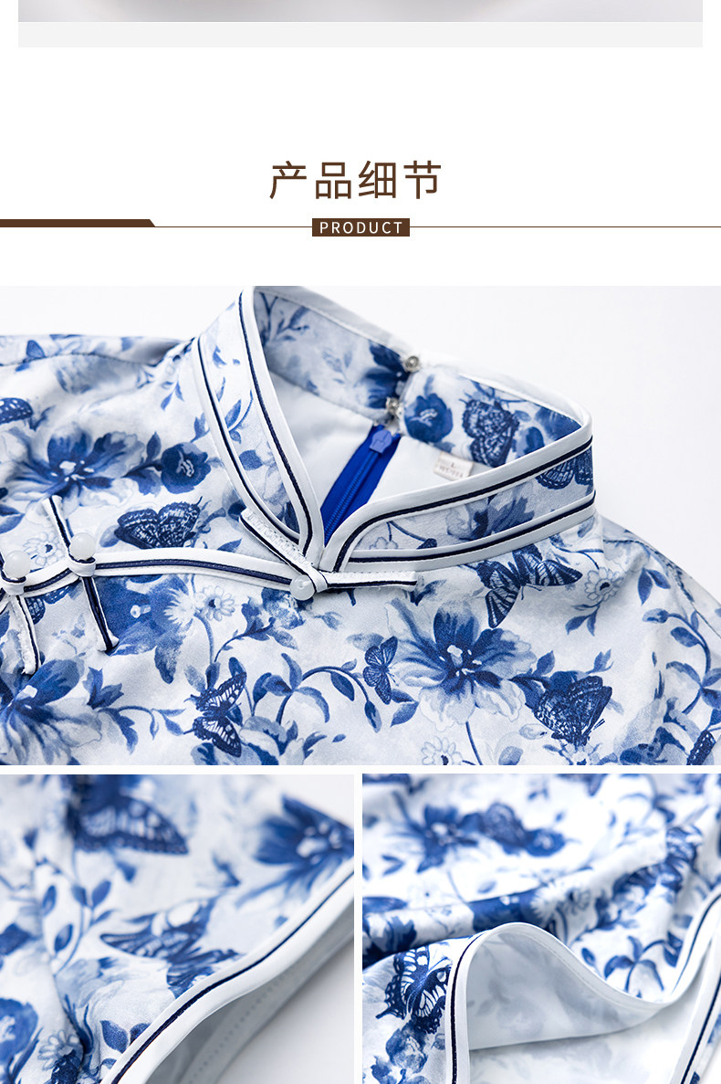 Summer New Style, Modernized Chinese Style, Blue and White Porcelain Print Cheongsam, Silk Dress, Petite Mulberry Silk Dress
