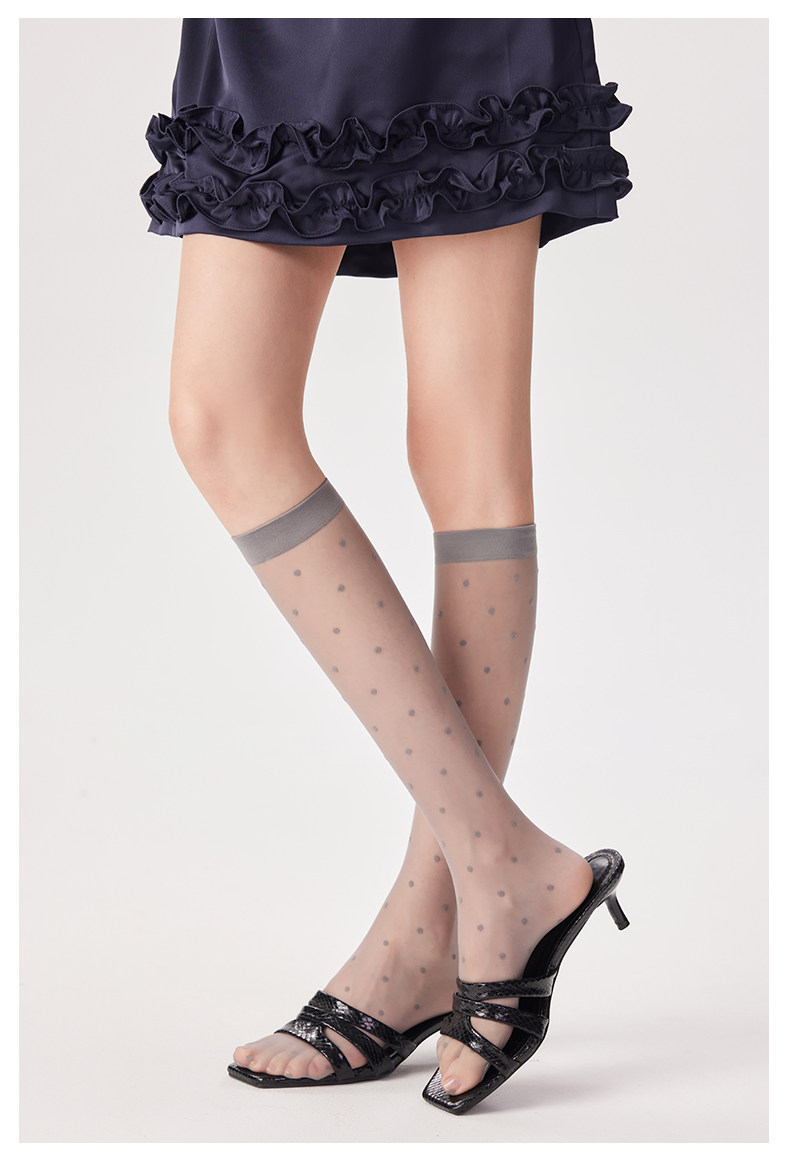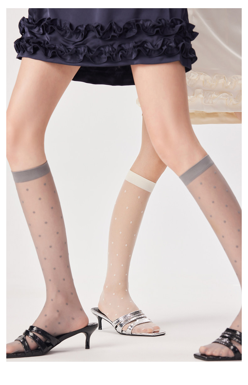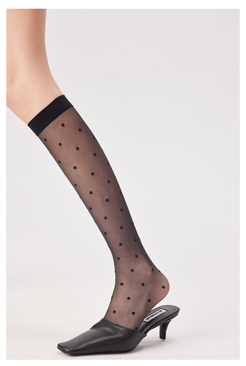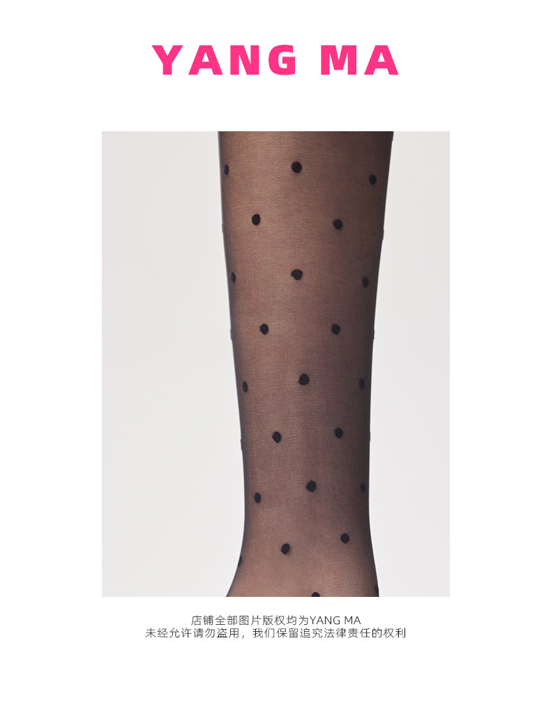 YANGMA袜子女款夏季小腿袜过膝薄黑丝袜防勾丝长筒波点jk配小皮鞋