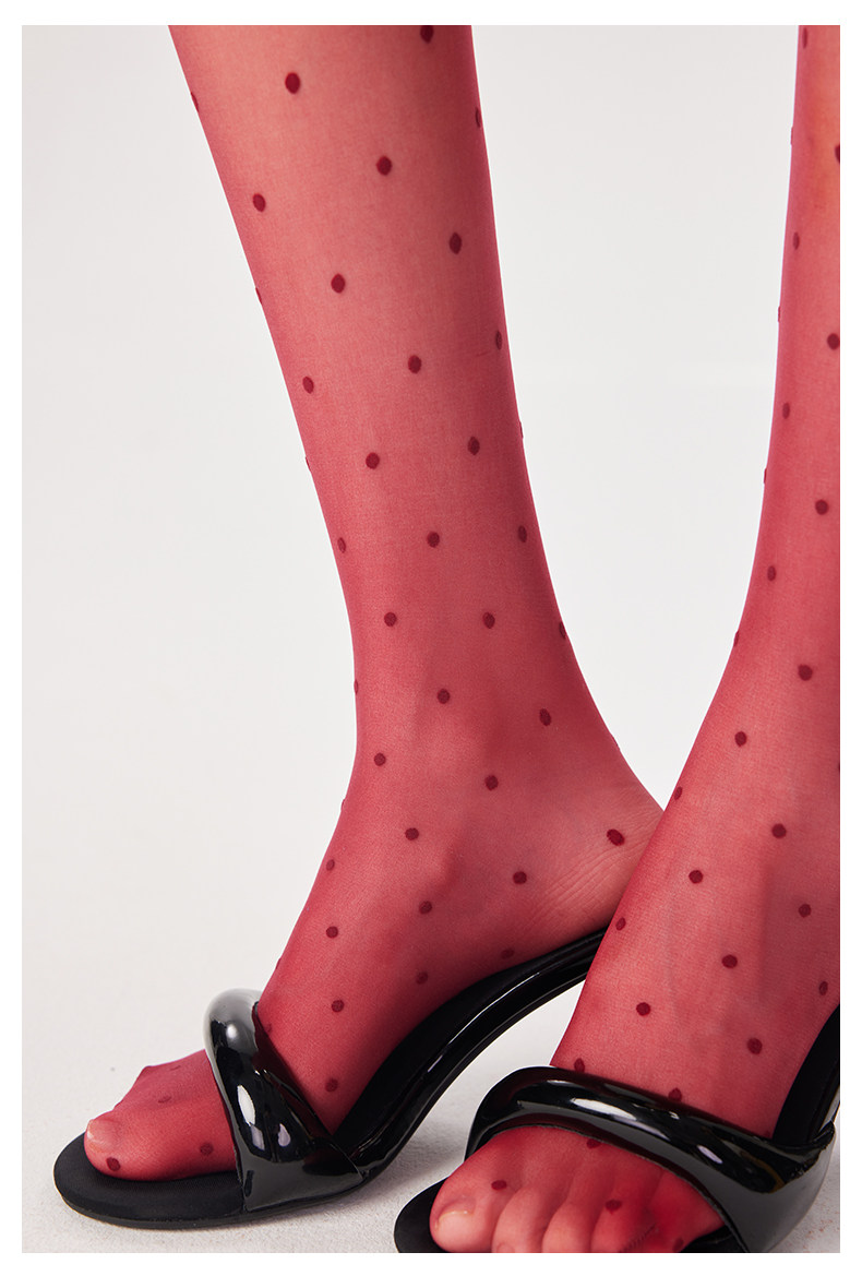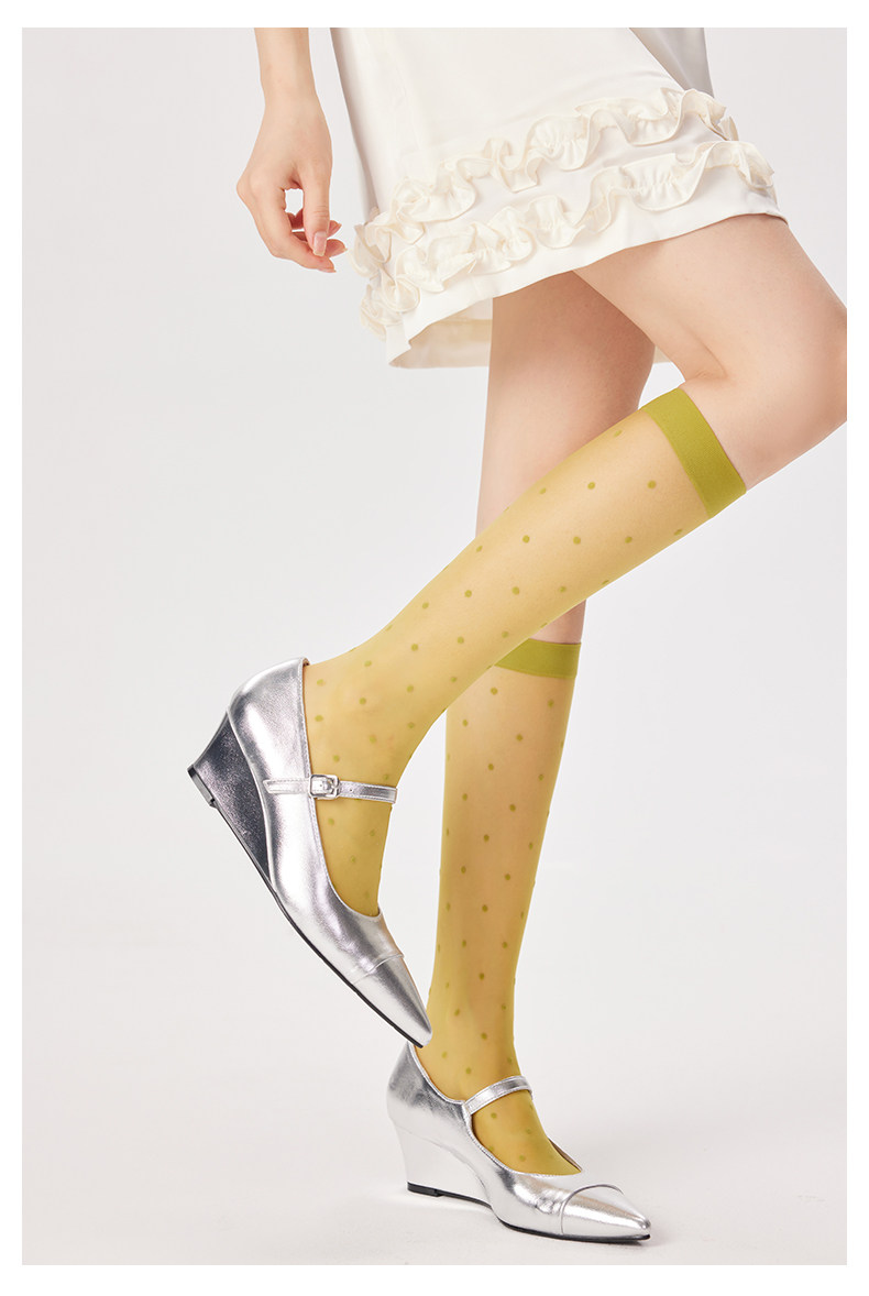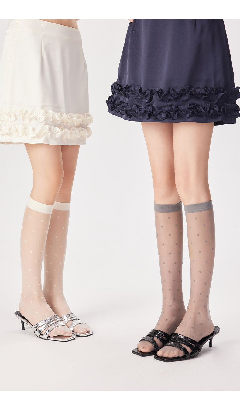 YANGMA袜子女款夏季小腿袜过膝薄黑丝袜防勾丝长筒波点jk配小皮鞋