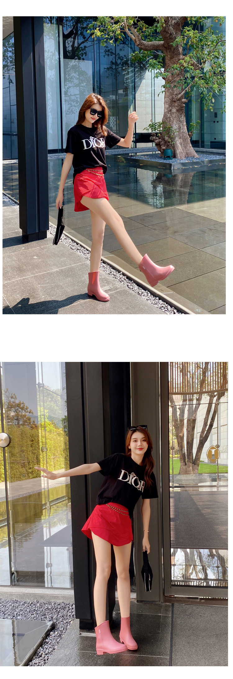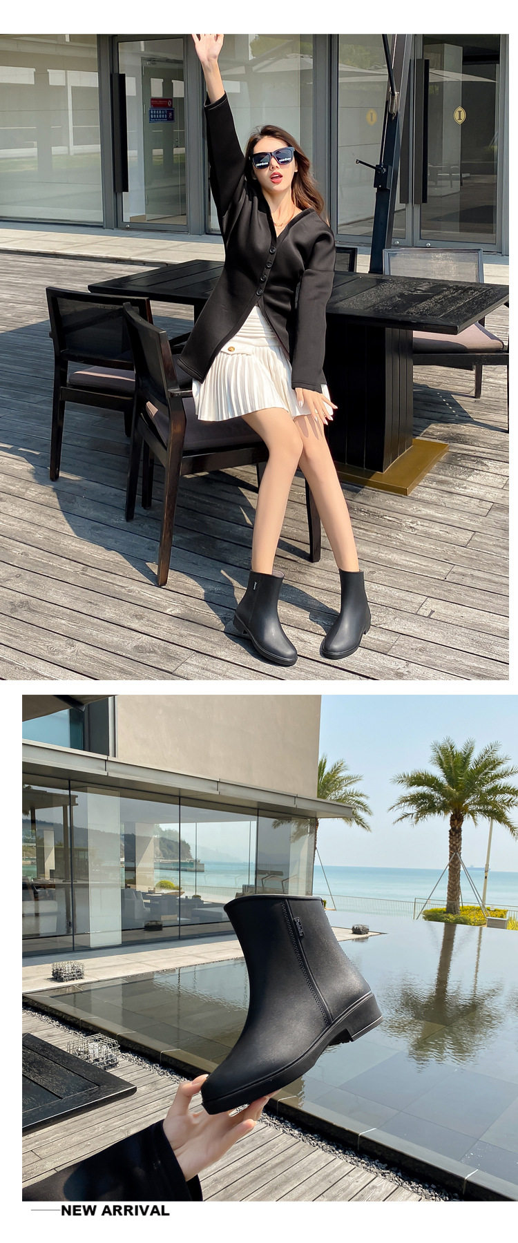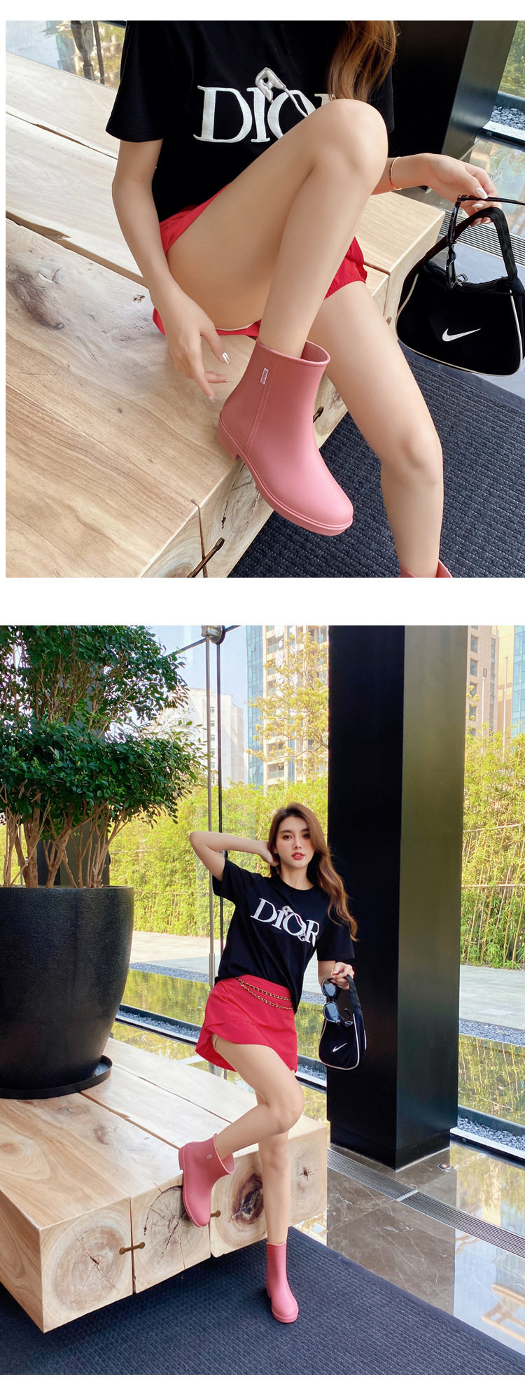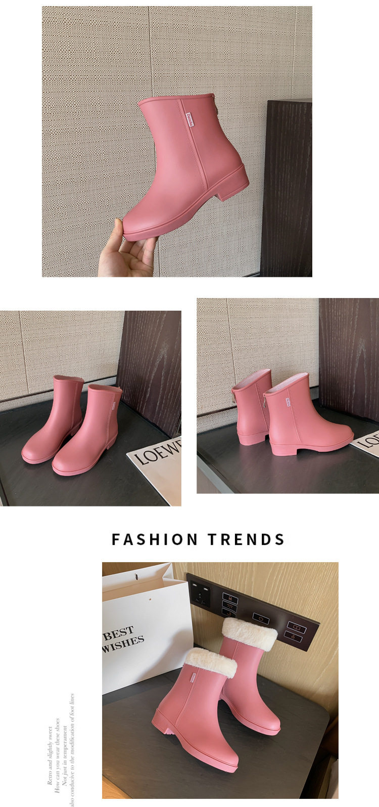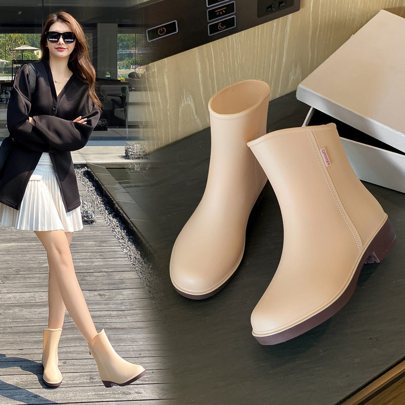 Korean Style Rain Boots for Women, Fashionable Outerwear Rain Boots, Mid-Calf Women's Water Shoes, Non-Slip, Waterproof Kitchen Rubber Shoes, Overshoes