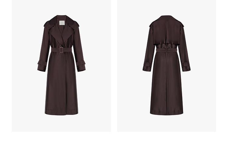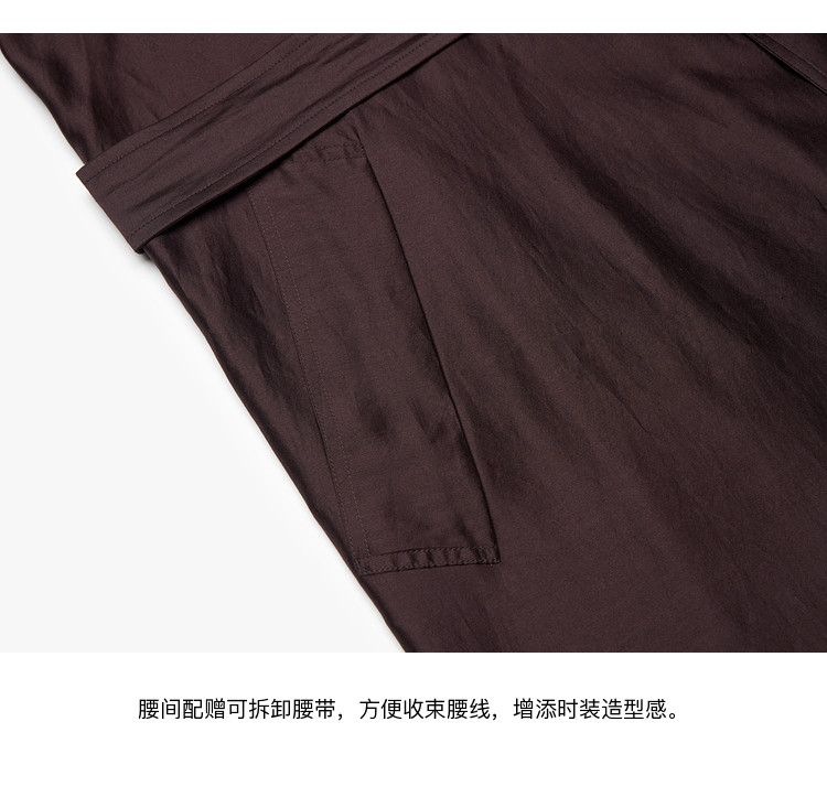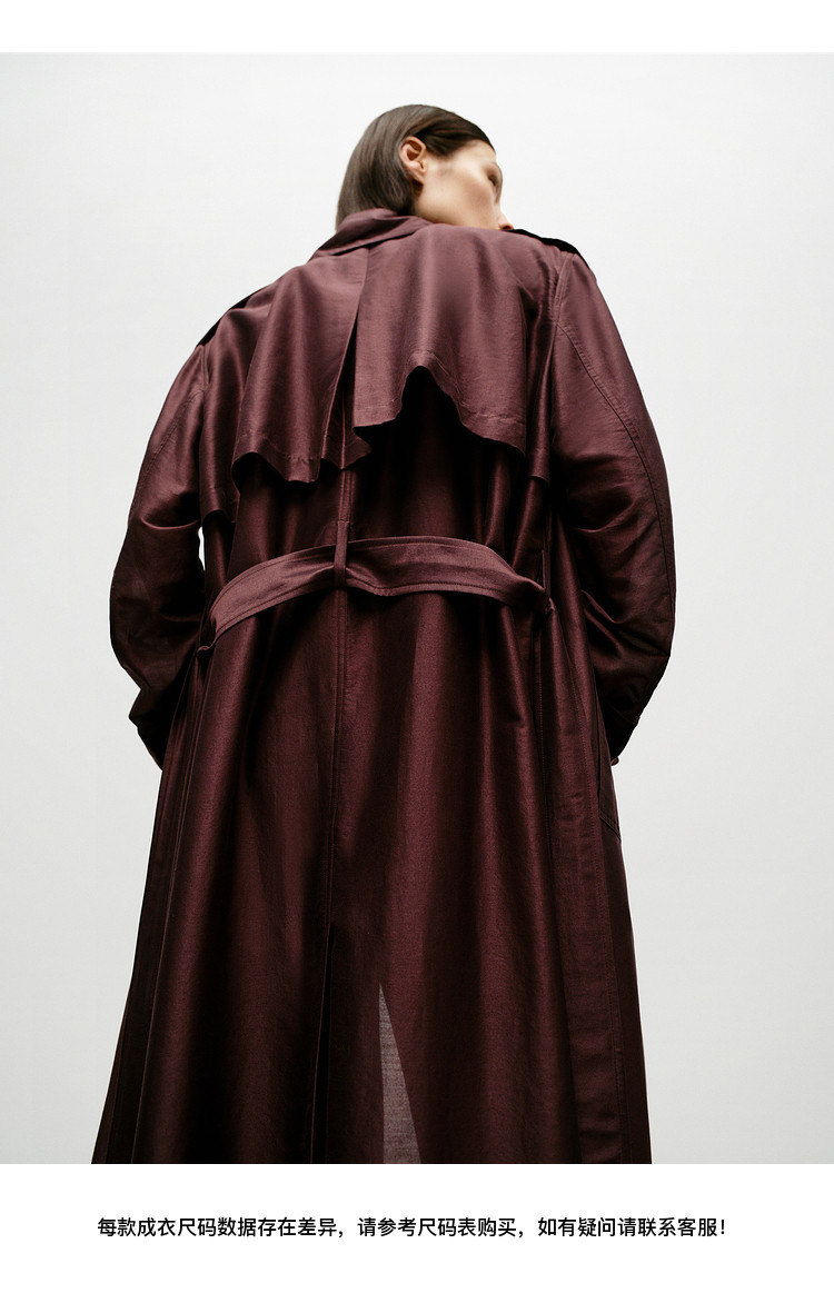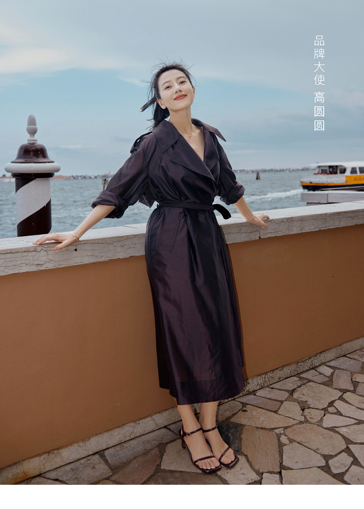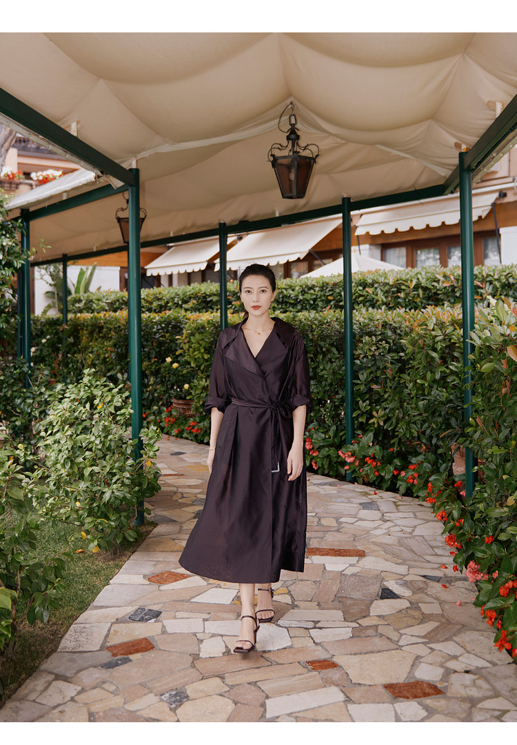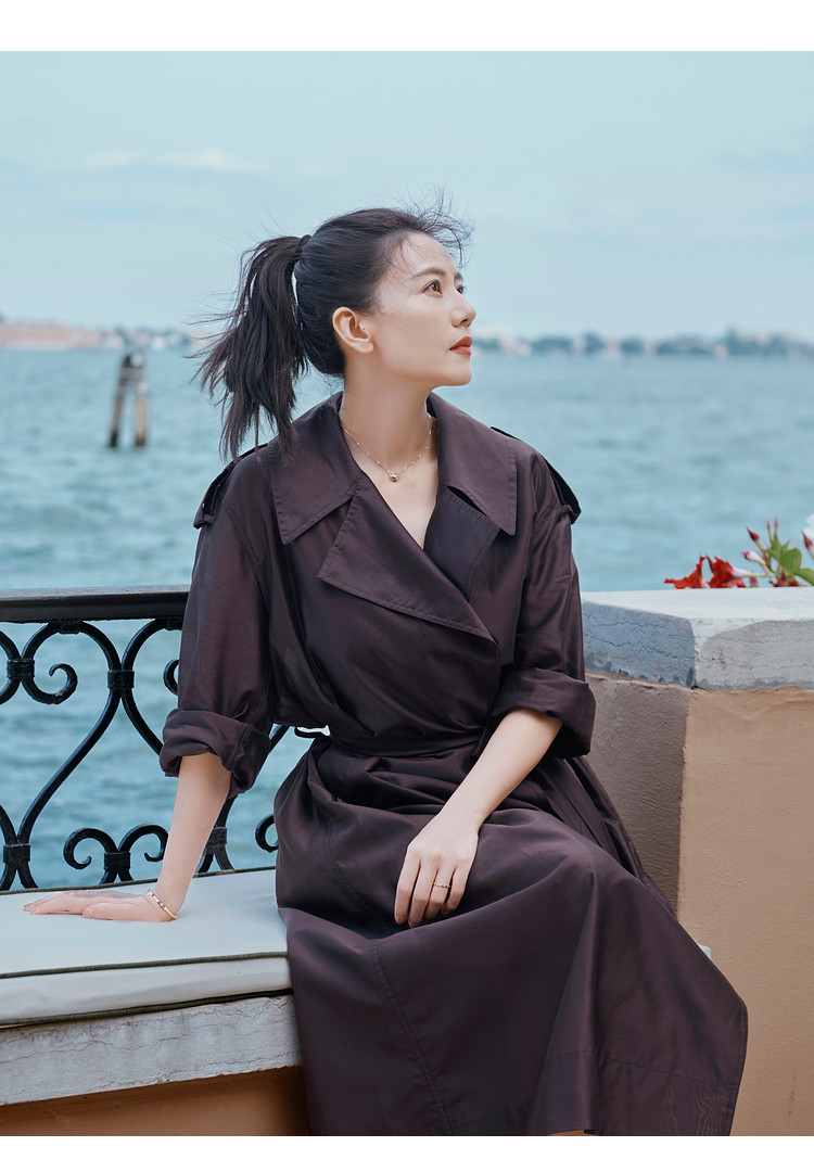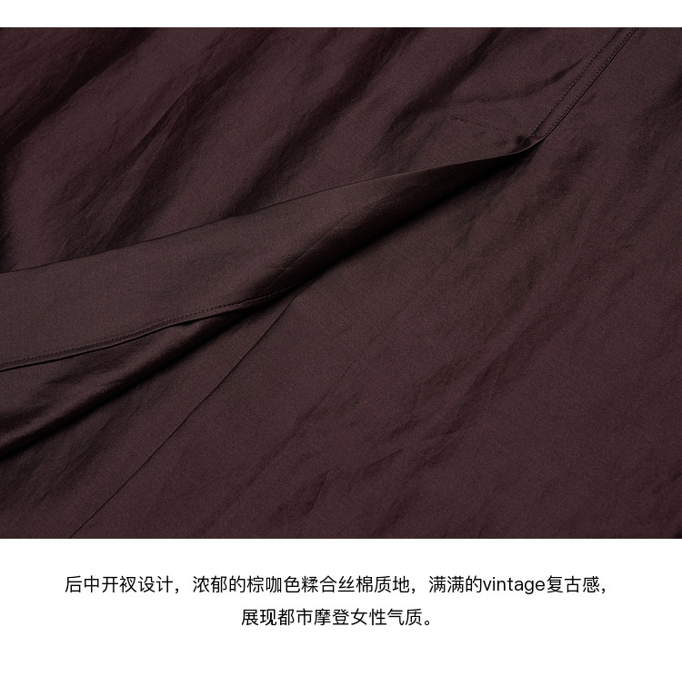 [Same Style as Gao Yuanyuan] Edition Autumn New Brown Coffee Color Silk Cotton Lightweight Trench Coat Ebd3Trc005