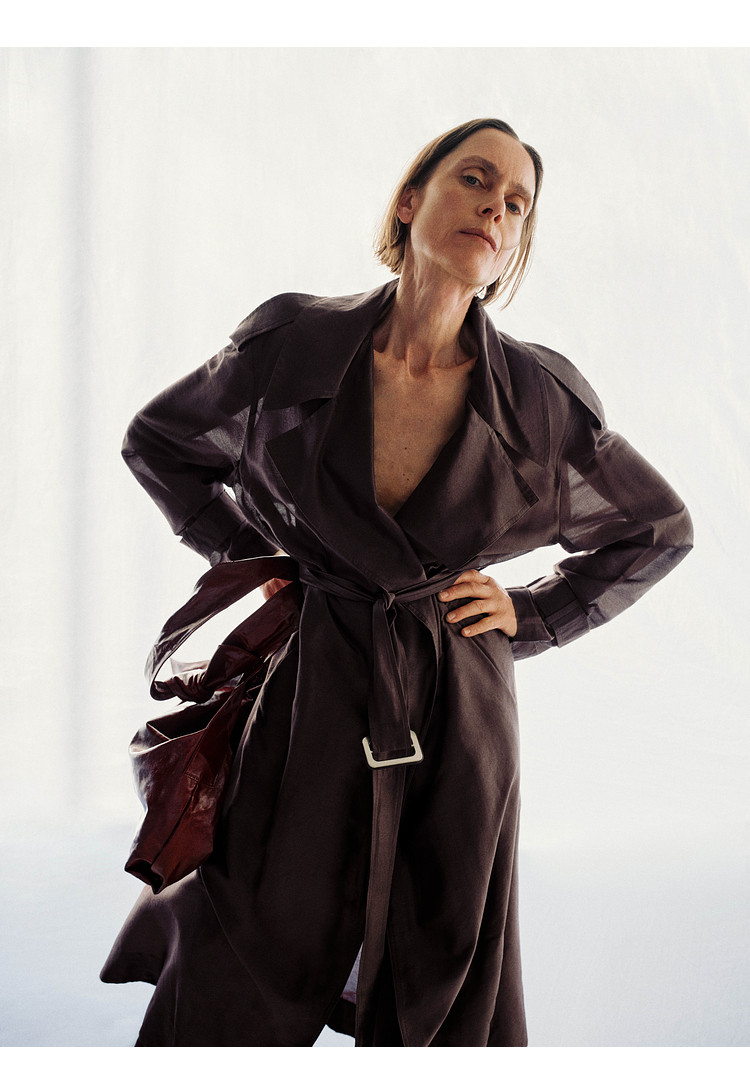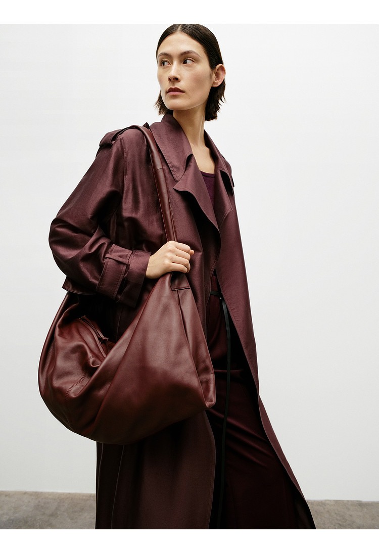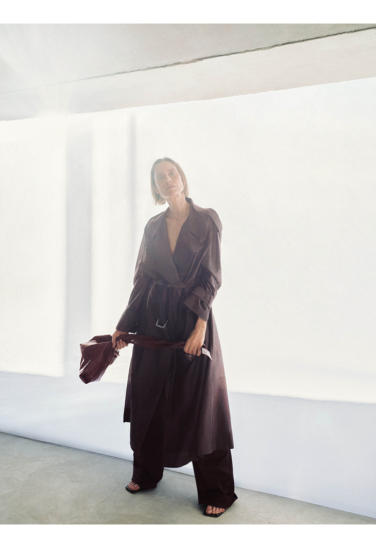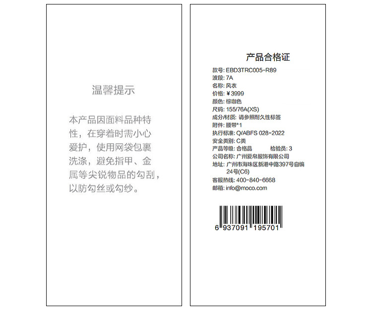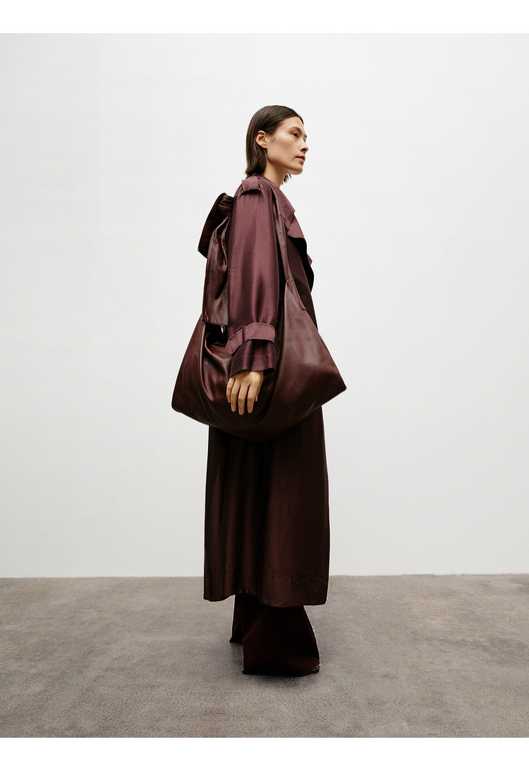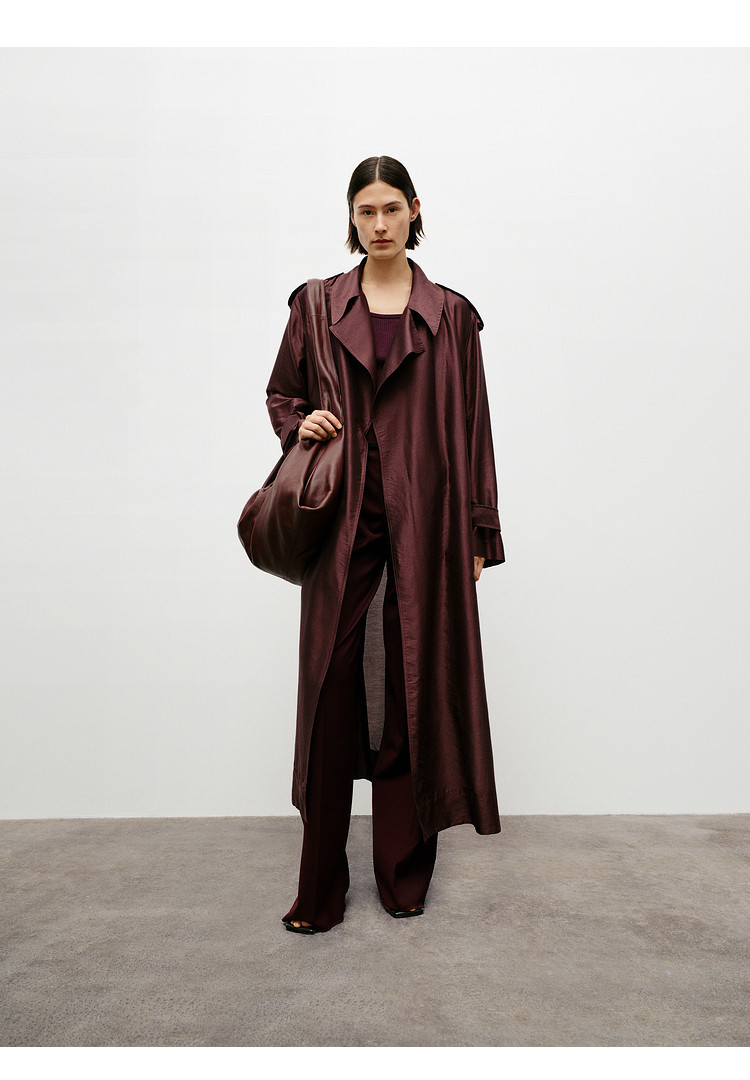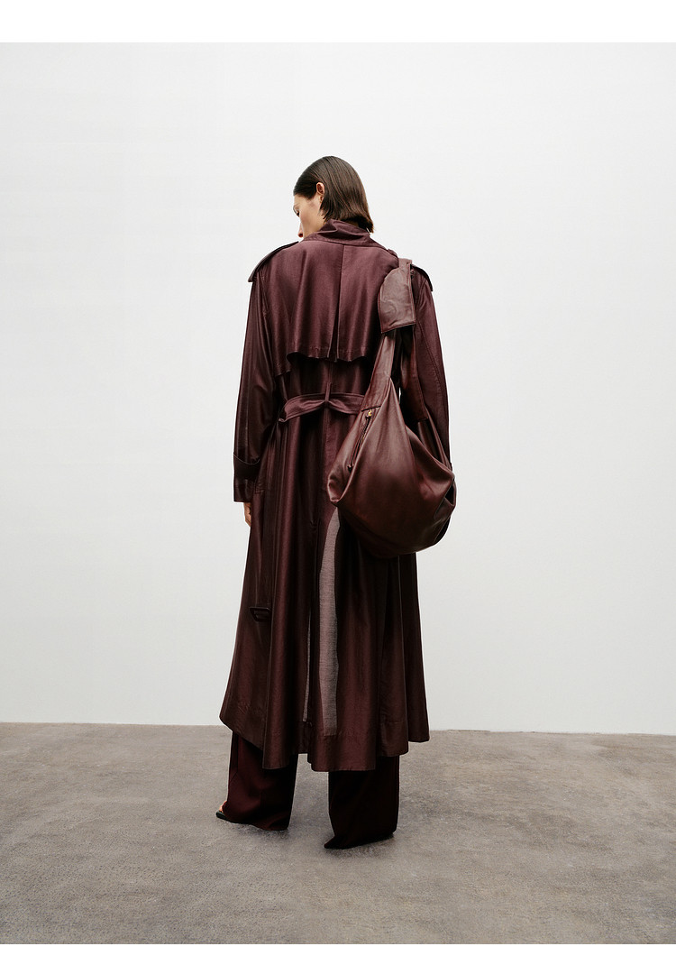 [Same Style as Gao Yuanyuan] Edition Autumn New Brown Coffee Color Silk Cotton Lightweight Trench Coat Ebd3Trc005