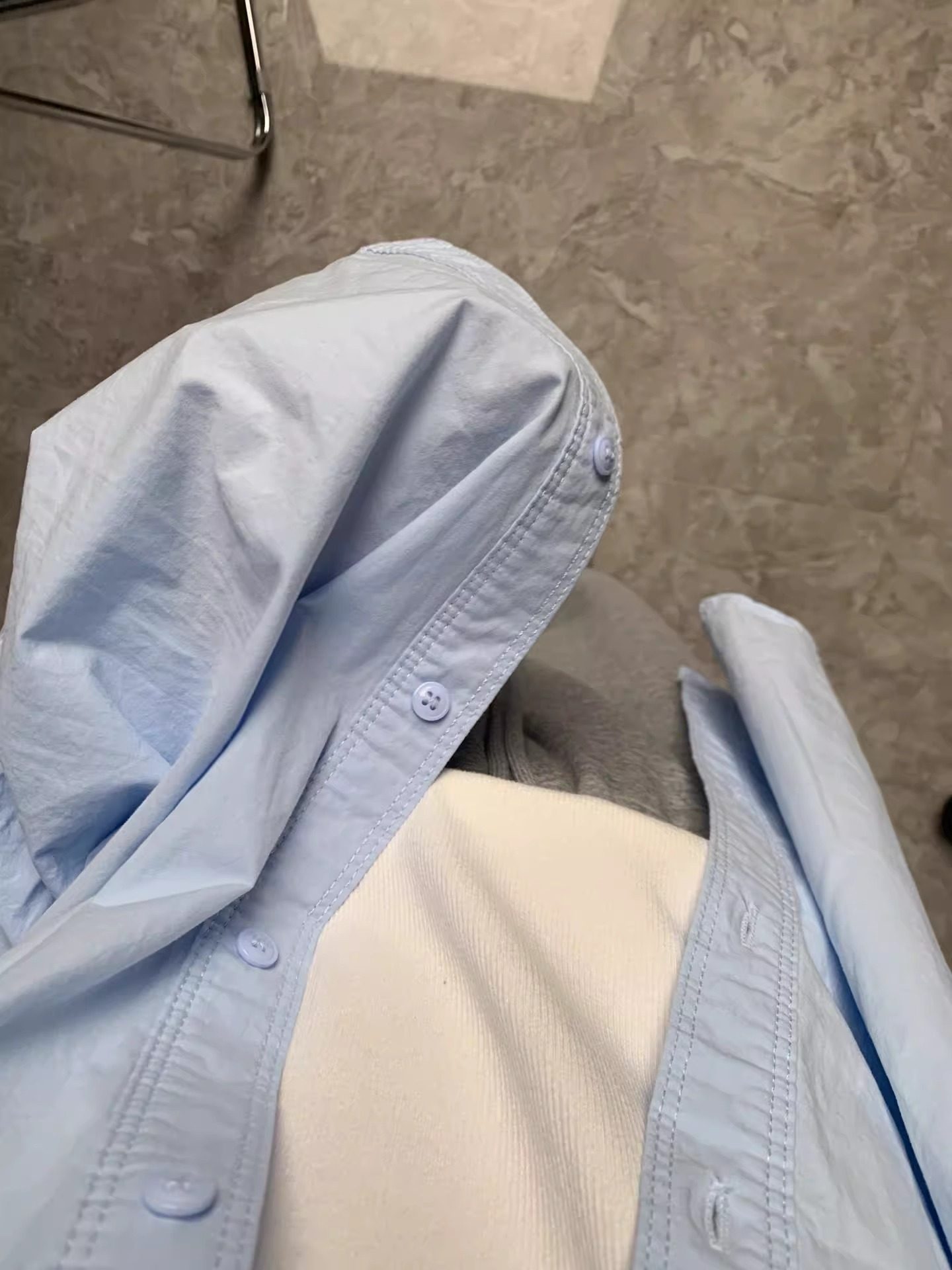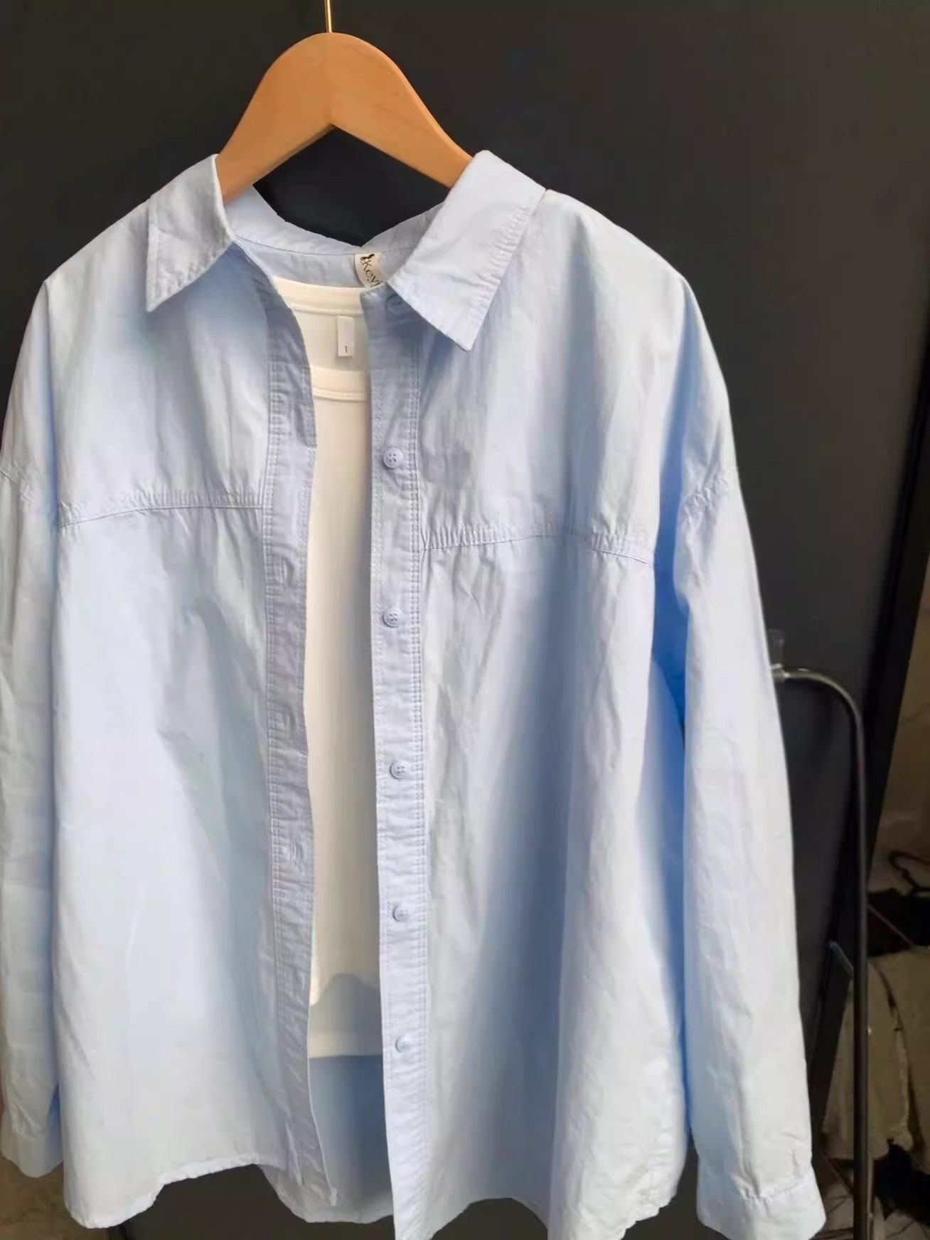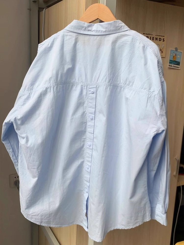 韩系休闲蓝色衬衫女春夏2025新款衬衣小个子宽松防晒长袖上衣外套