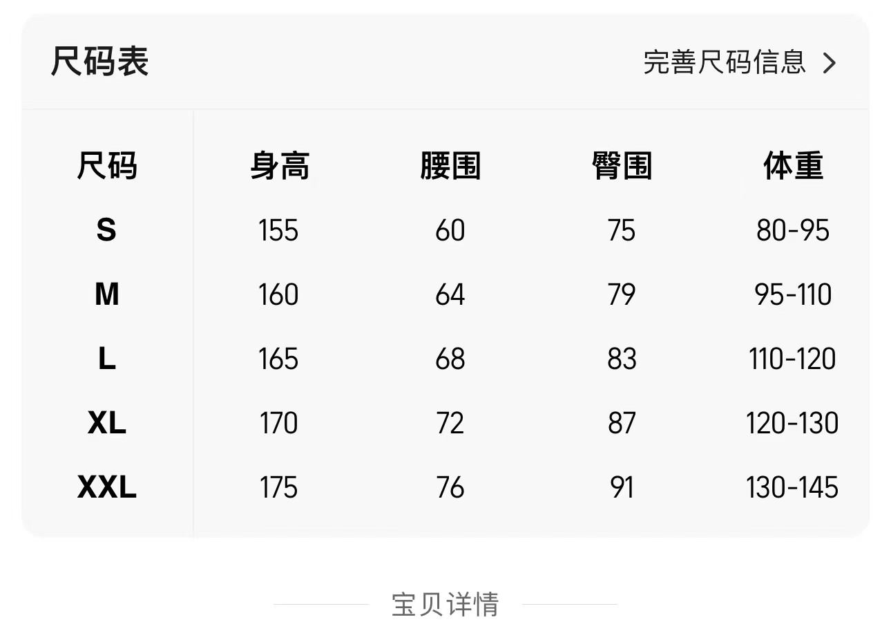 China (cm) 160-165/84-86 165-170 / 88-90 167-172 / 92-96 168-173 / 98-102 170-176 / 106-110