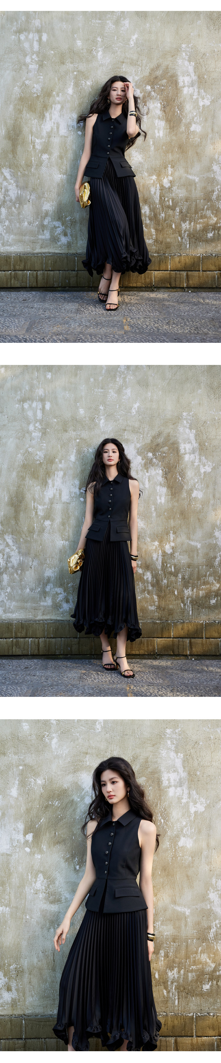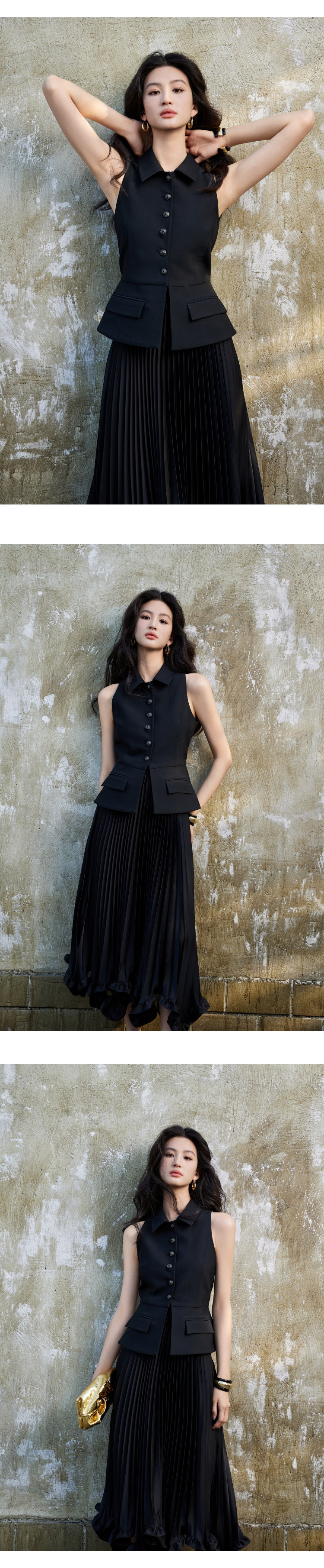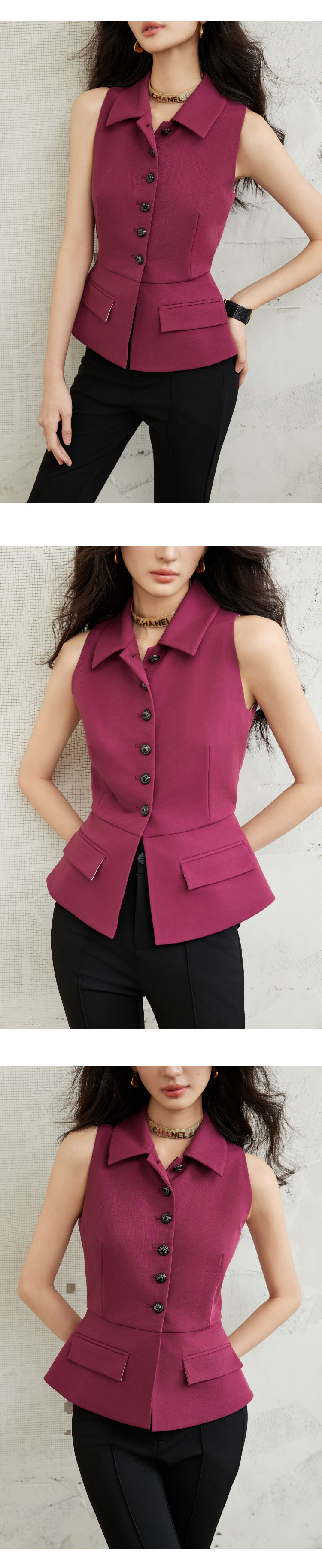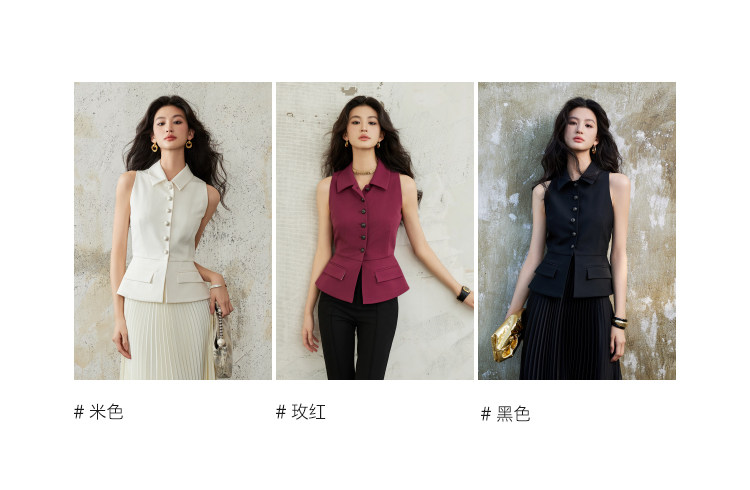 WANGXO|高支高密斜纹梭织料|珠宝级纽扣|立裁收腰无袖翻领马甲
