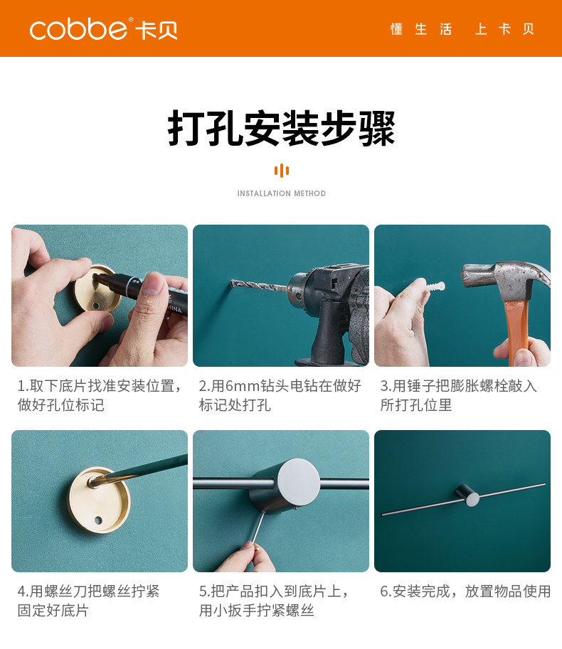 Cabei Vollkupfer, stanzfreier Handtuchhalter, minimalistischer Handtuchhalter, leichtes Luxus-Badezimmer, Einzelstange, Handtuchhalter