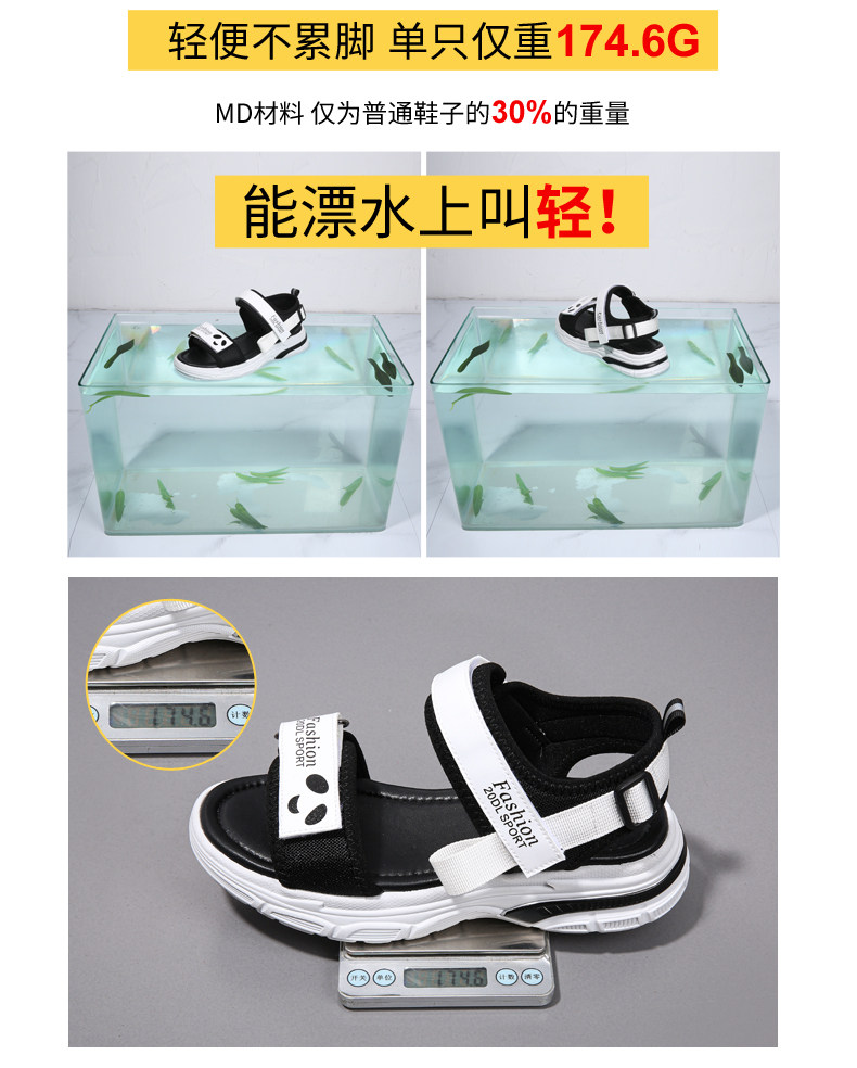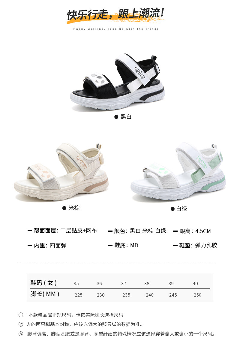 凉鞋女孩2024夏款大童运动凉鞋初中学生外穿软底沙滩鞋大码脚胖宽