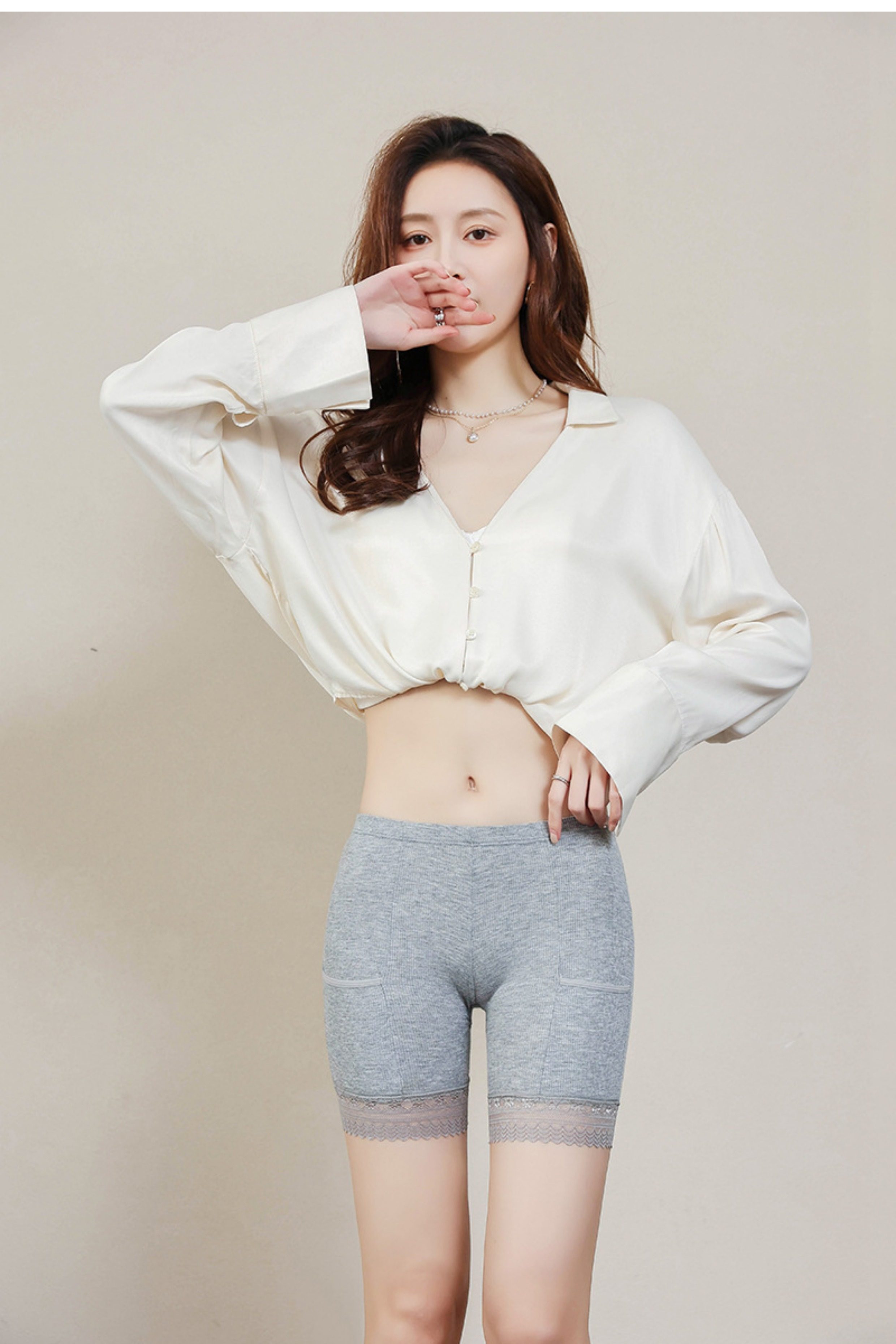 Pocket Cotton Safety Shorts Women's Underwear Two-In-One Lace Non-Curling Shorts Summer Plus Size Leggings Thin Style