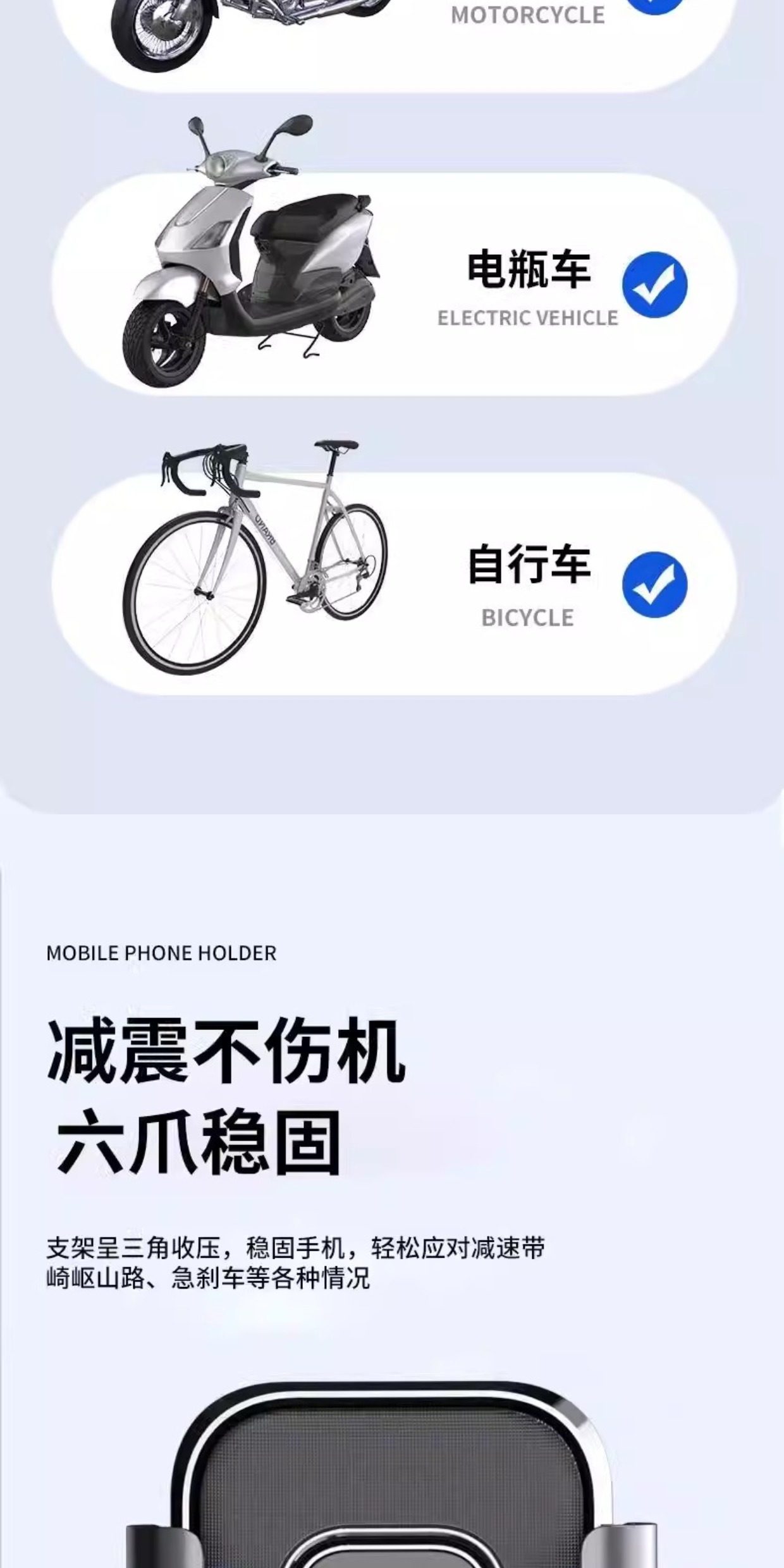 电动车手机支架踏板电瓶摩托自行车专用外卖骑手防震手机机导航架