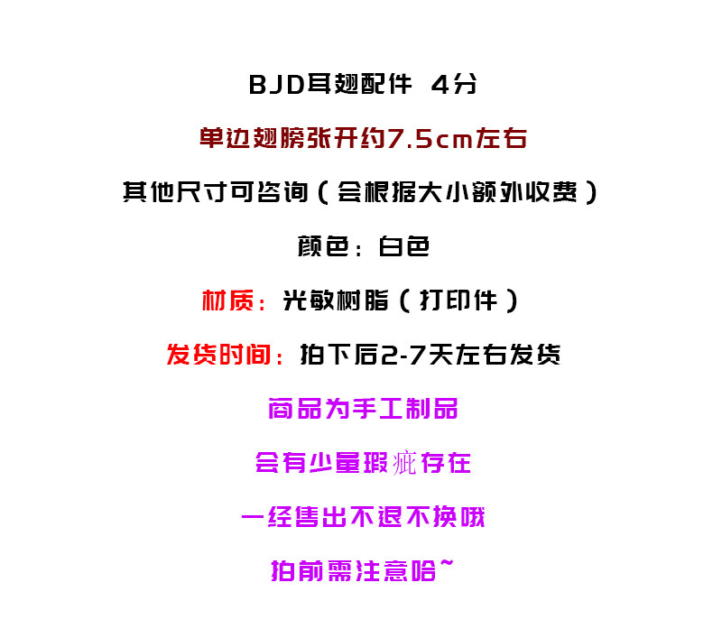 【现货】BJD4分娃娃耳朵配件 可动翅膀 耳翅假发配件
