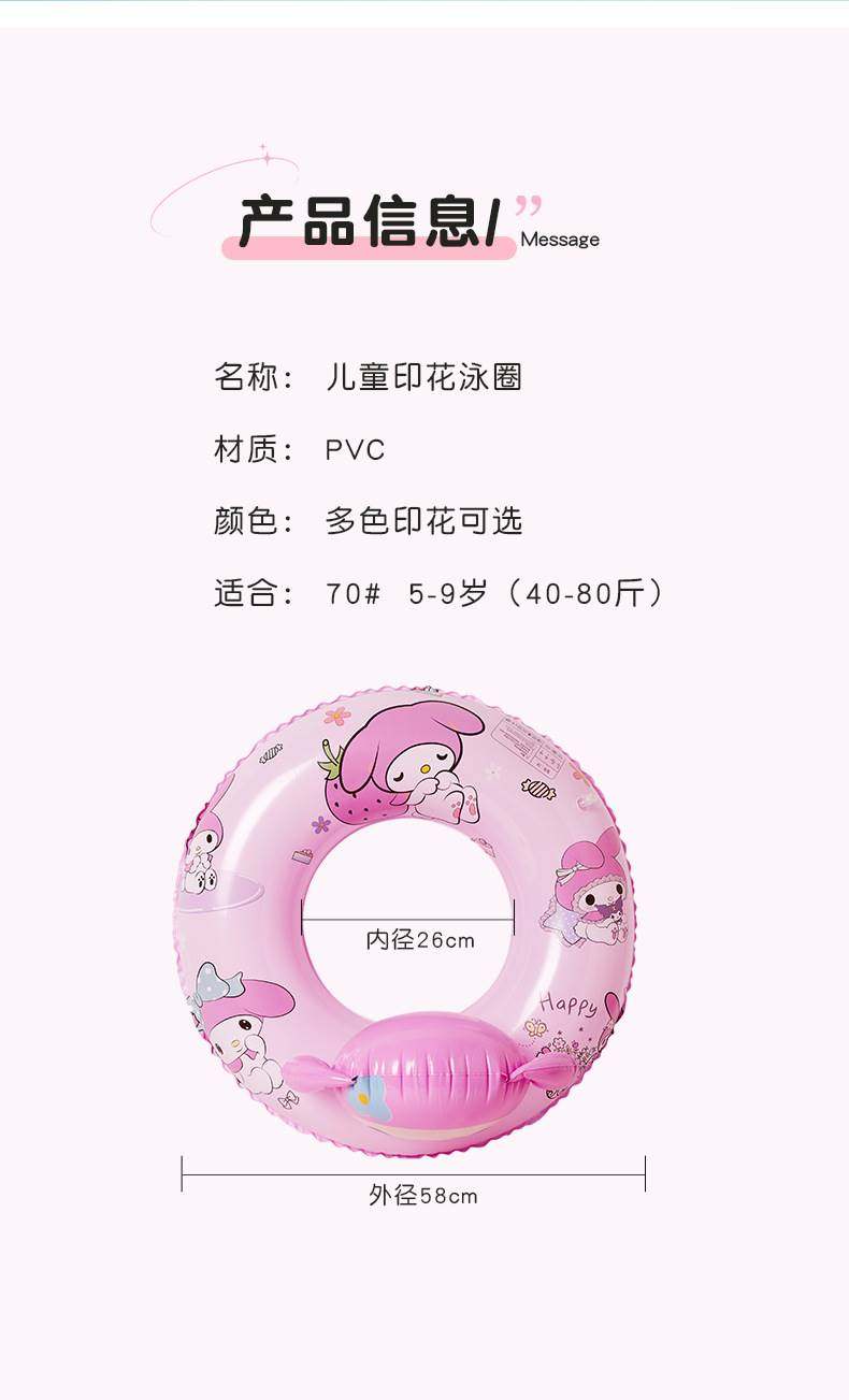 Children's Swimming Ring, Thickened Adult Underarm Ring, Kids Inflatable Lifebuoy, Baby Float Ring, Kuromi Cartoon Swim Ring
