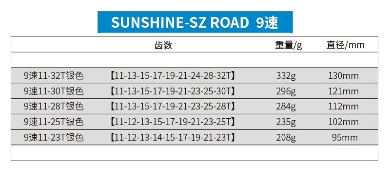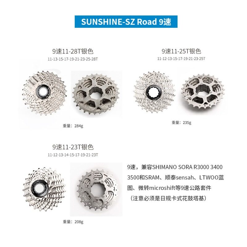 Color Classification Rihui Hg Road Bike Cassette, 9-Speed 11-23t,Rihui Hg Road Bike Cassette, 9-Speed 11-25t,Rihui Hg Road Bike Cassette, 9-Speed 11-28t,Rihui Hg Road Bike Cassette, 9-Speed 11-30t,Rihui Hg Road Bike Cassette, 9-Speed 11-32t,Sumc 9-Speed Semi-Hollow Chain