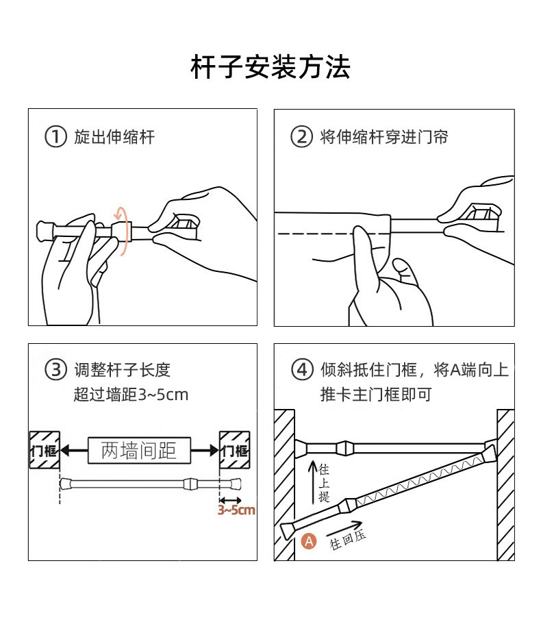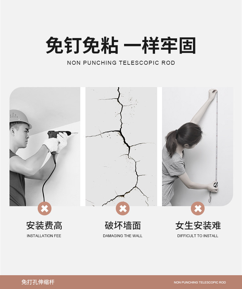 免打孔伸缩杆窗帘杆卫生间浴帘杆免安装晾衣杆门帘半帘衣柜撑杆