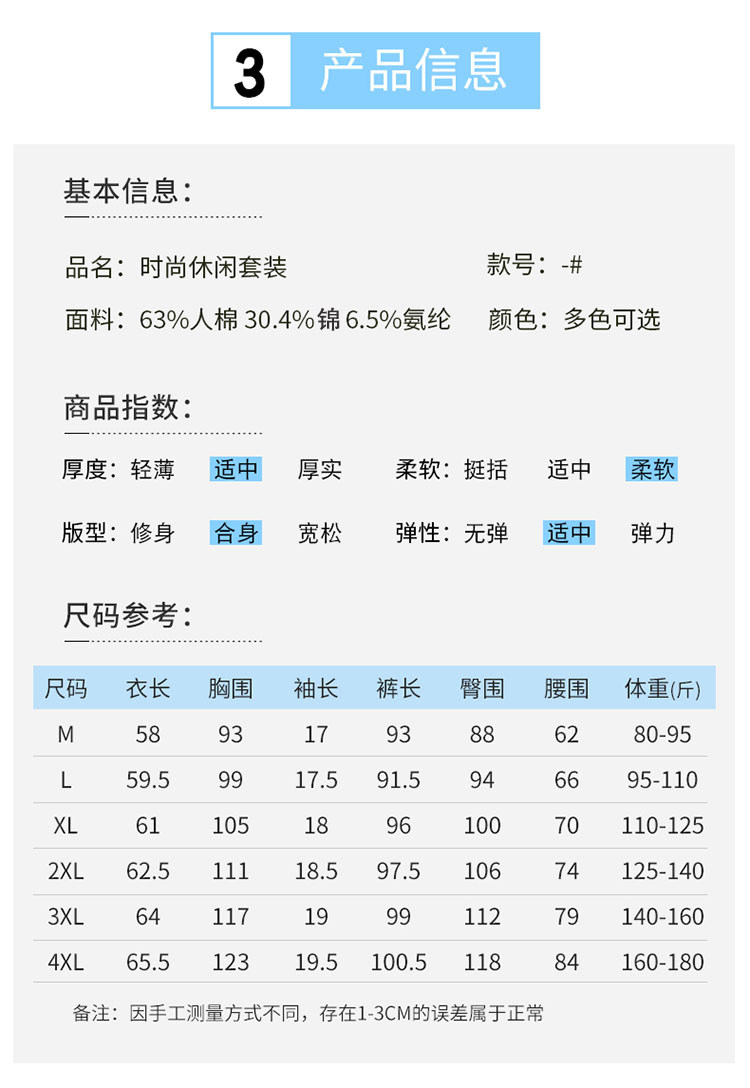 尺码 M(建议80-95斤),L(建议95-110斤),XL(建议110-125斤),2XL(建议125-140斤),3XL(建议140-155斤),4XL(建议155-175斤)