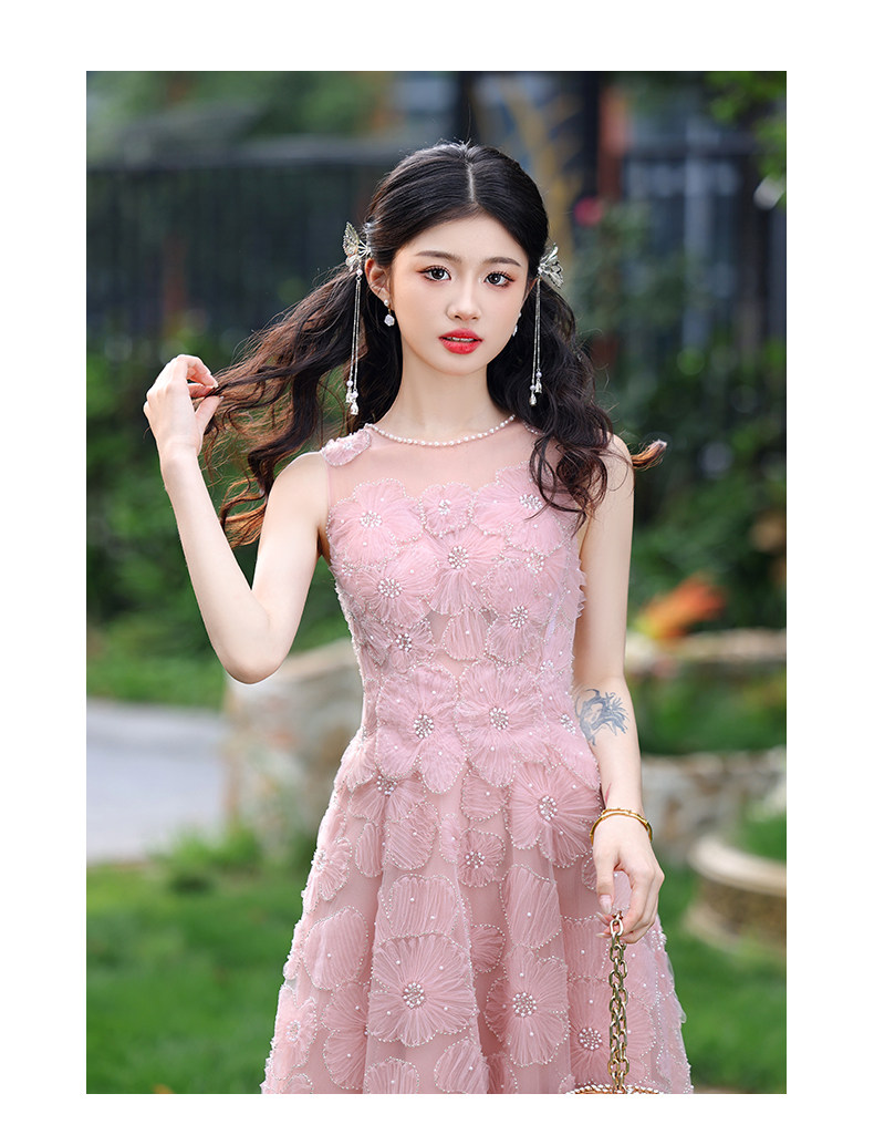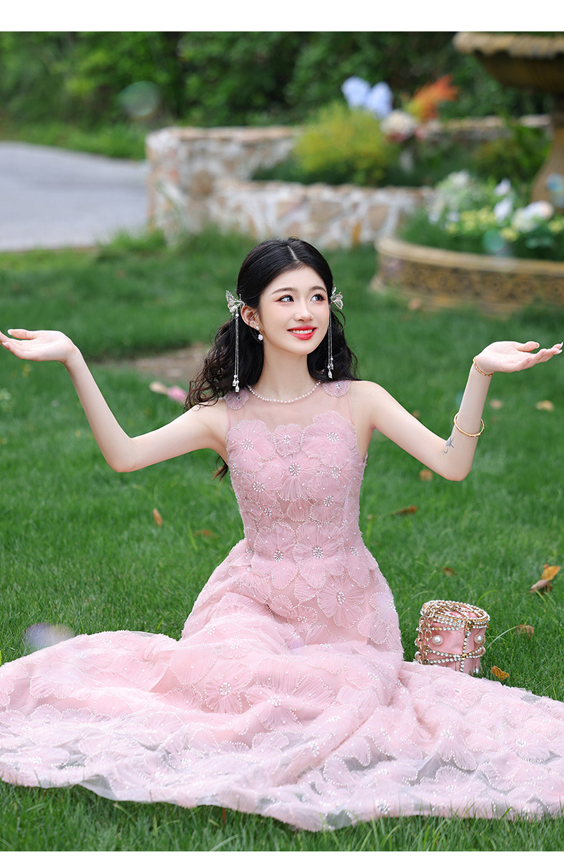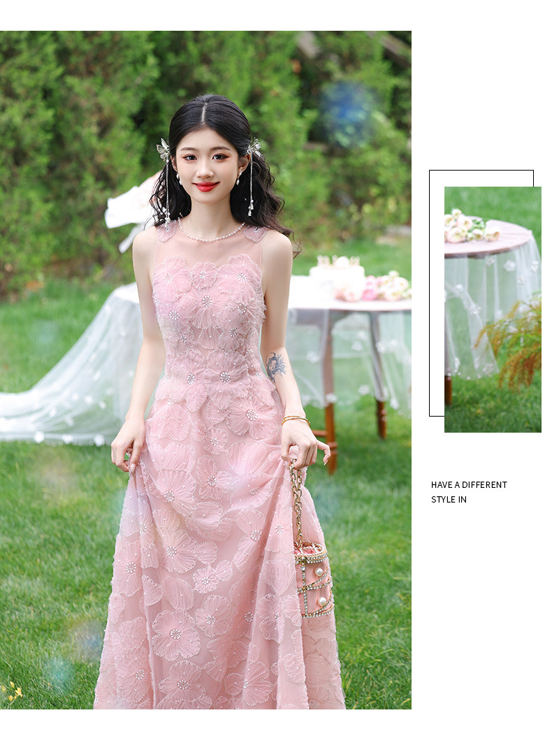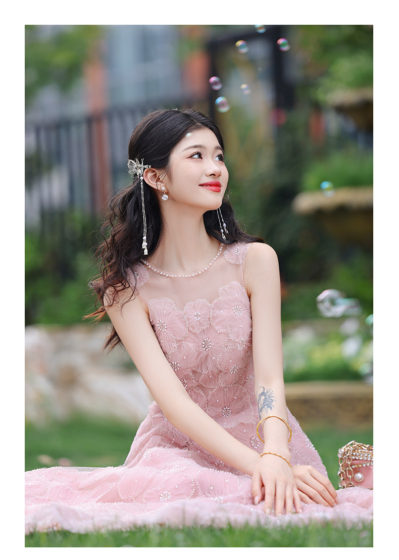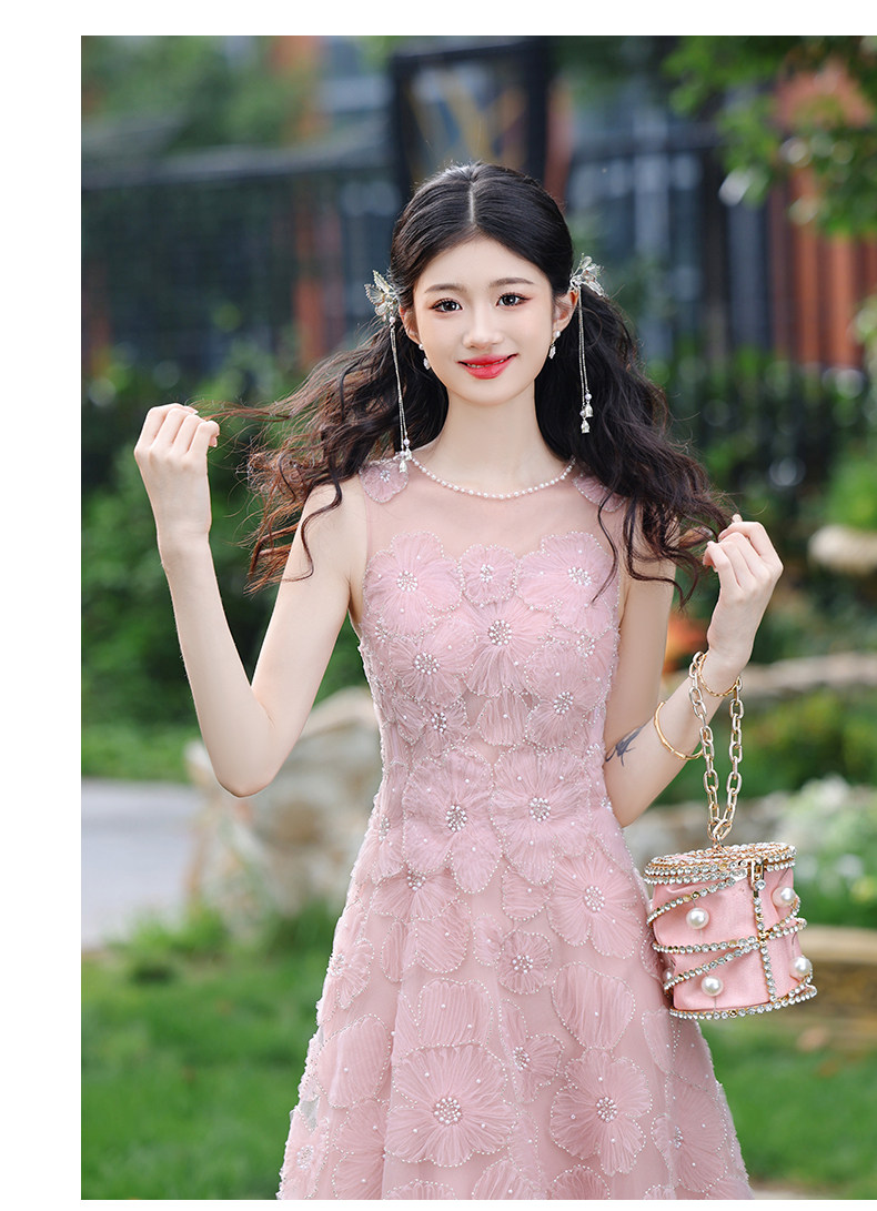 成人礼晚礼服女2025新款轻奢小众高端粉色订婚连衣裙网纱法式毕业