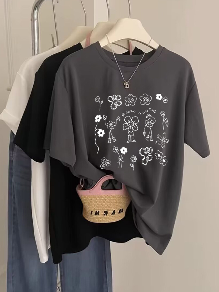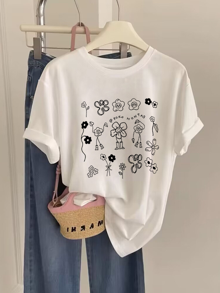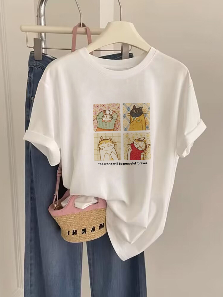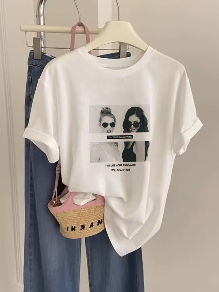 Camiseta de manga corta de algodón puro con hombro derecho para mujer 2025, nuevo estilo coreano, camisa blanca versátil de moda con parte superior inferior, verano
