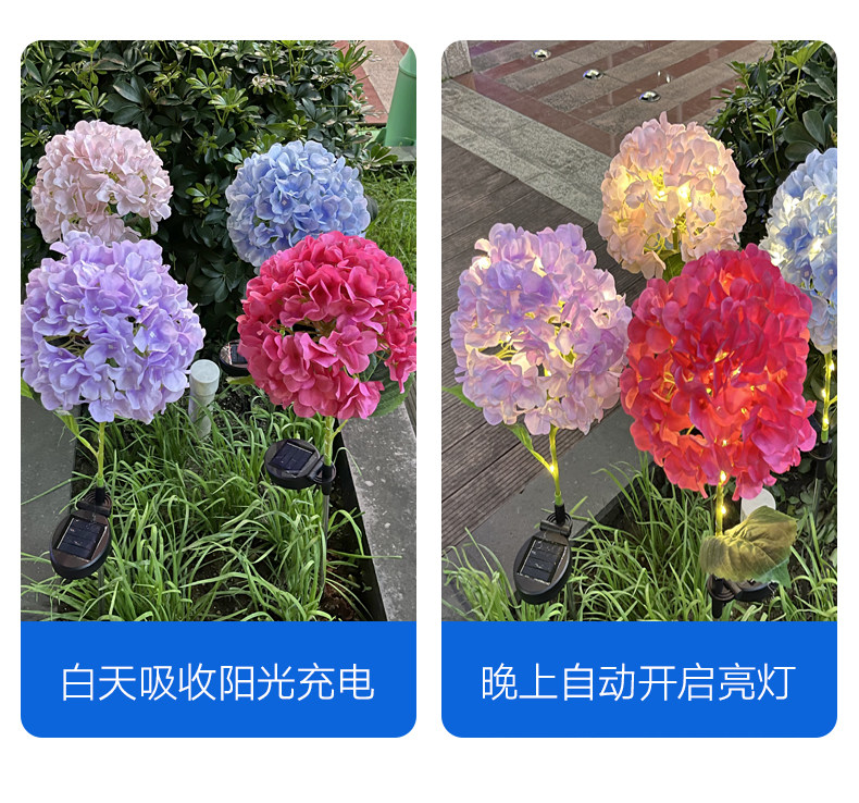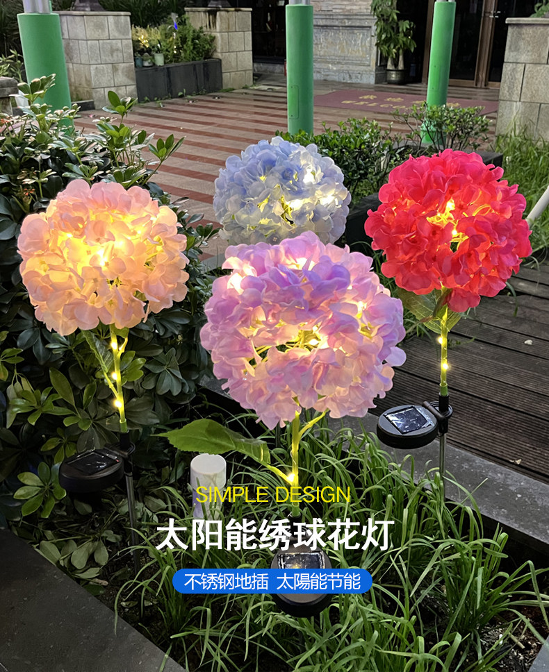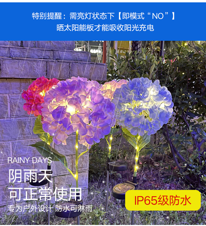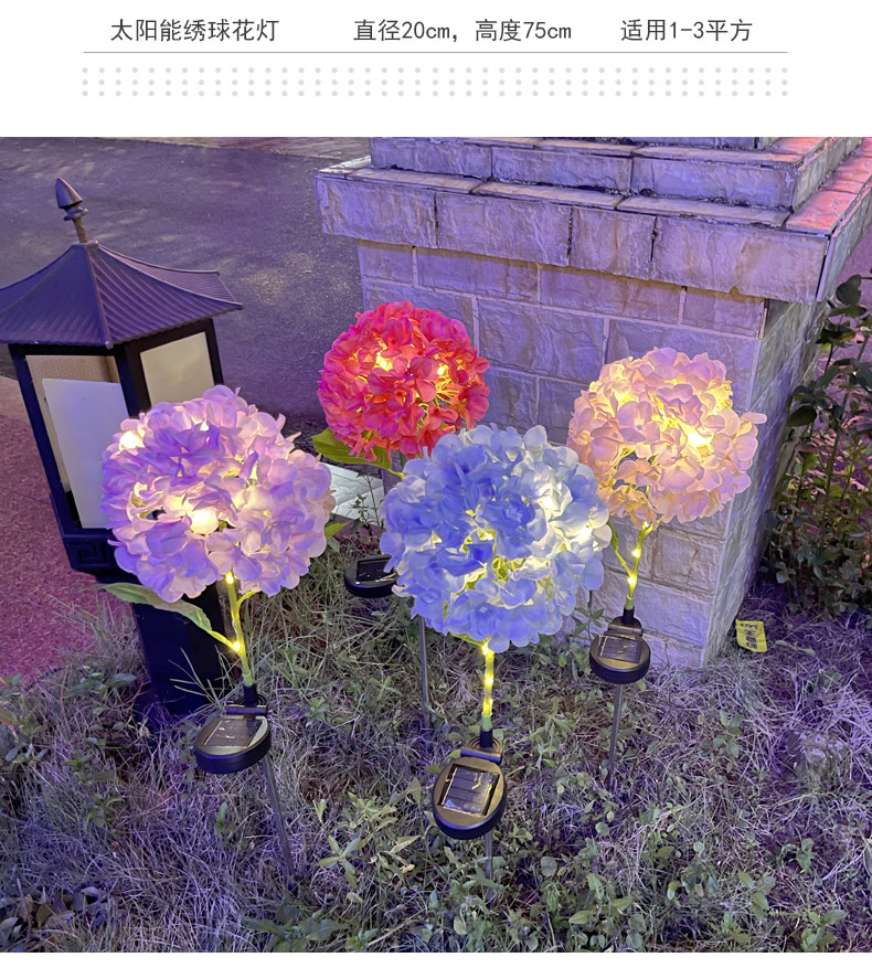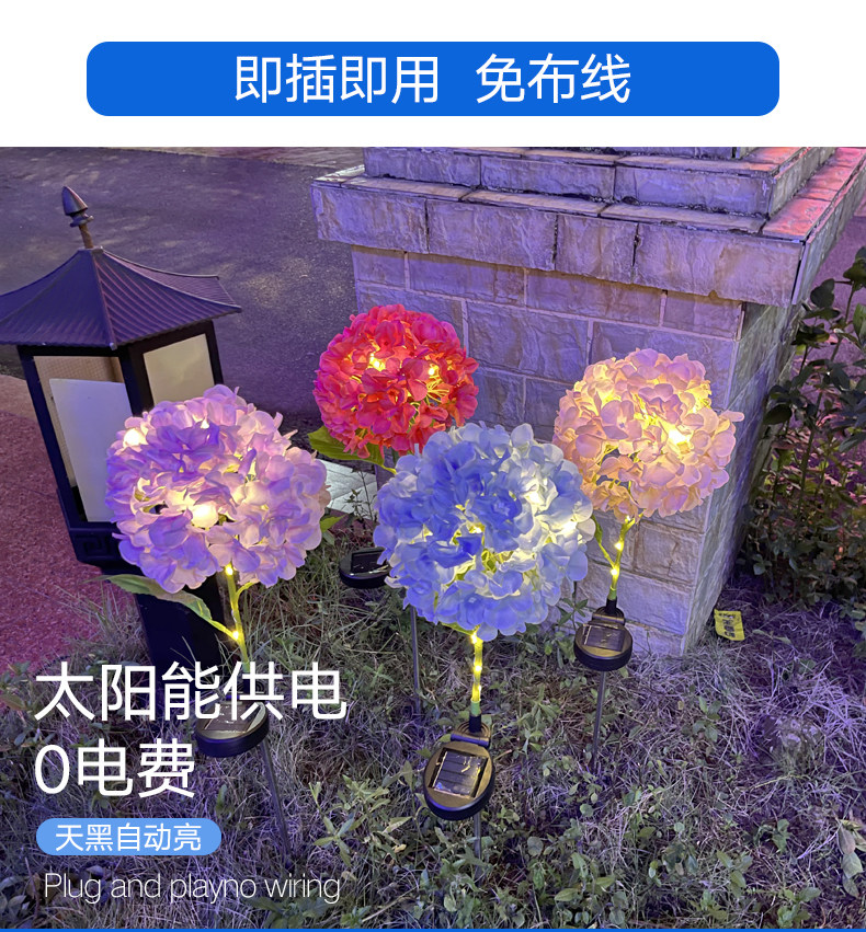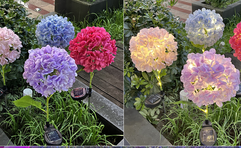 Solar-Blumenbeleuchtung, LED-Hortensien-Gartenbeleuchtung, Hofatmosphäre, Park, dekorative Lichter, Außenboden-Rasenbeleuchtung