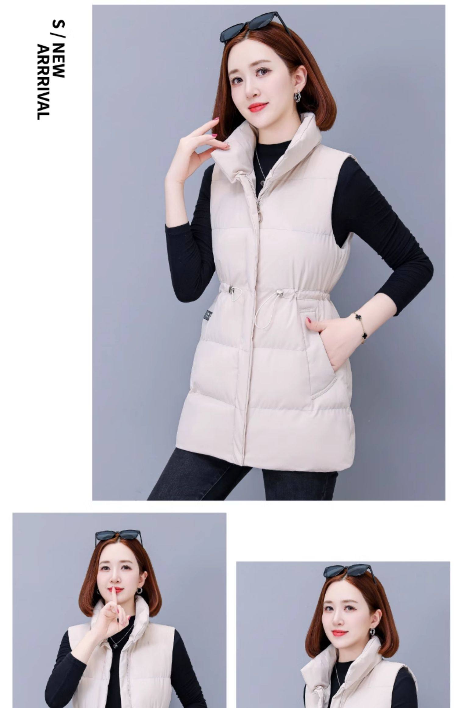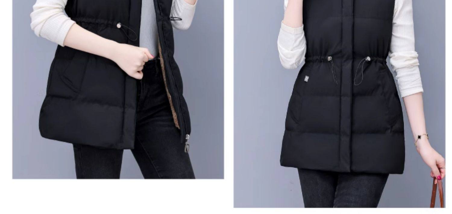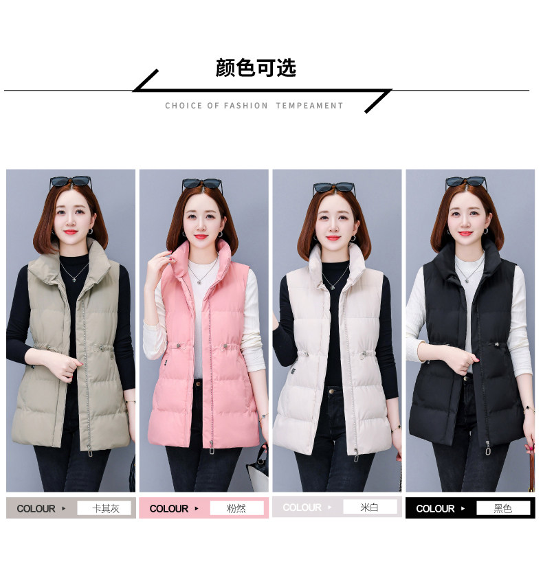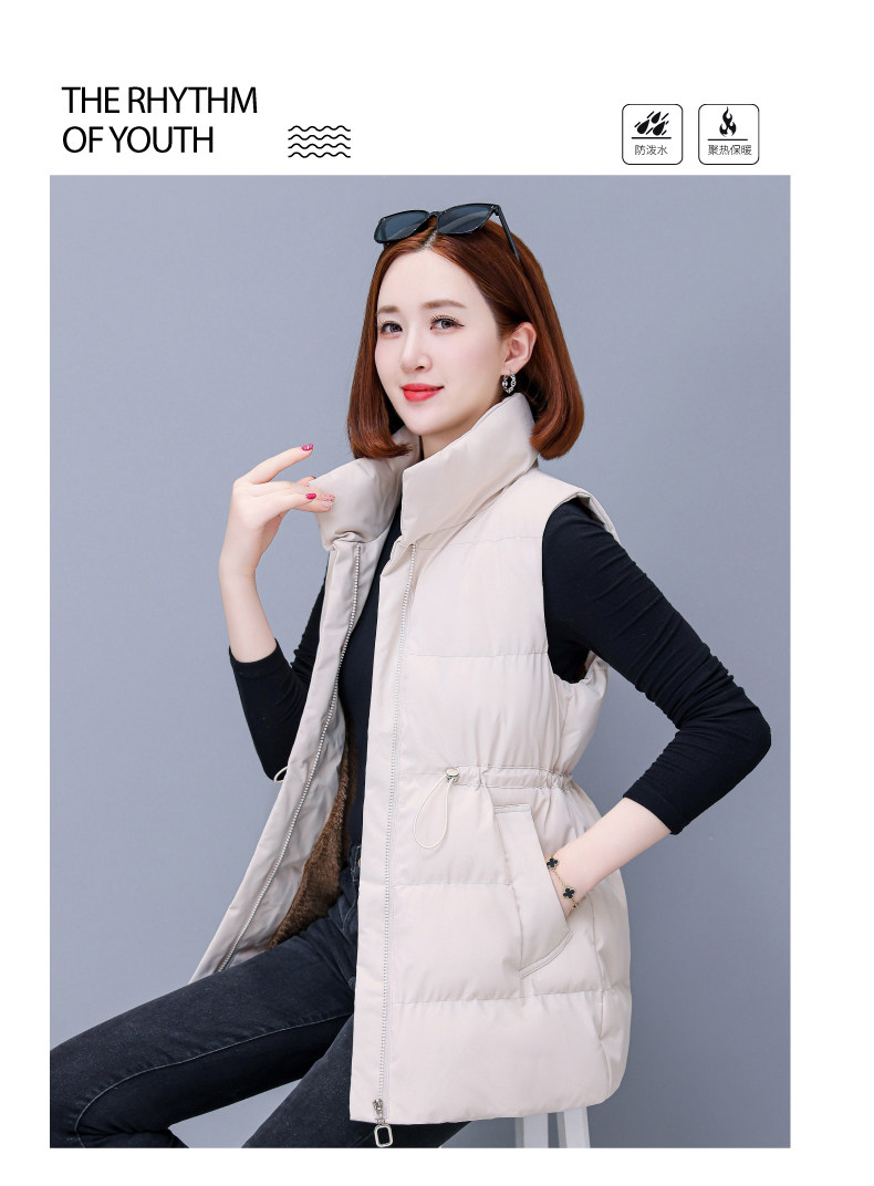 米白中长款羽绒棉马甲女士秋冬2025新款中年妈妈洋气立领马夹外套