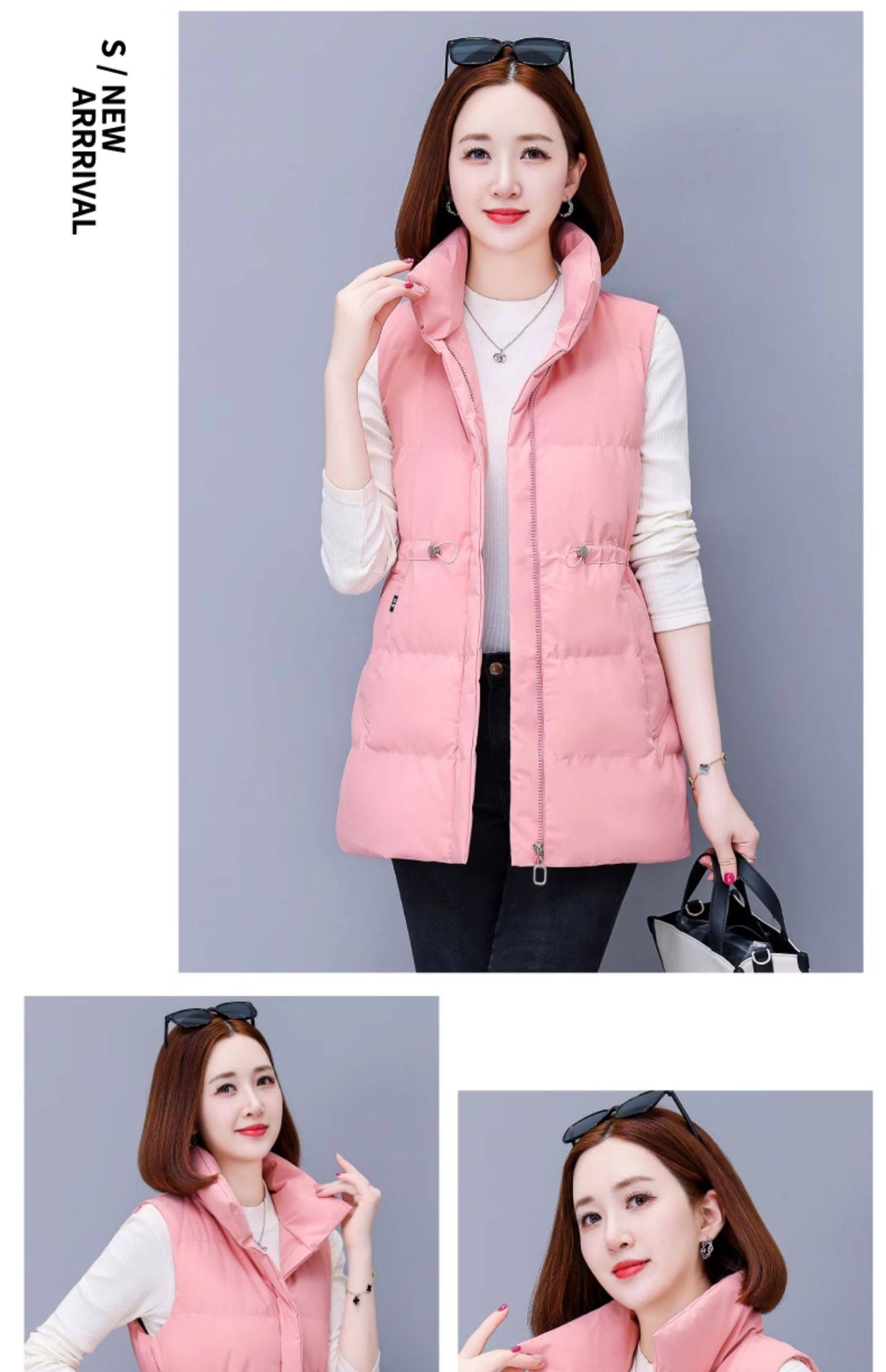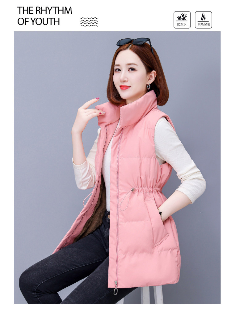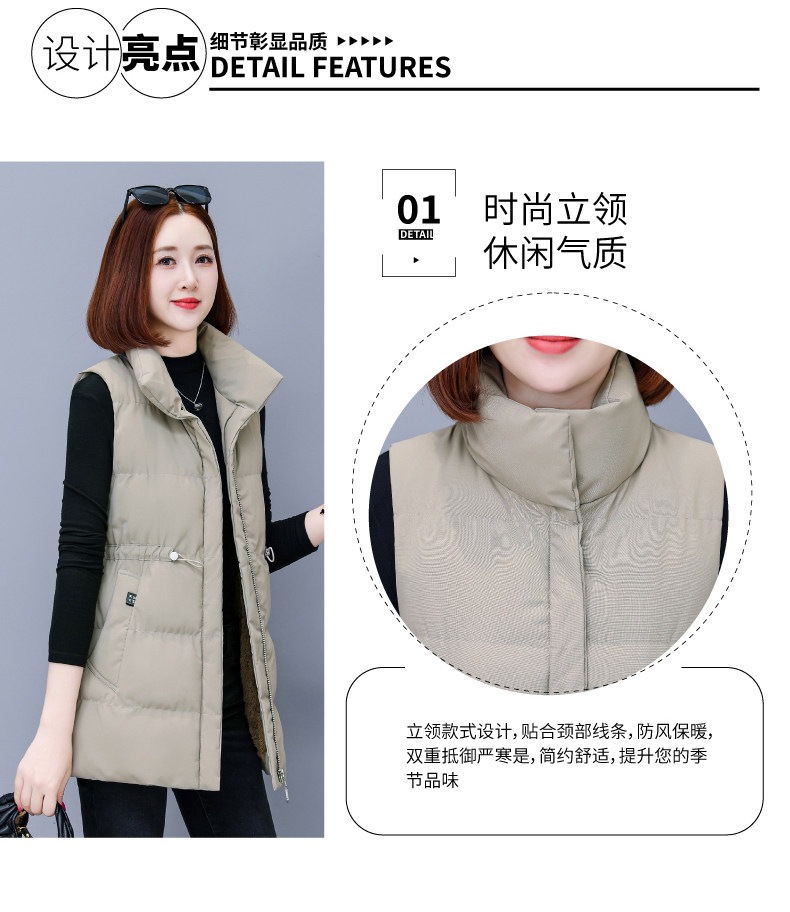 米白中长款羽绒棉马甲女士秋冬2025新款中年妈妈洋气立领马夹外套