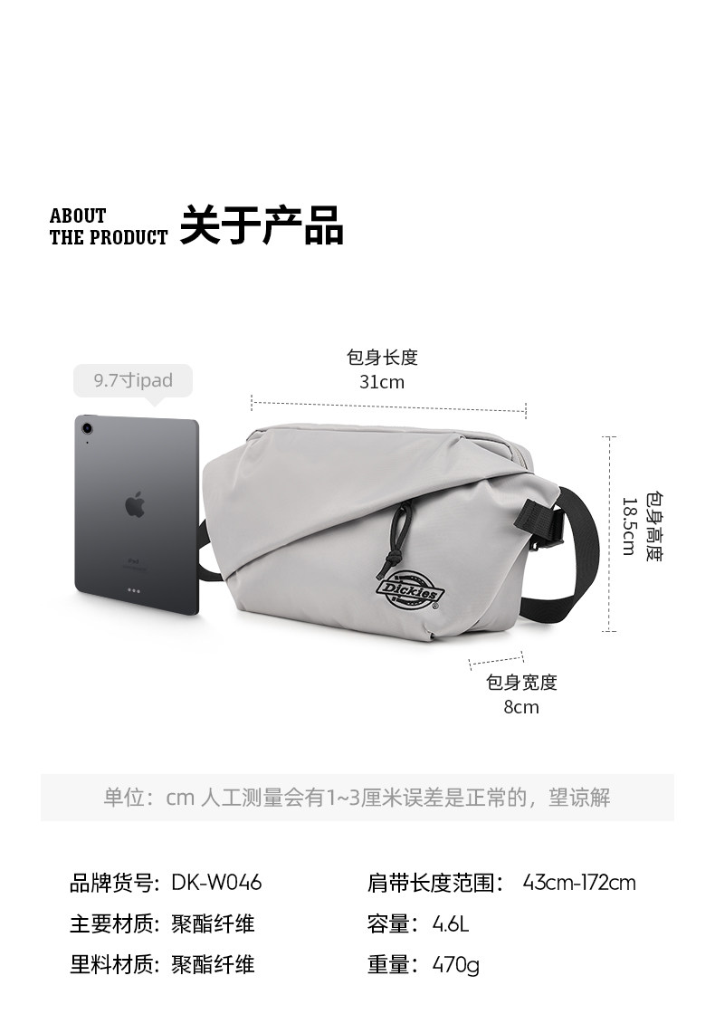 Dickies单肩斜挎通勤大容量骑行运动男士单肩机能风潮牌腰胸包25