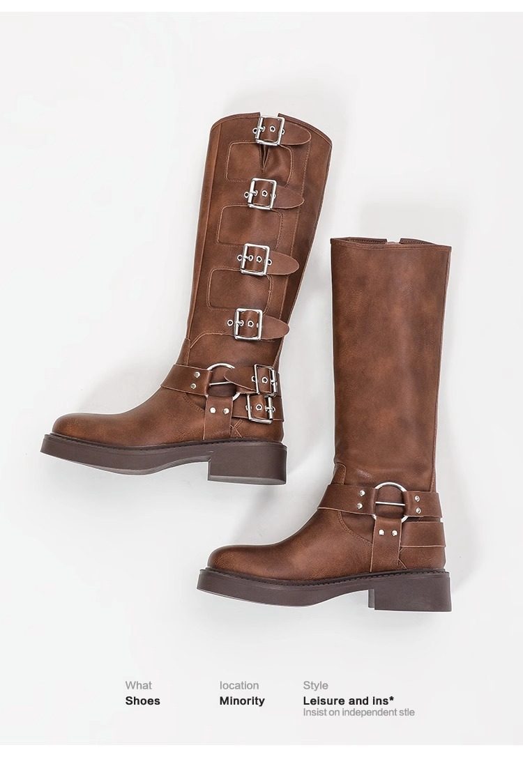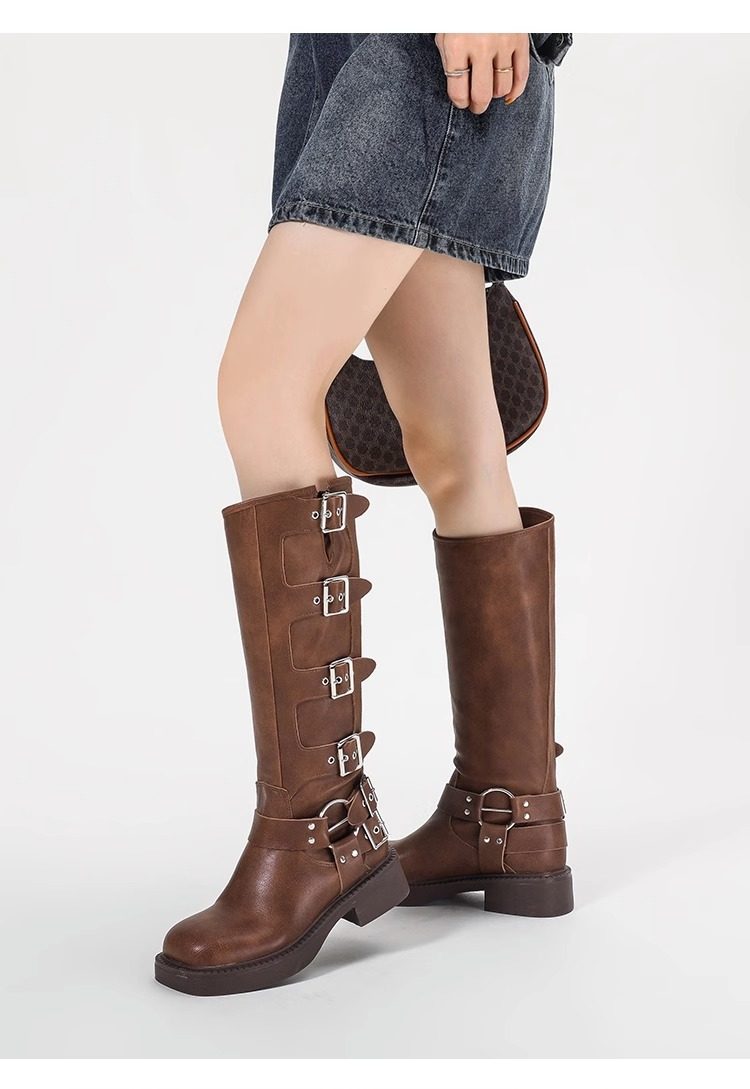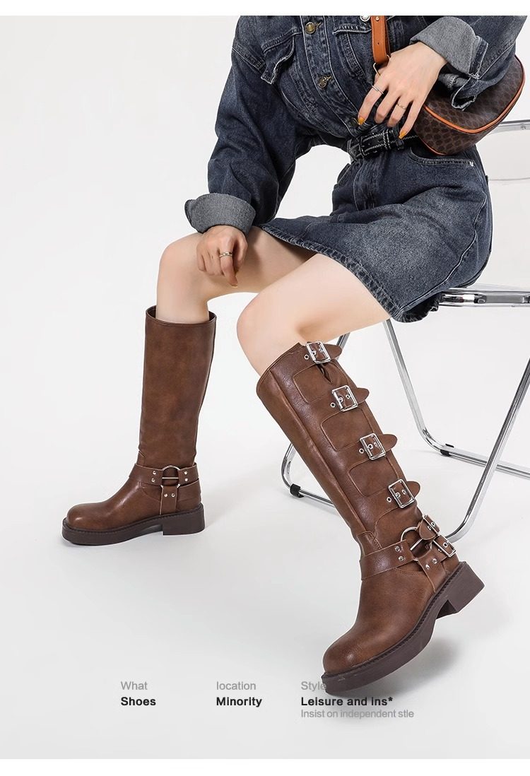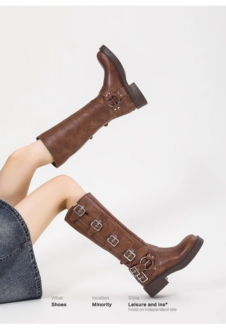 Over-The-Knee Boots for Women, Spring and Autumn, Retro Western Cowboy Boots, High Brown Riding Martin Boots, Versatile Single Boots