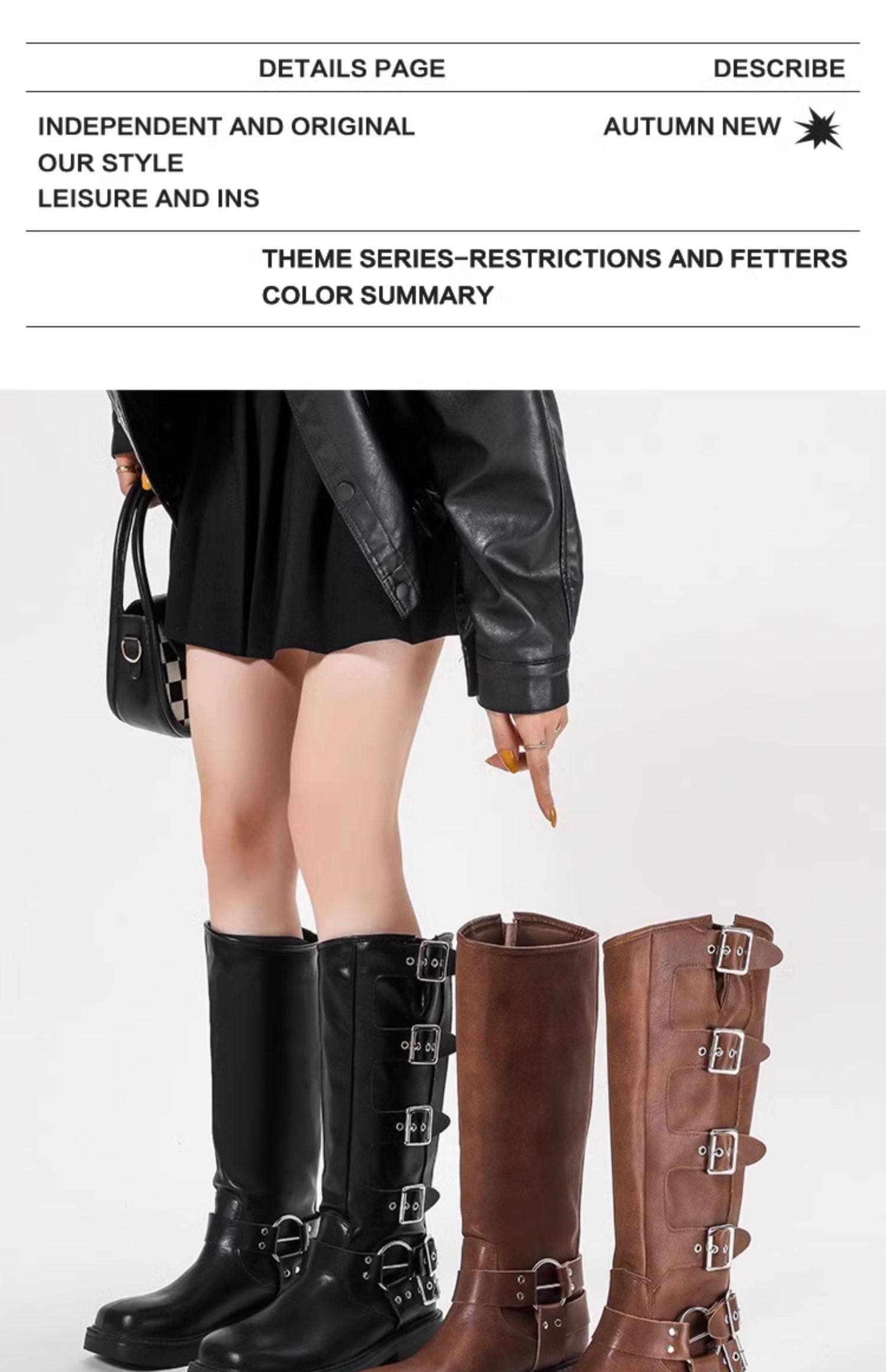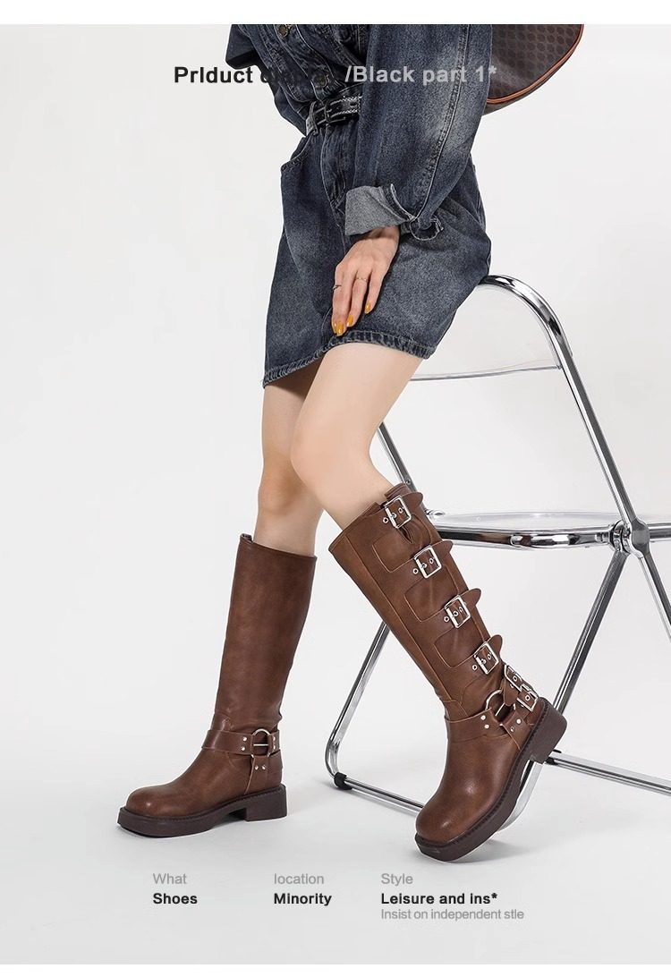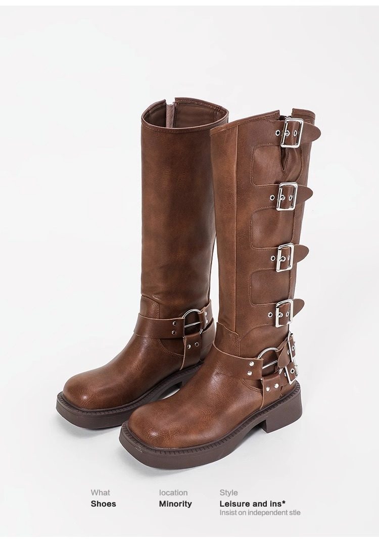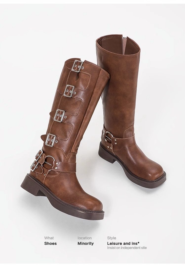 Over-The-Knee Boots for Women, Spring and Autumn, Retro Western Cowboy Boots, High Brown Riding Martin Boots, Versatile Single Boots