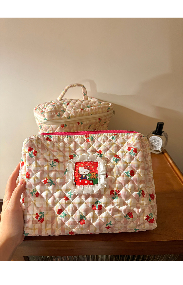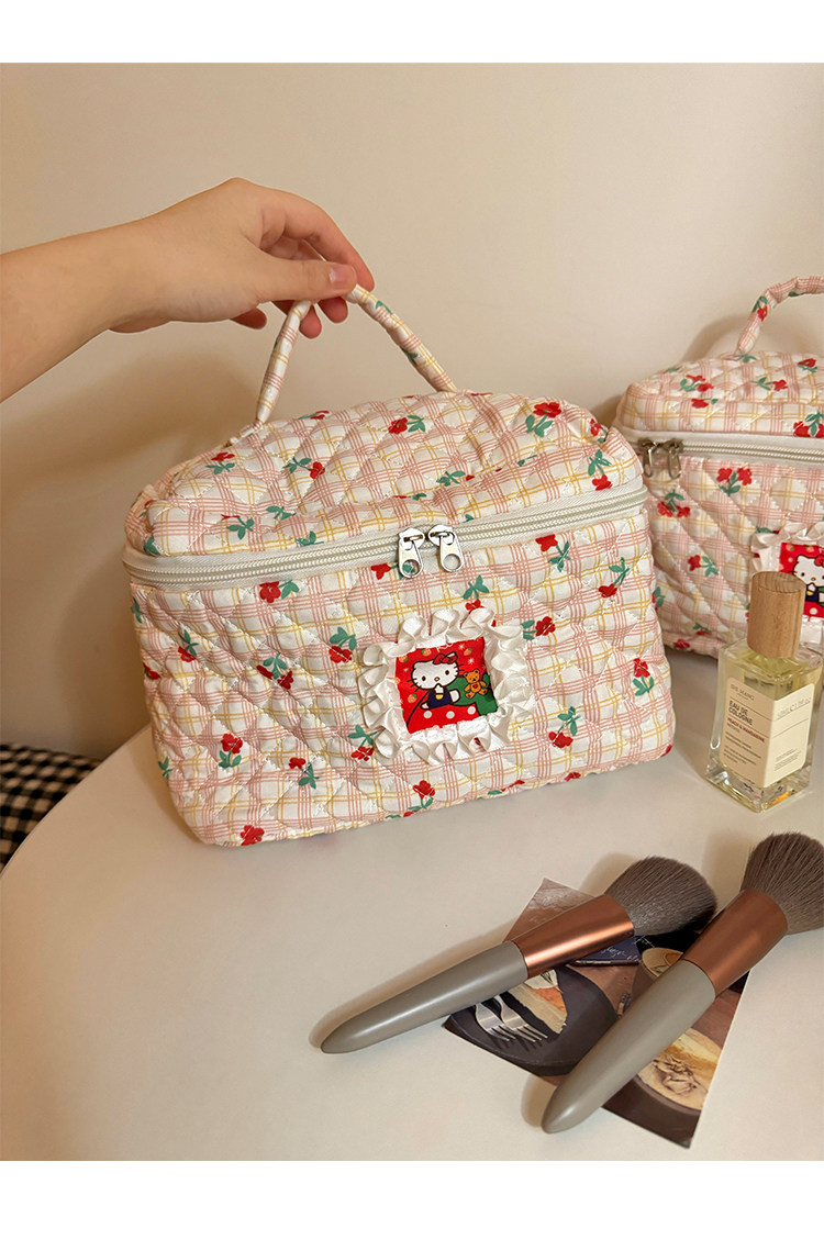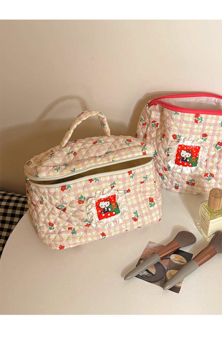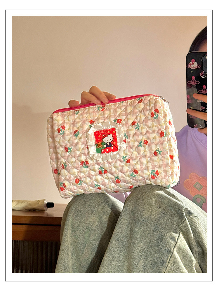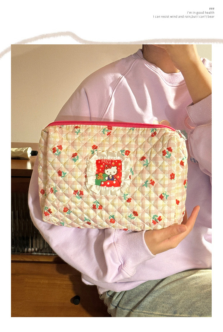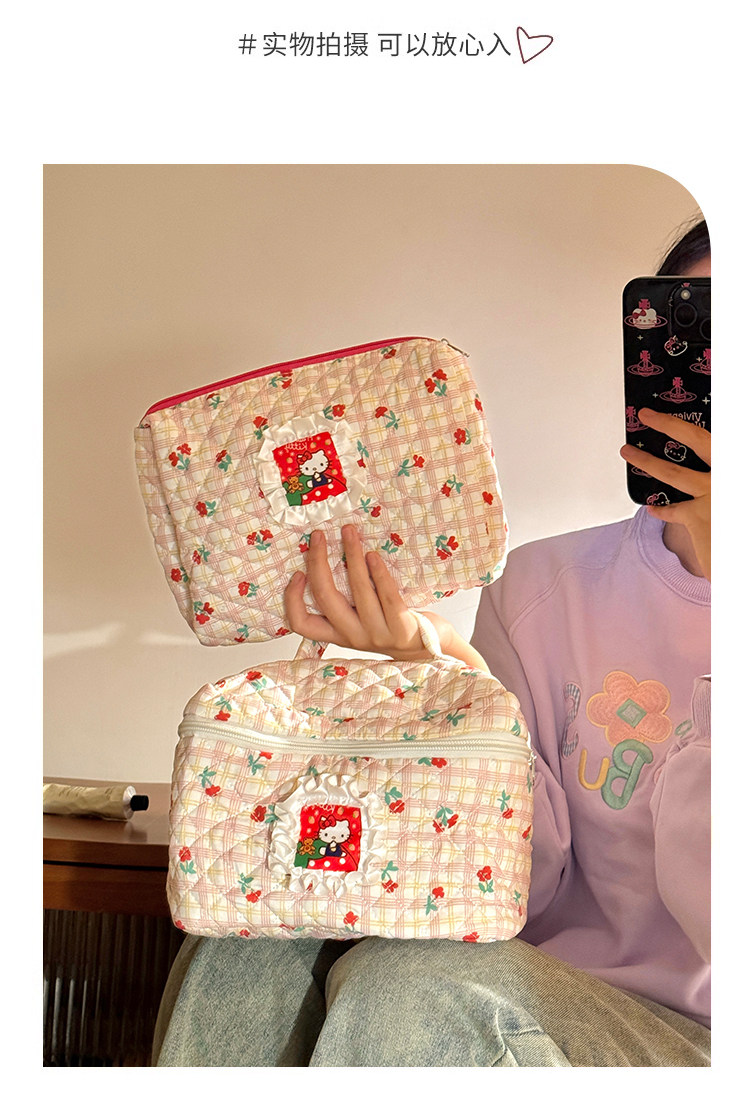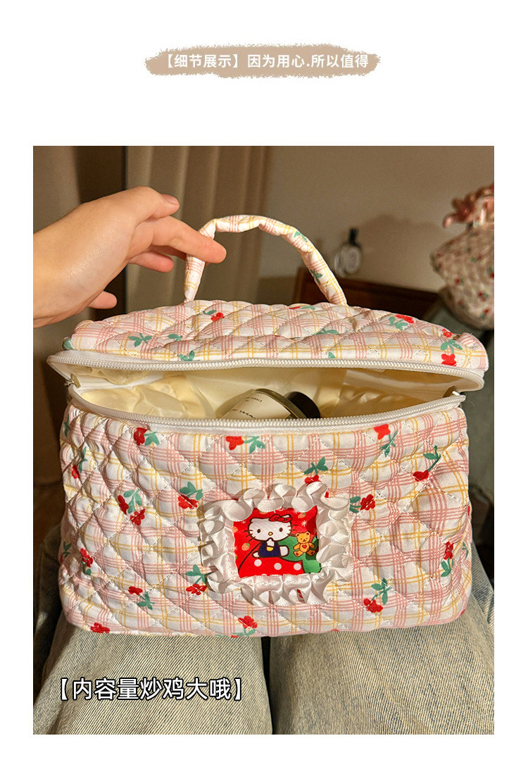 Bolsa de cosméticos Hellokitty para mujer, bolsa de almacenamiento portátil de gran capacidad para estudiantes, novedad de 2025
