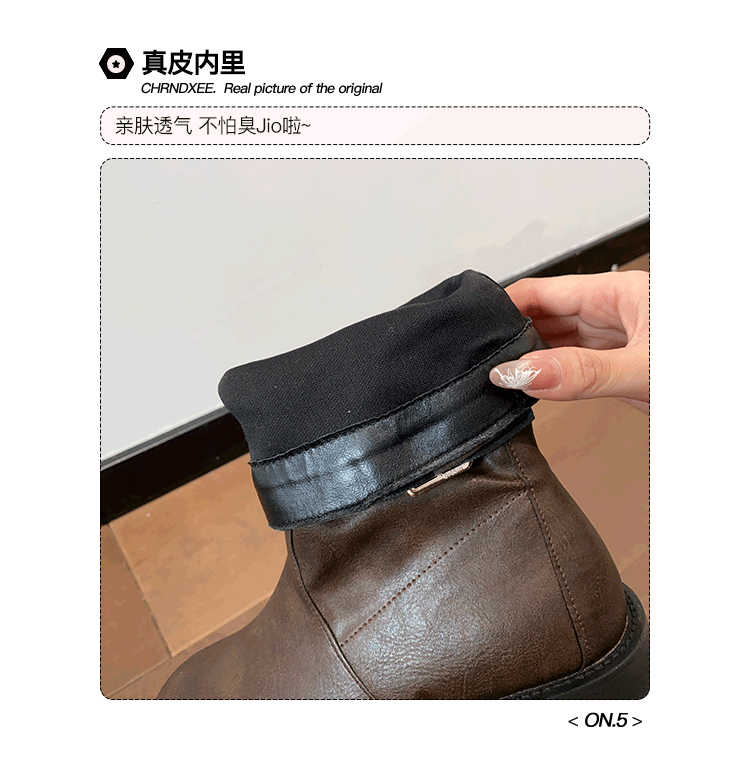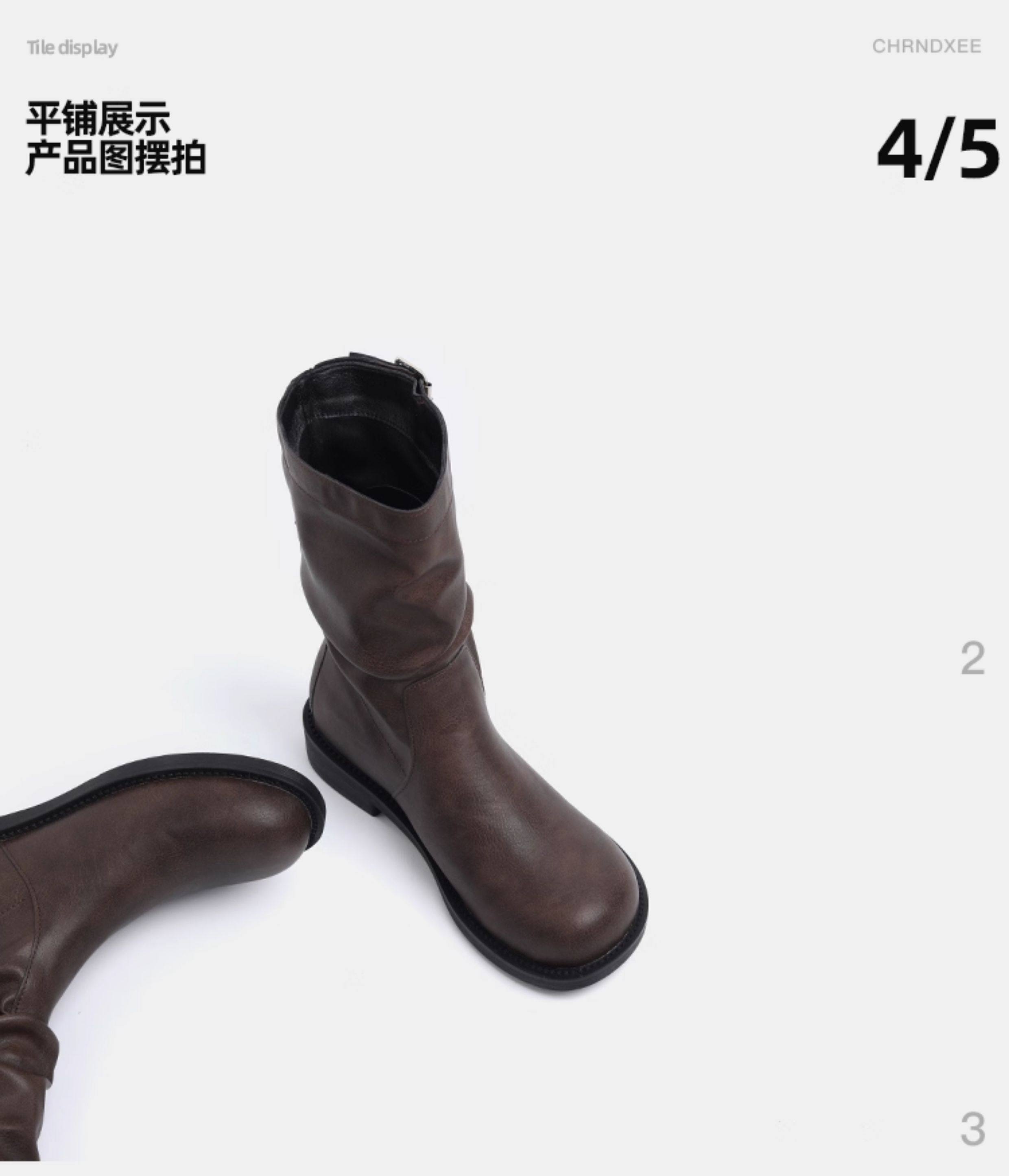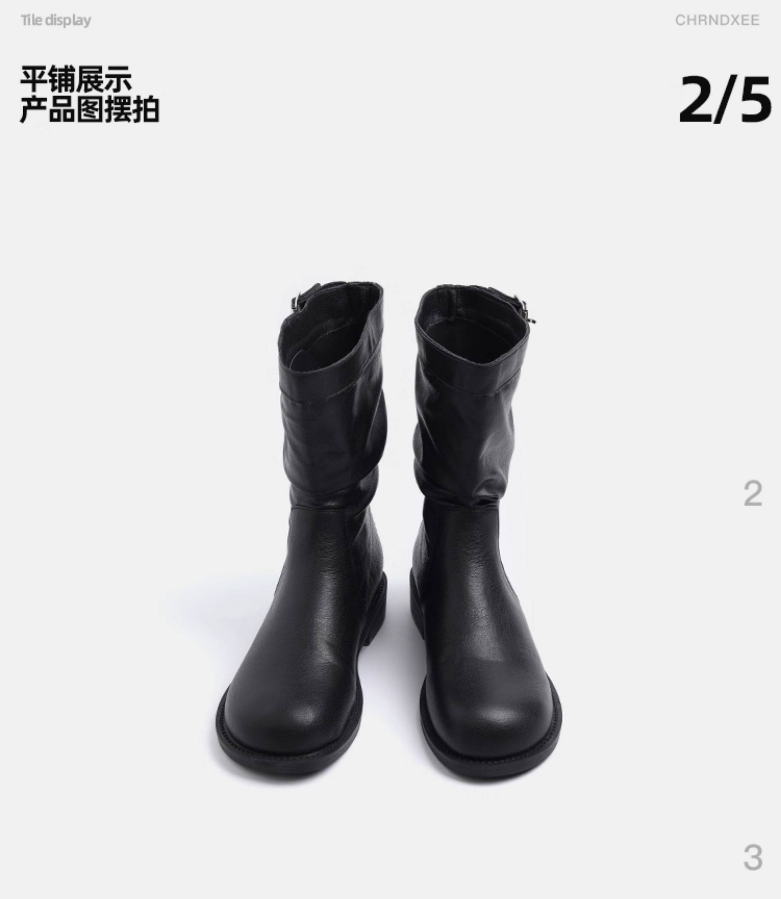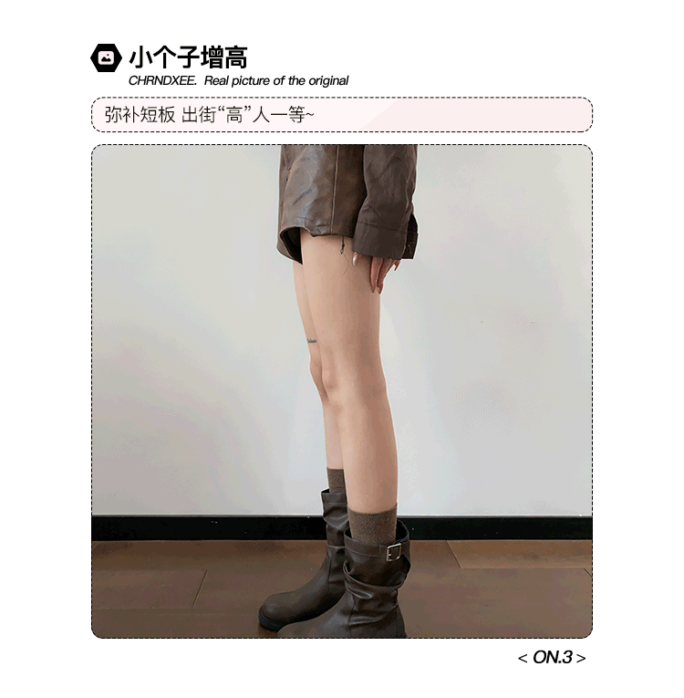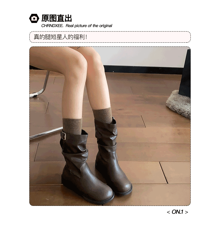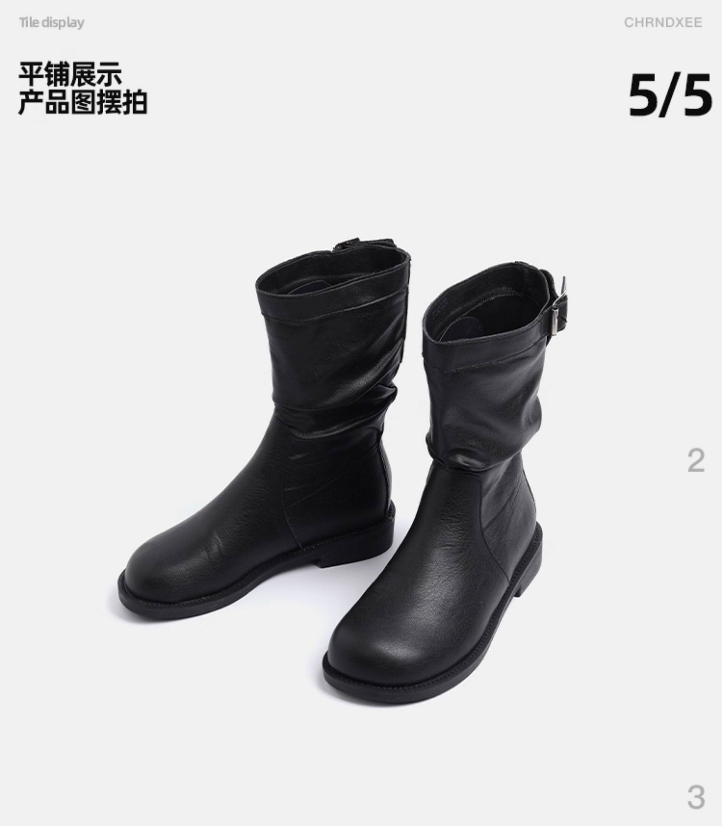 初系丨2024新款黑色褶皱靴女圆头搭扣复古套筒小短靴中筒马丁靴女