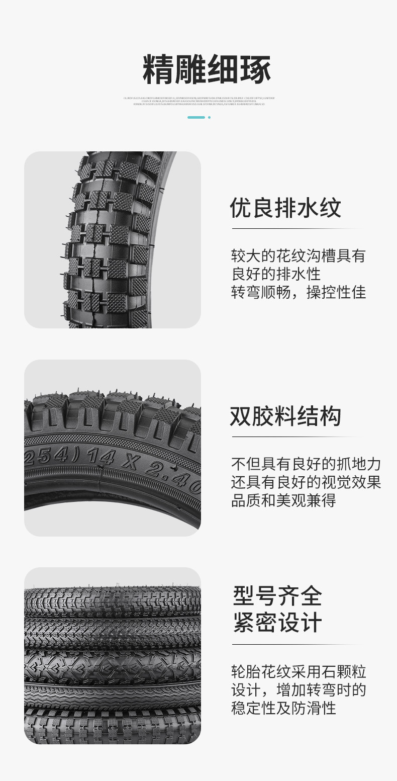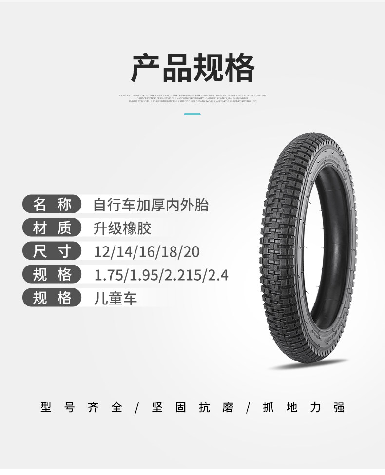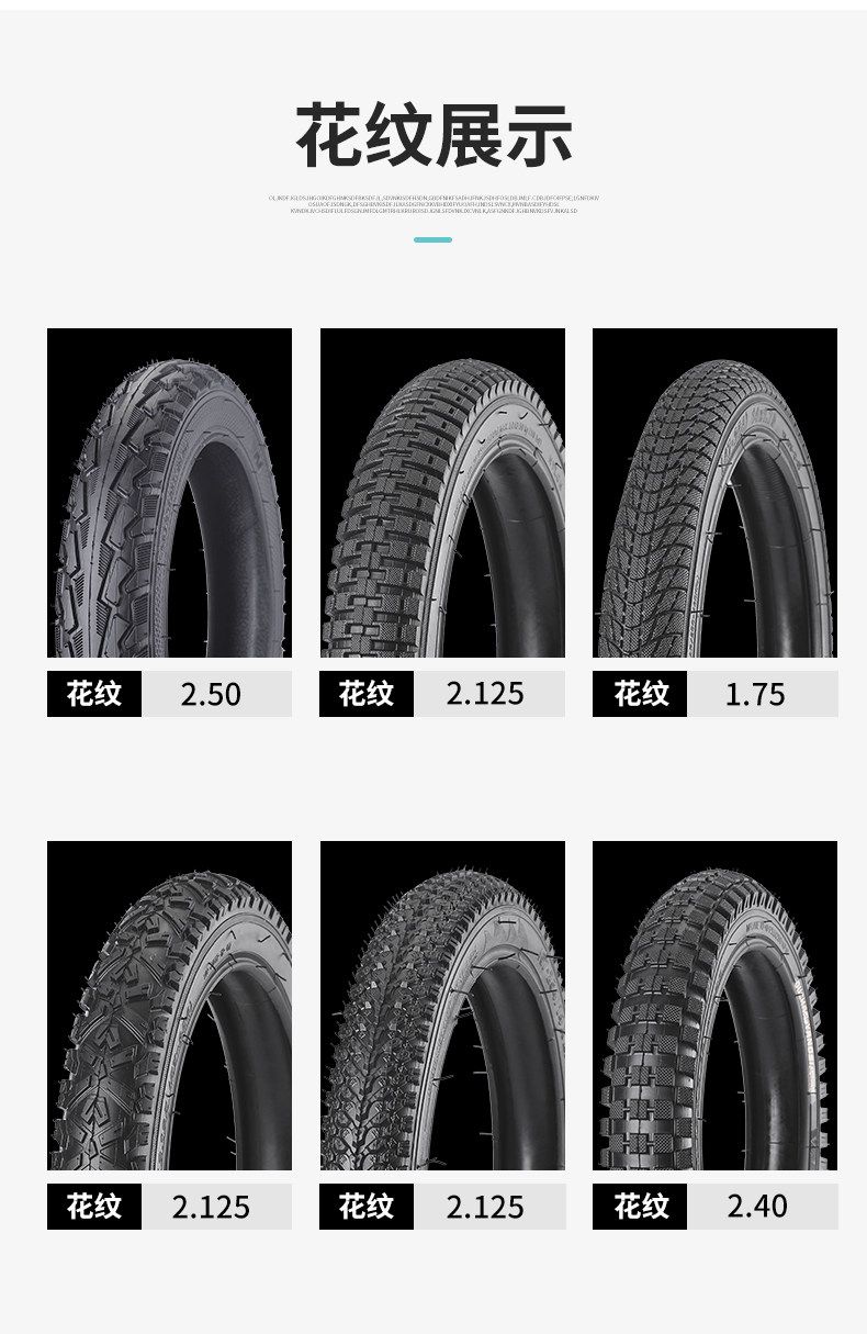 Color Classification 12X1.75 (Inner Tube + Outer Tire),14X1.75 (Inner Tube + Outer Tire),16X1.75 (Inner Tube + Outer Tire),18X1.75 (Inner Tube + Outer Tire),20X1.75 (Inner Tube + Outer Tire),12X2.125 (Inner Tube + Outer Tire),14X2.125 (Inner Tube + Outer Tire),16X2.125 (Inner Tube + Outer Tire),18X2.125 (Inner Tube + Outer Tire),20X2.125 (Inner Tube + Outer Tire),22X2.125 (Inner Tube + Outer Tire),12X2.40 (Inner Tube + Outer Tire),14X2.40 (Inner Tube + Outer Tire),16X2.40 (Inner Tube + Outer Tire),18X2.40 (Inner Tube + Outer Tire),20X2.40 (Inner Tube + Outer Tire),12X2.50 (Inner Tube + Outer Tire),14X2.50 (Inner Tube + Outer Tire),16X2.50 (Inner Tube + Outer Tire),18X2.50 (Inner Tube + Outer Tire),20X2.50 (Inner Tube + Outer Tire),16X2.35 (Inner Tube + Outer Tire),18X2.35 (Inner Tube + Outer Tire),20X2.35 (Inner Tube + Outer Tire),22X2.35 (Inner Tube + Outer Tire)