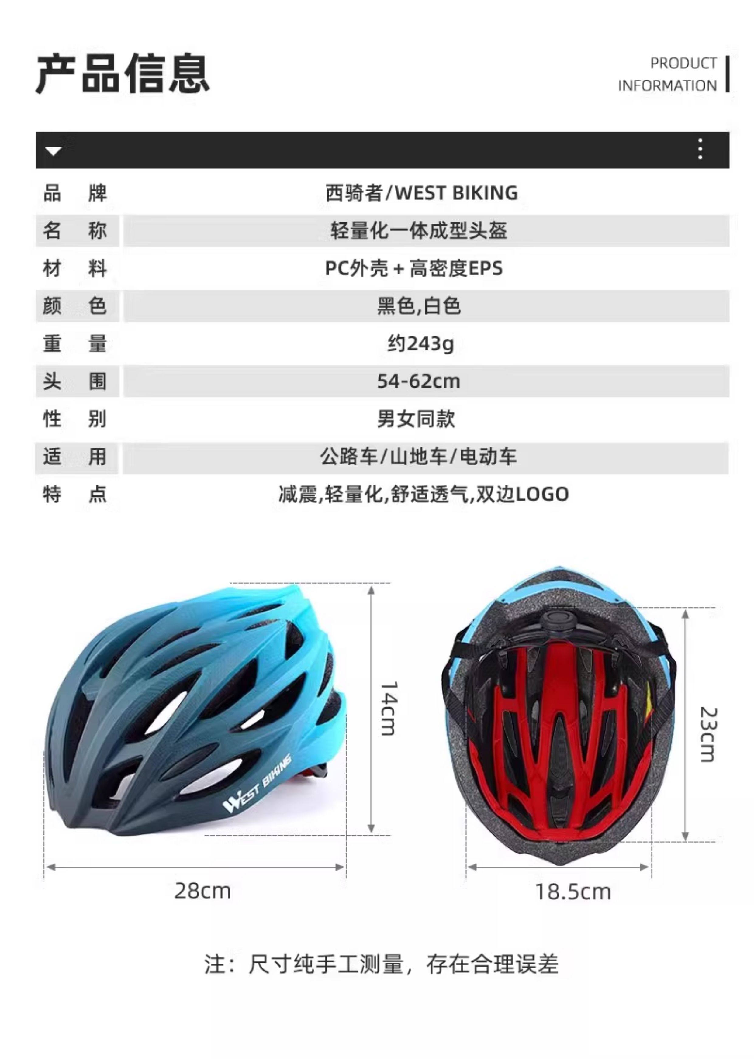 West Rider Cycling Helmet, One-Piece Mountain Bike and Road Bike Lightweight Cycling Equipment for Men and Women