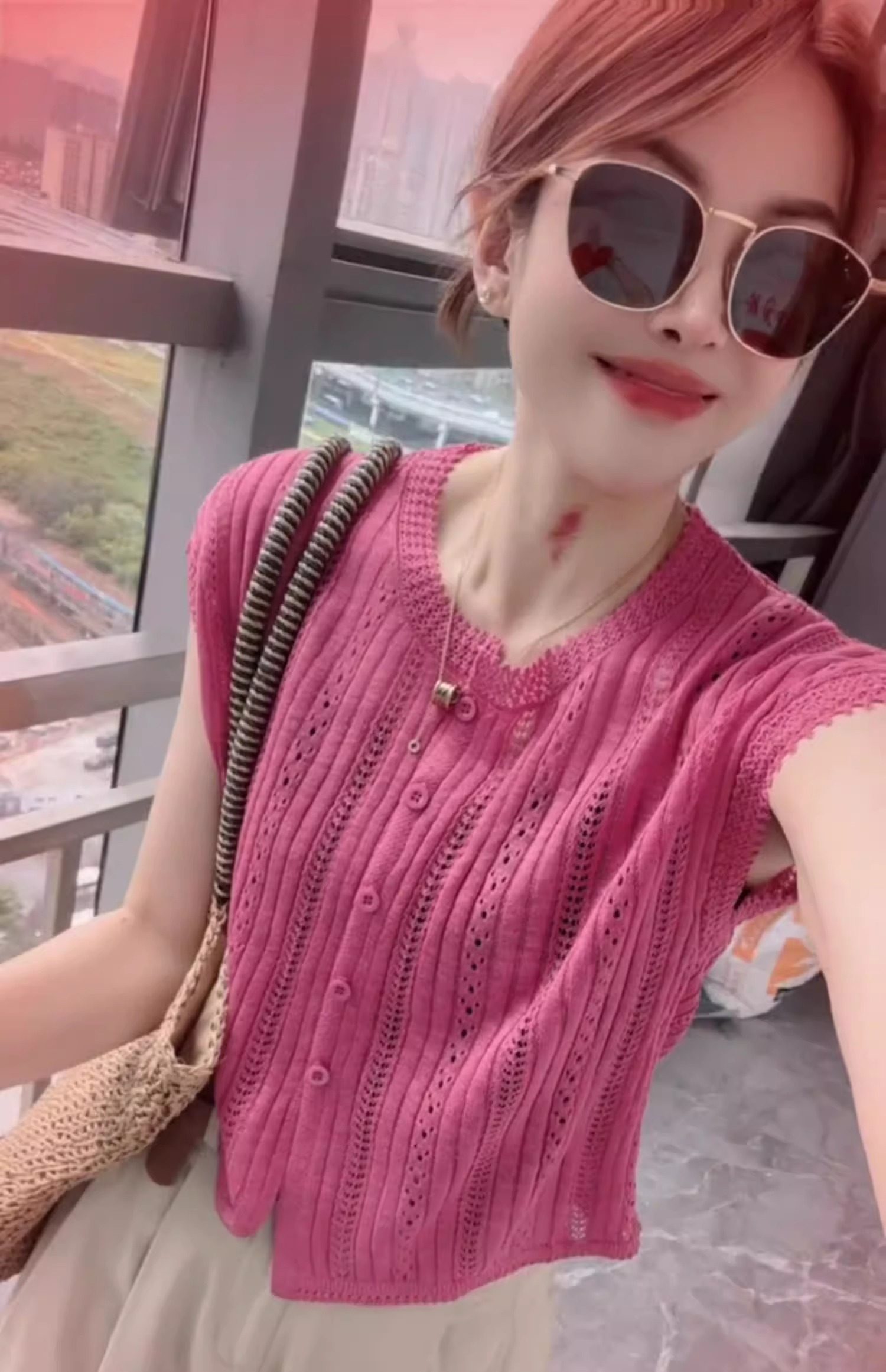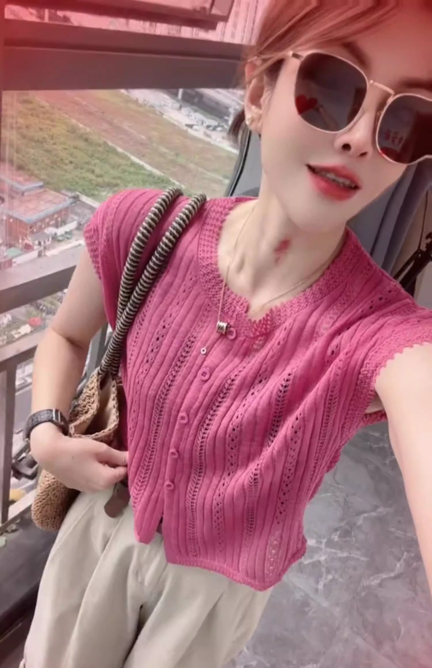 Himbeerrosa eisseide gestricktes kurzarm-t-shirt für damen 2025 neues sommer-dopamin-tragendes dünnes oberteil