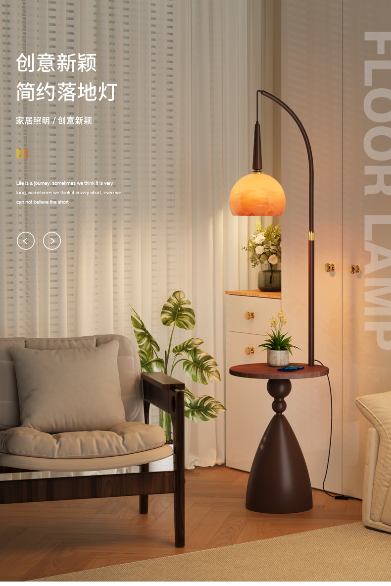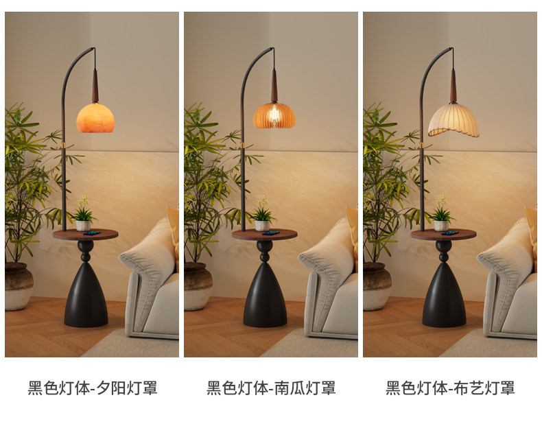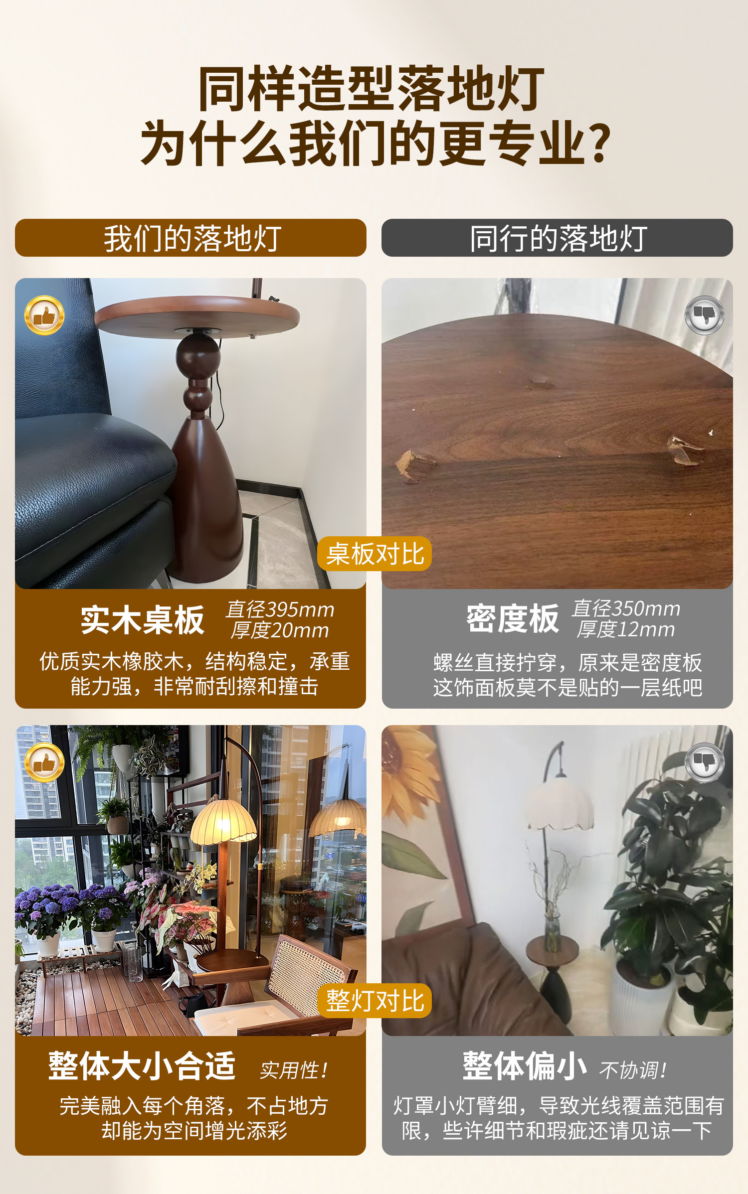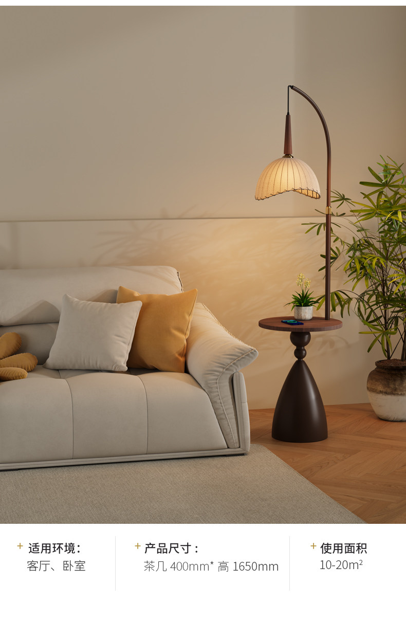 侘寂风落地灯客厅沙发旁卧室床头灯创意带茶几中古氛围灯立式台灯