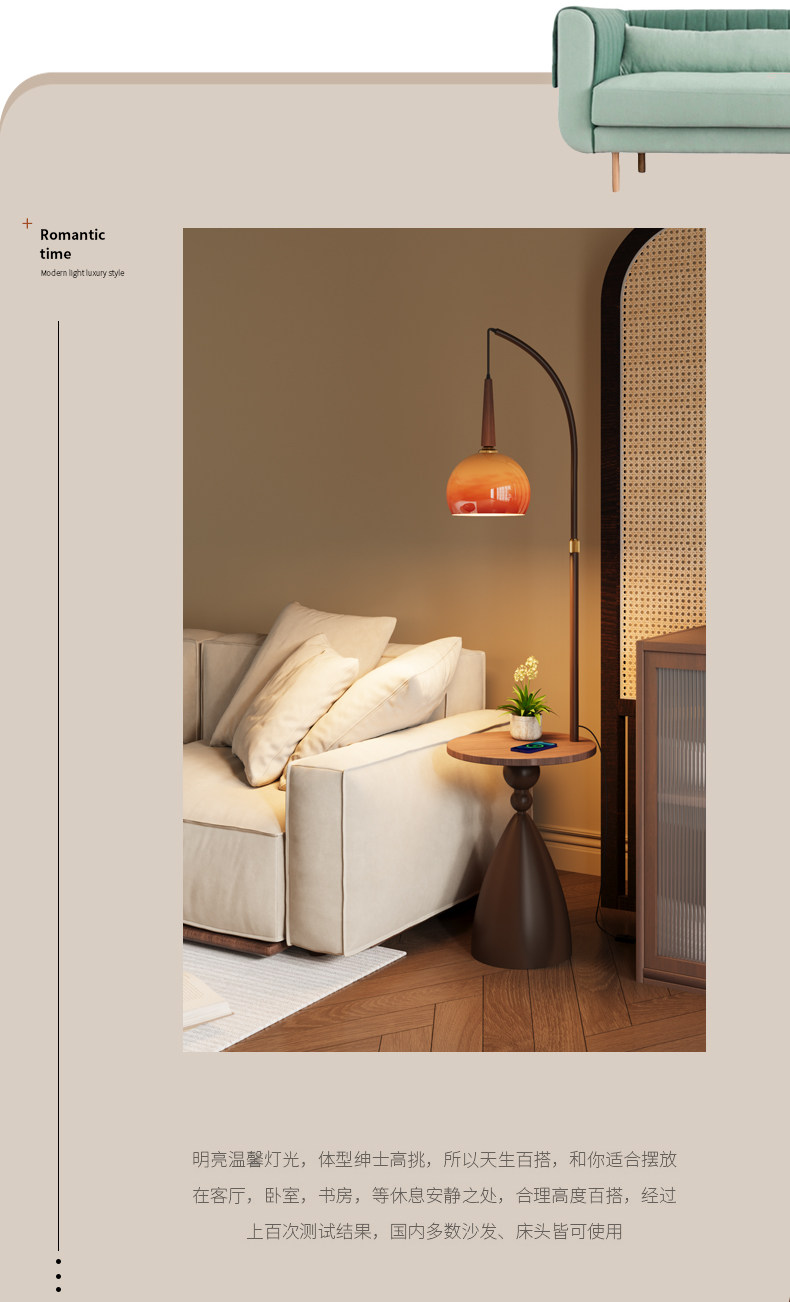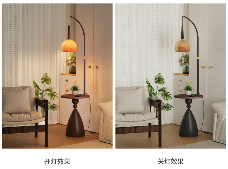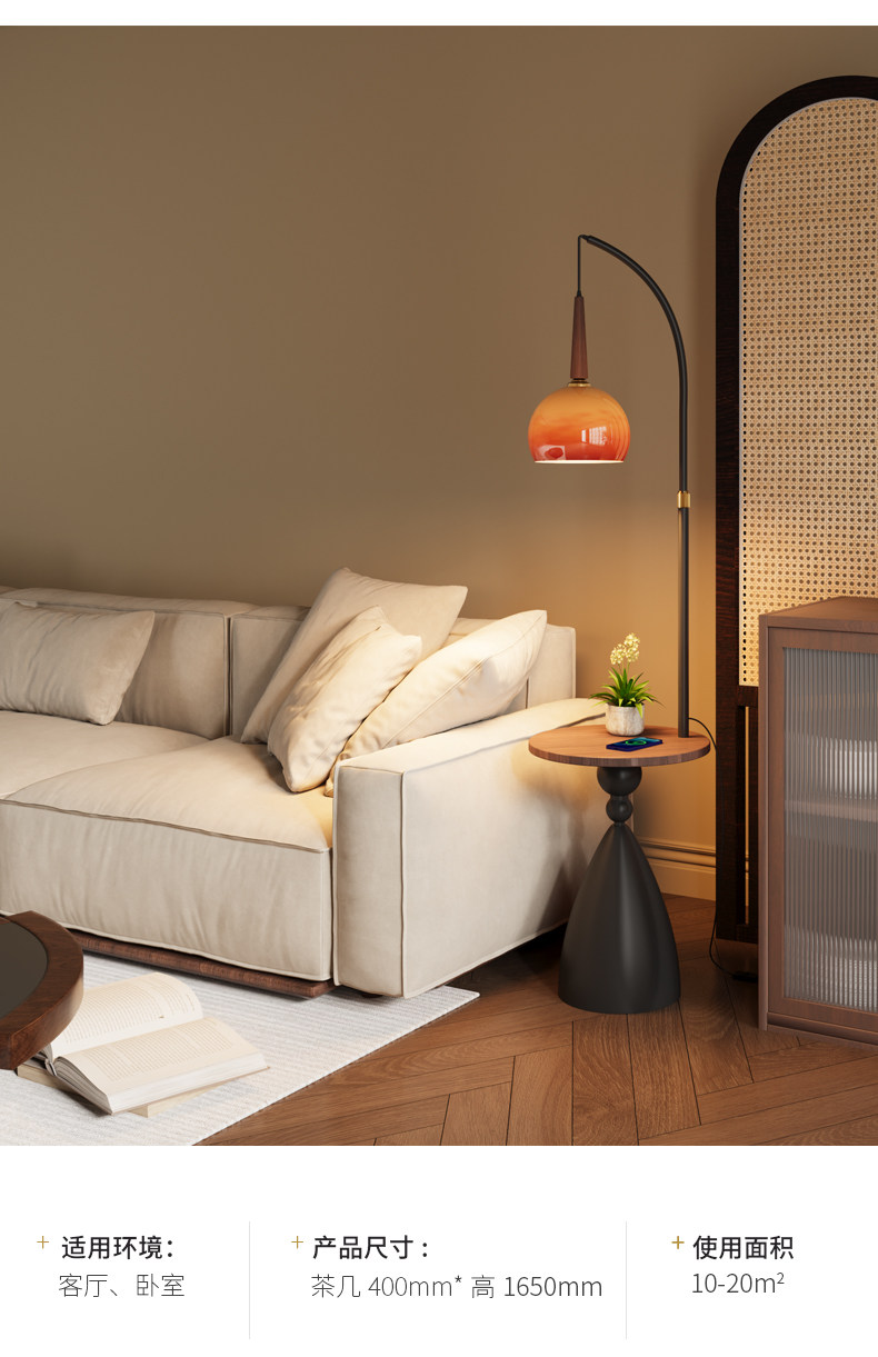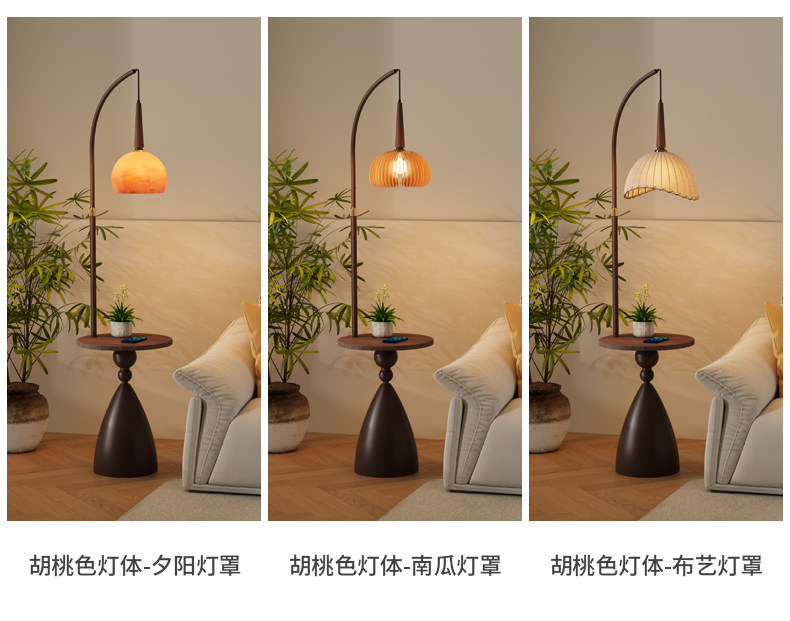 侘寂风落地灯客厅沙发旁卧室床头灯创意带茶几中古氛围灯立式台灯