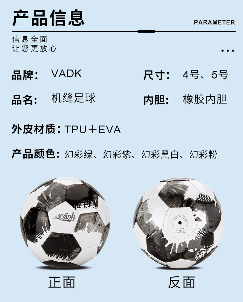 VADK小学生儿童4号足球成人专业比赛初中生中考学生专用足球5号五