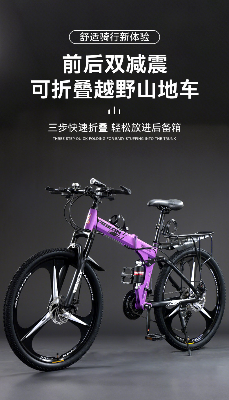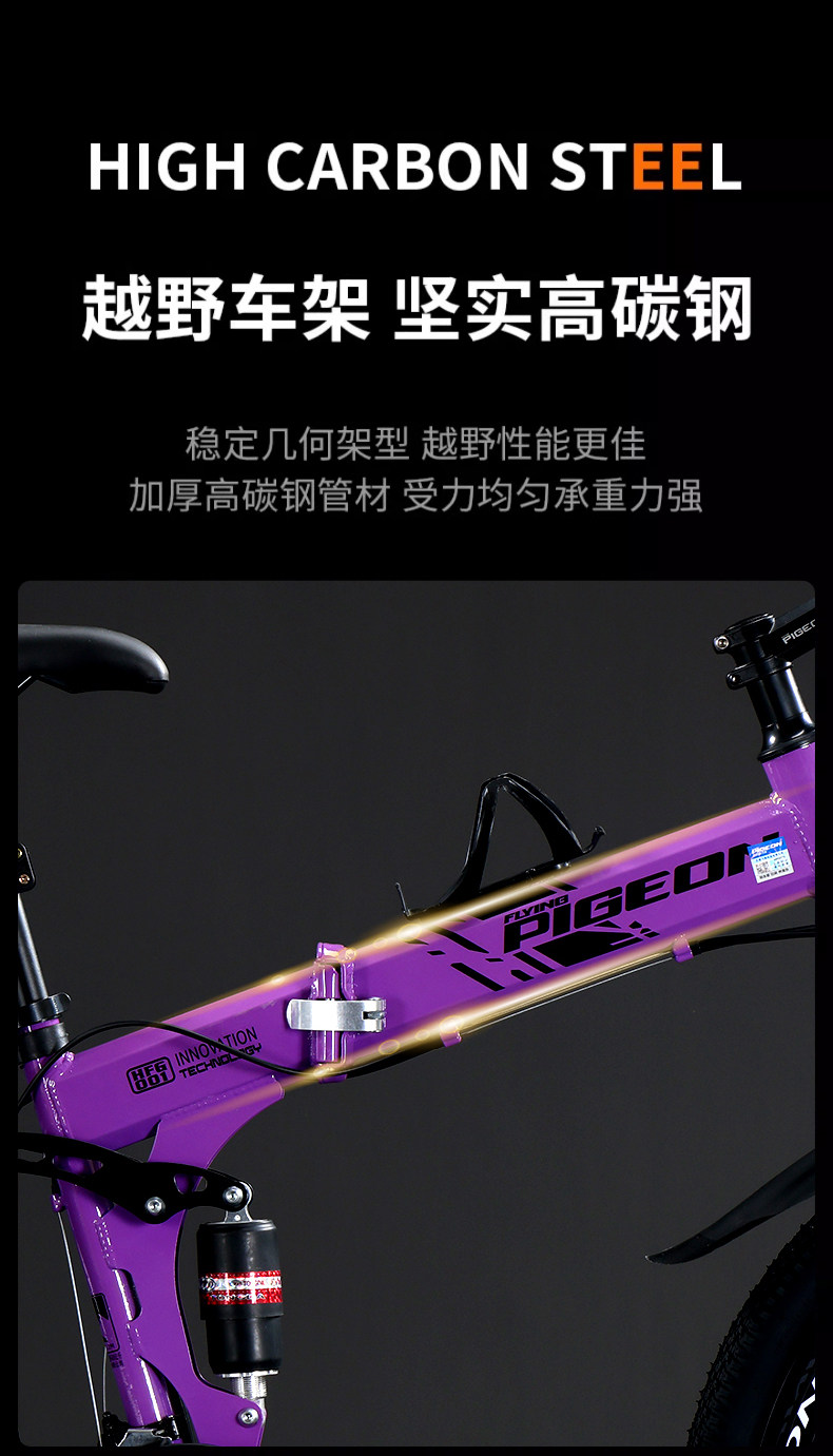 Flying Pigeon Folding Mountain Bike Men's and Women's Model for Teenagers and Adults, Variable Speed, Ultra-Fast, Lightweight Off-Road Racing Bicycle