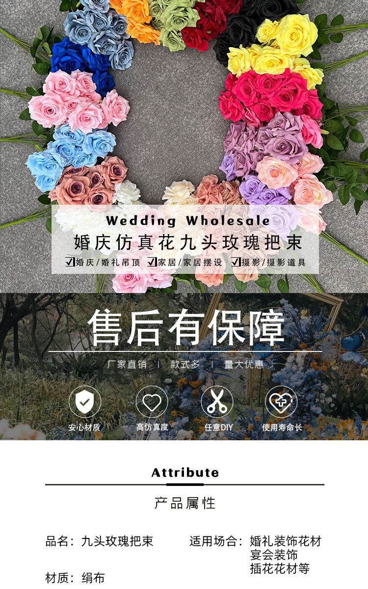 玫瑰花束仿真花艺婚礼堂装饰绢花绣球宴牡丹会厅布置路引瀑布插花