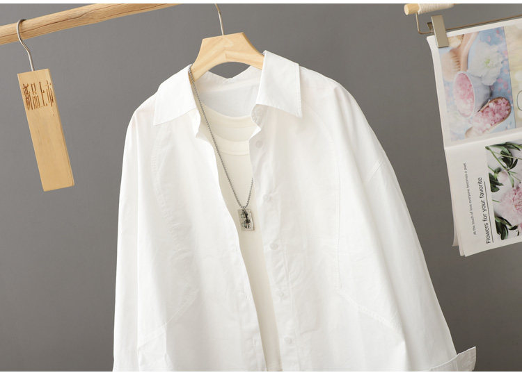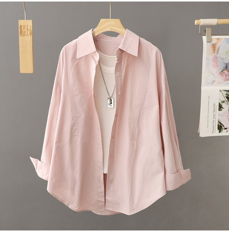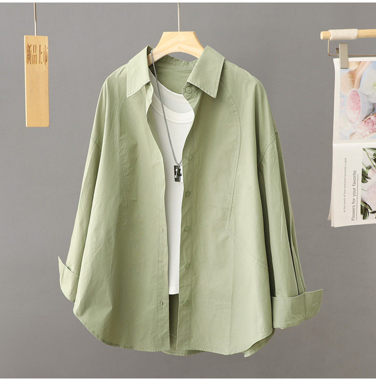 2025秋季新款简约百搭纯色衬衫上衣女装宽松衬衣春秋纯棉外套开衫