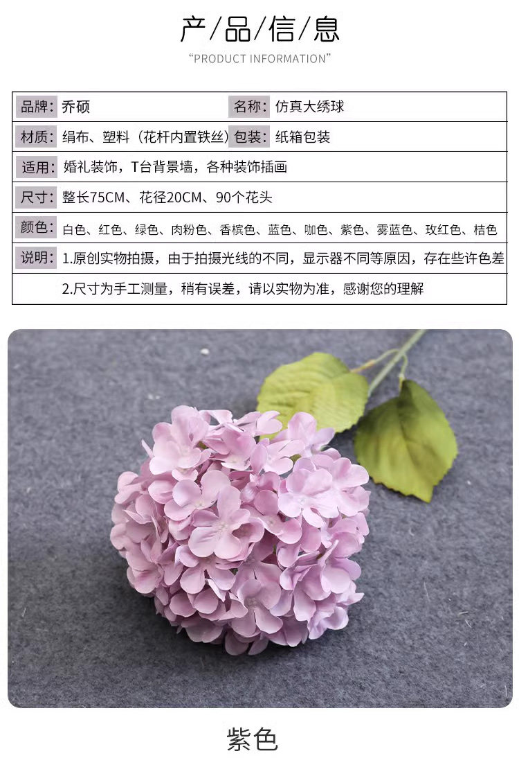 婚庆绣球仿真花白色绿色紫色婚礼粉色绢花婚庆插花排路引花艺假花