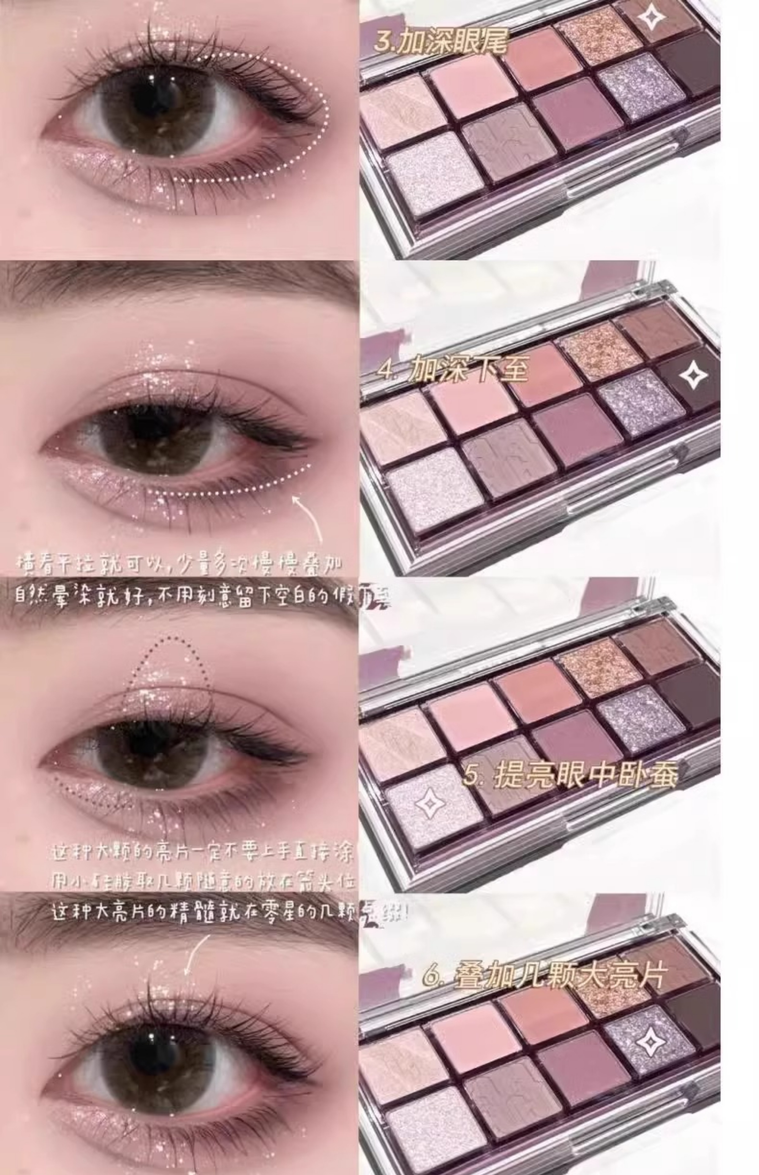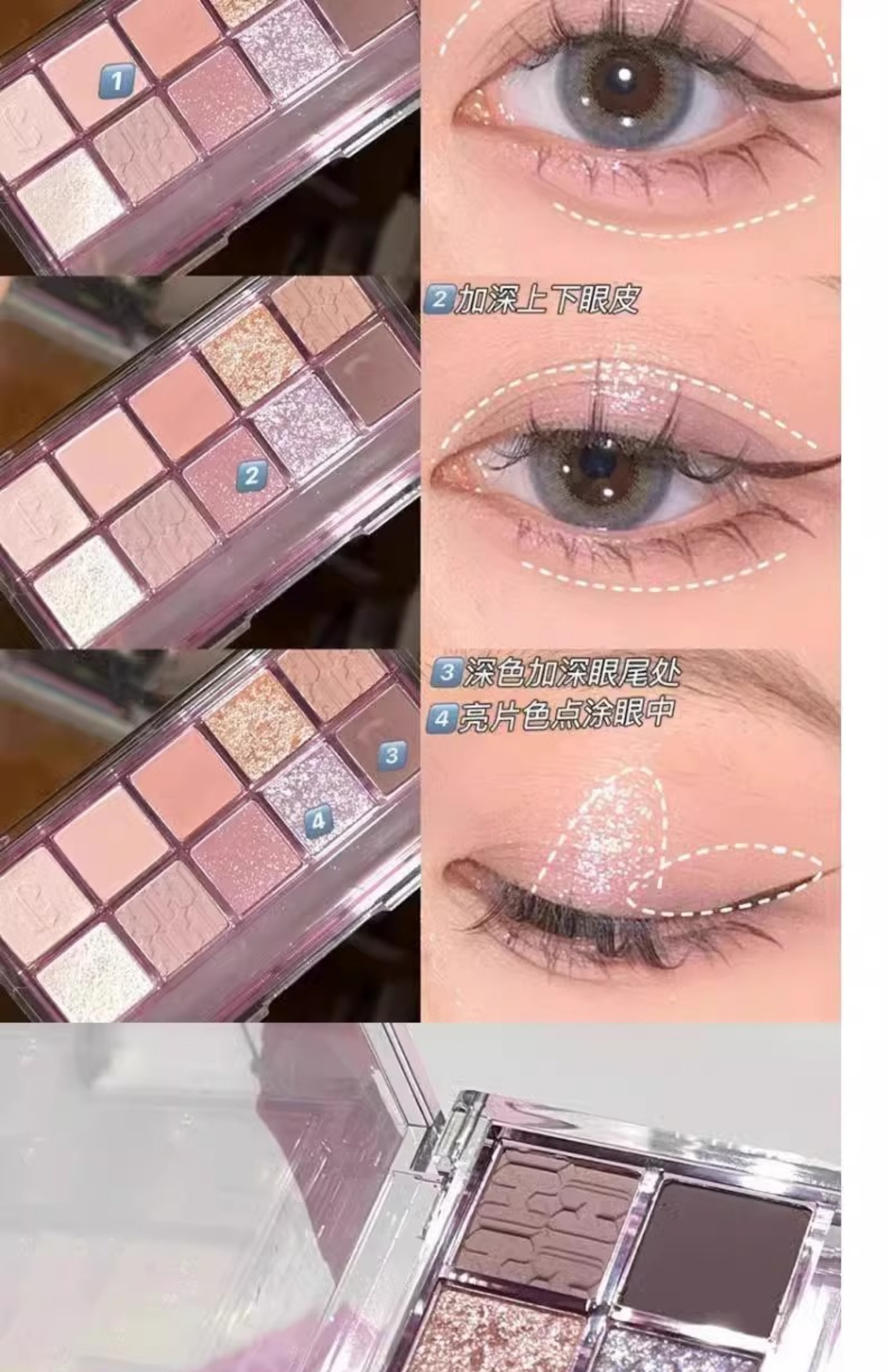 Jiaqi Recommends a Ten-Color Eyeshadow Palette with Shimmer, Matte, Fine Glitter, Taro Purple, Pure Desire, Low Saturation, Light Makeup, Earth Tones