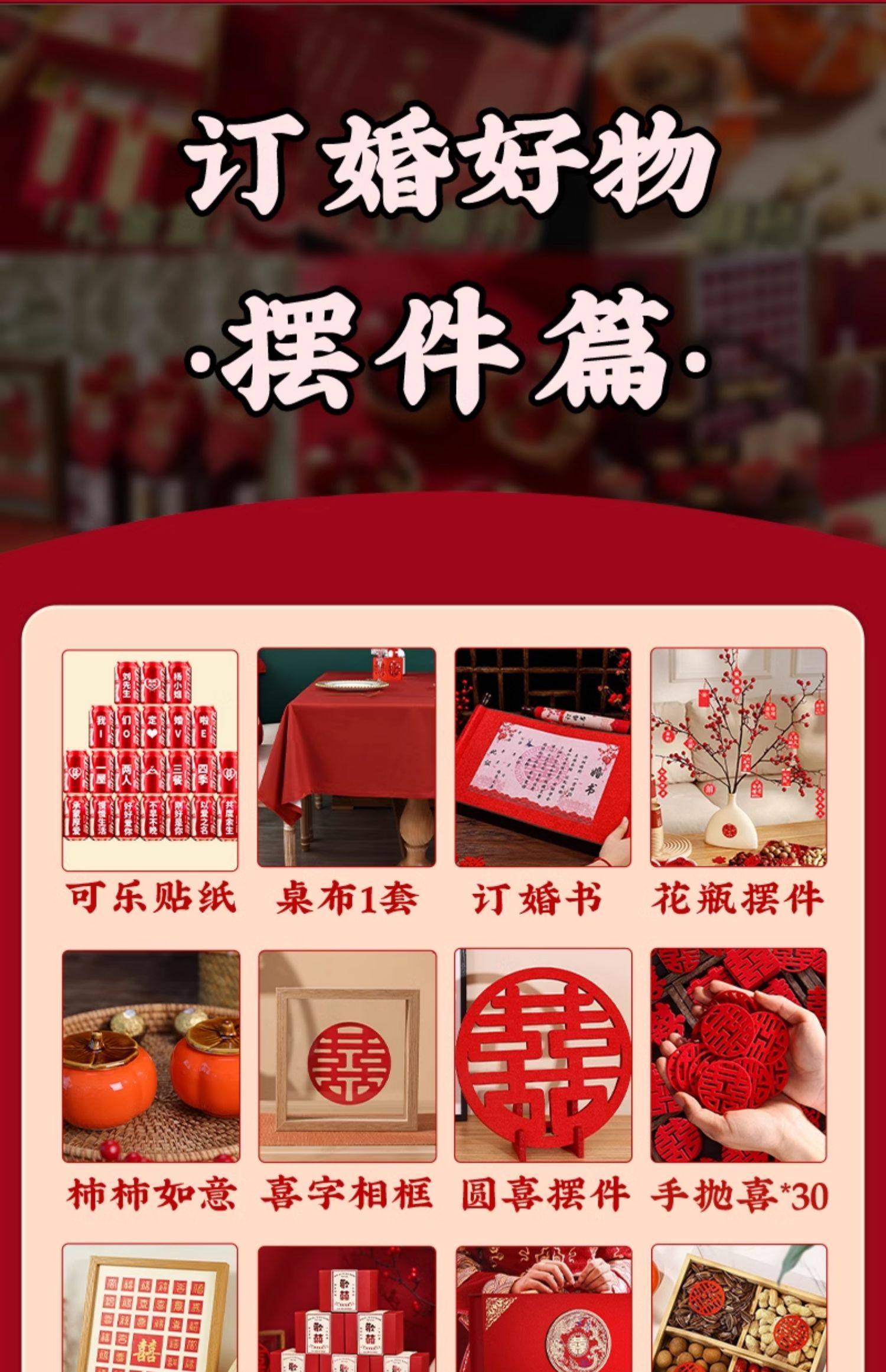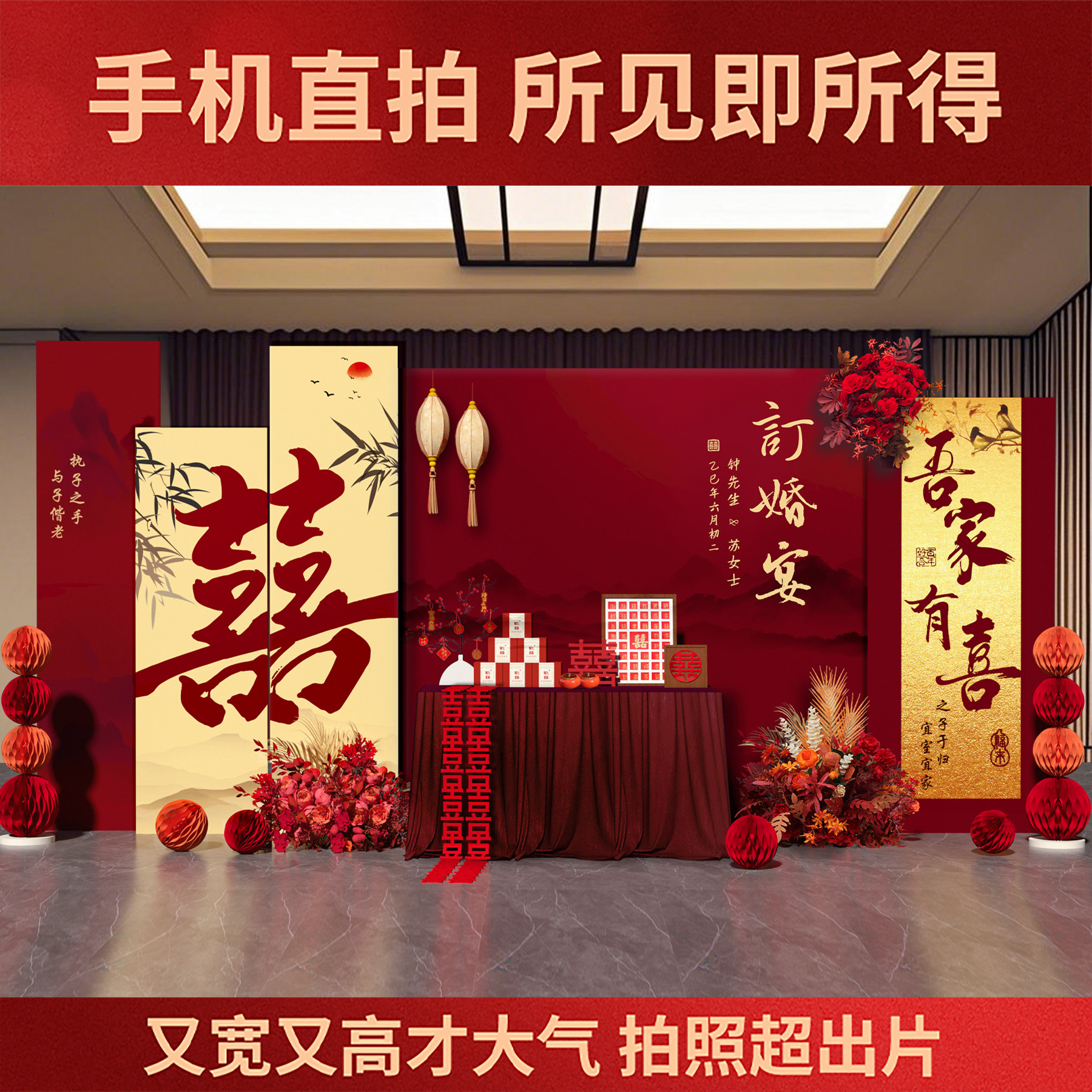 2025网红新中式订婚宴场景布置装饰定亲全套摆件台用品背景墙kt板