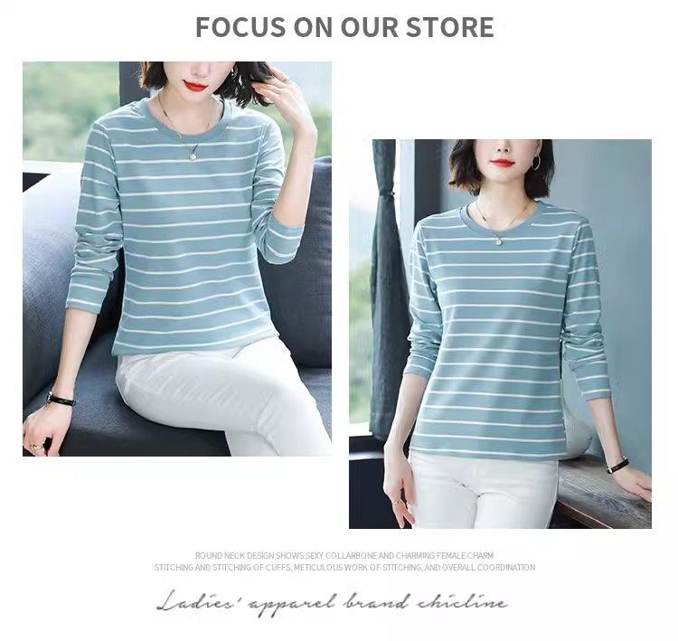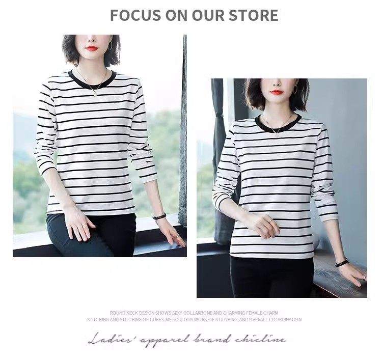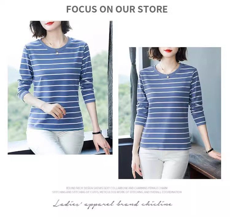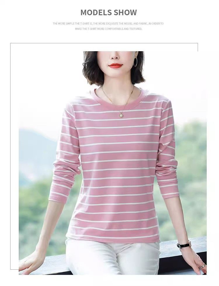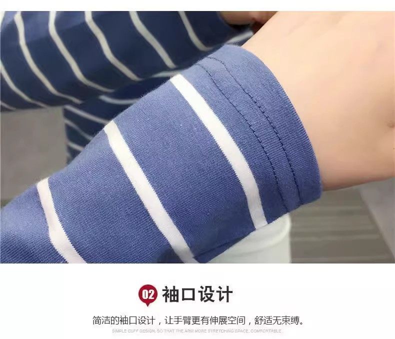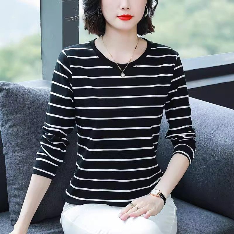 春秋装遮肚子纯棉上衣长袖t恤女宽松大码条纹秋衣薄款内搭打底衫