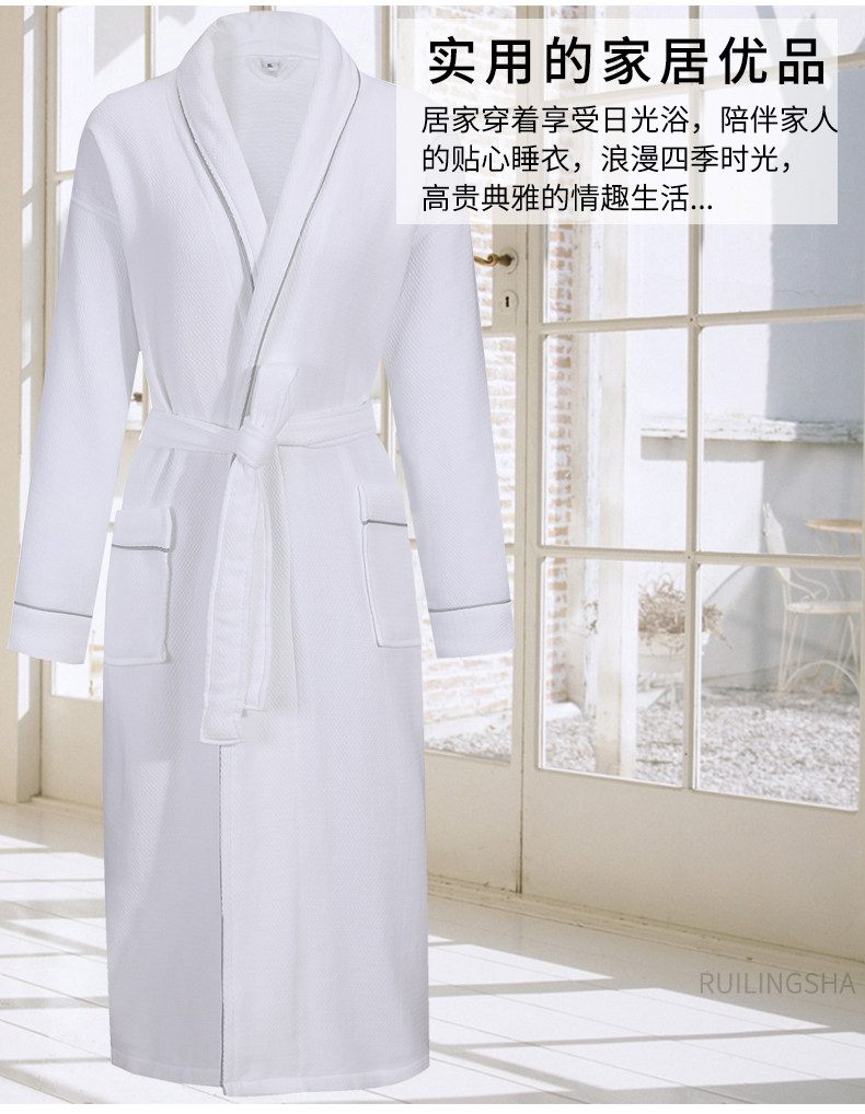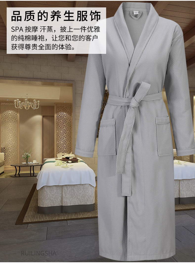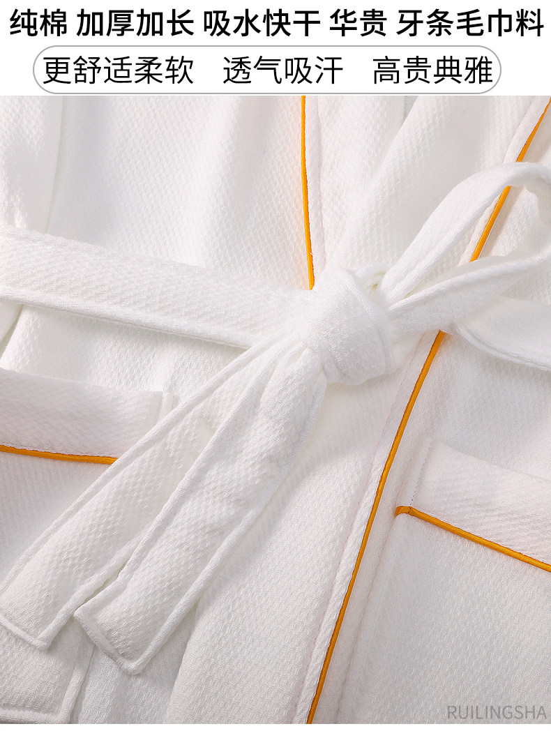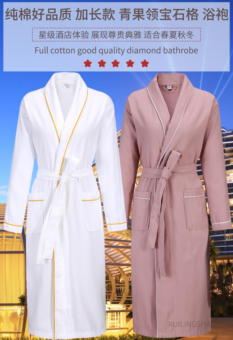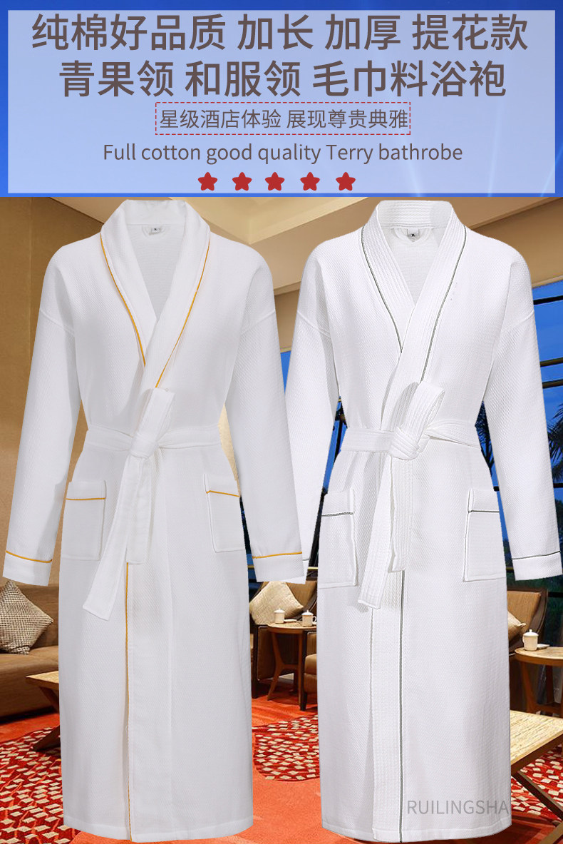 Hotel pure cotton bathrobe absorbent quick-drying towel material for men and women's yukata four seasons beauty salon long style large size sleeping gown