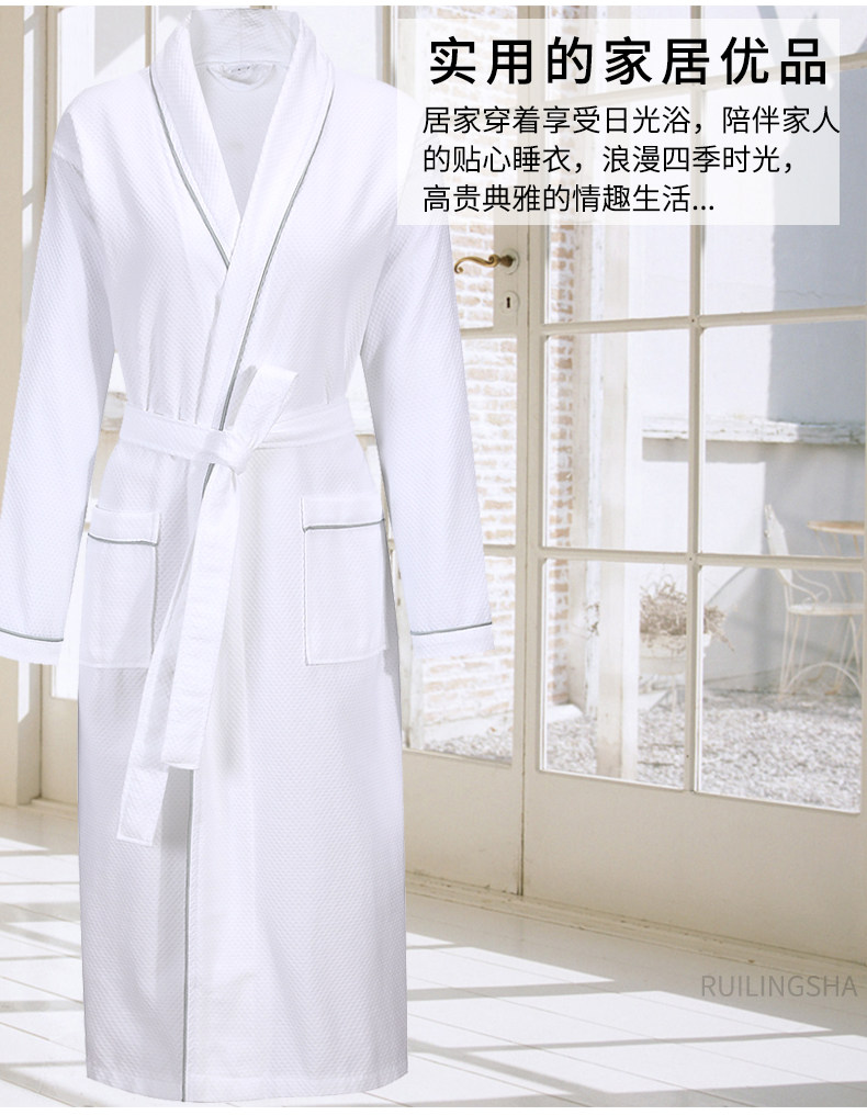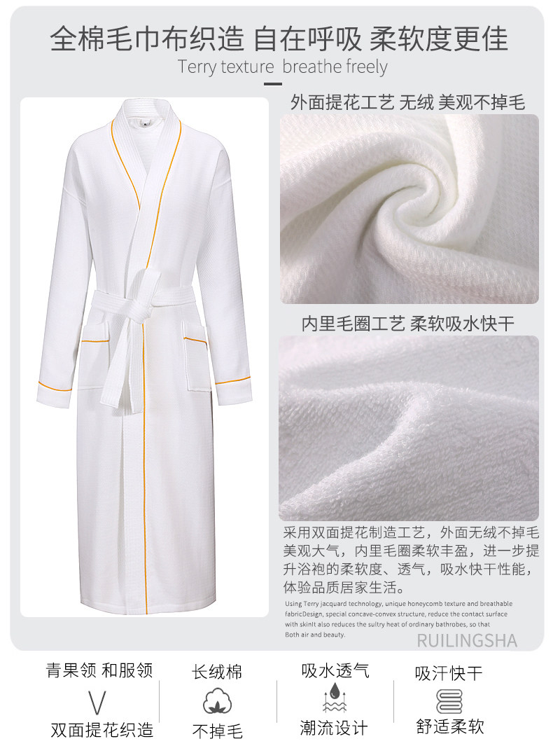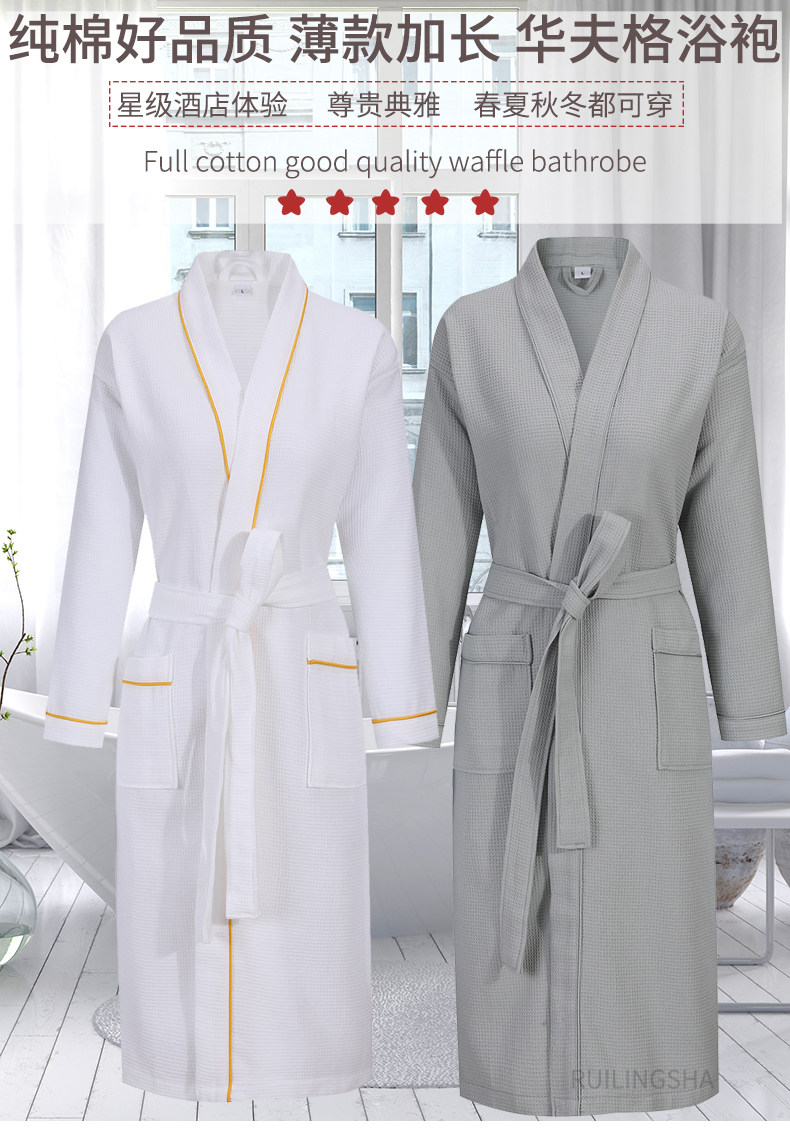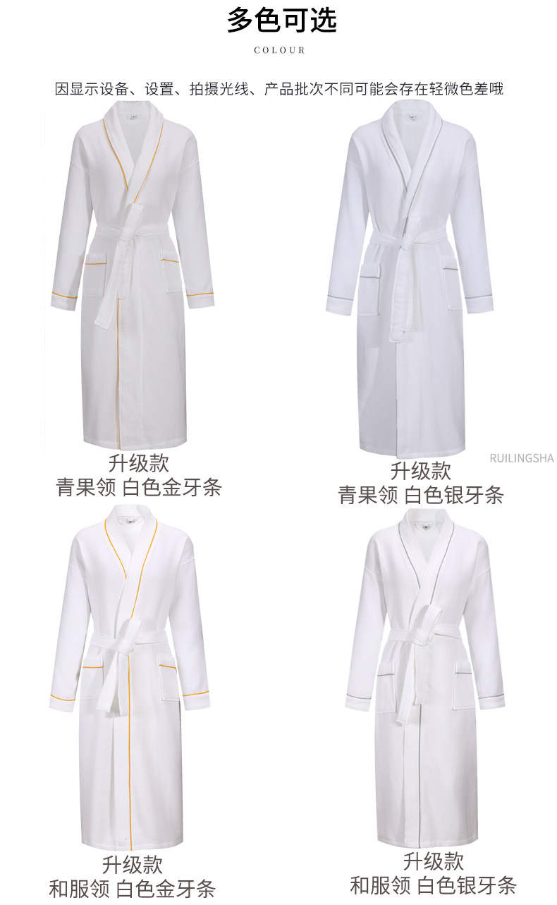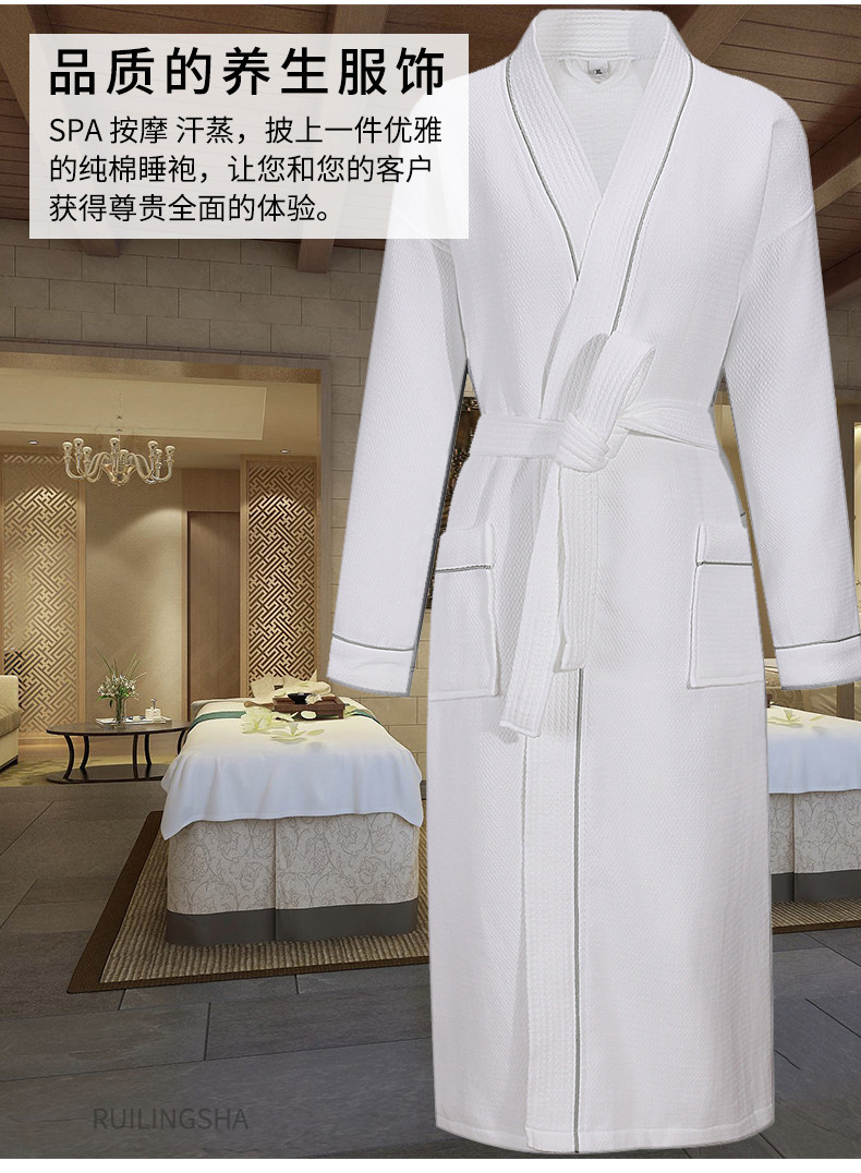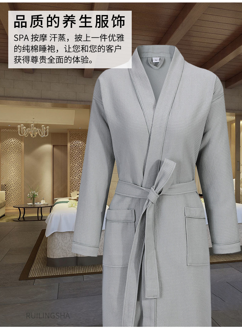 Hotel pure cotton bathrobe absorbent quick-drying towel material for men and women's yukata four seasons beauty salon long style large size sleeping gown