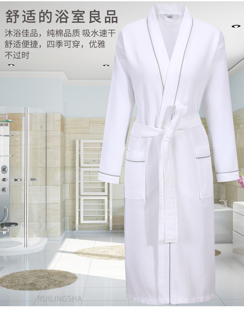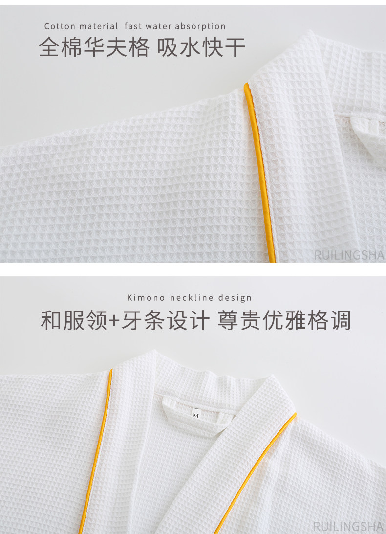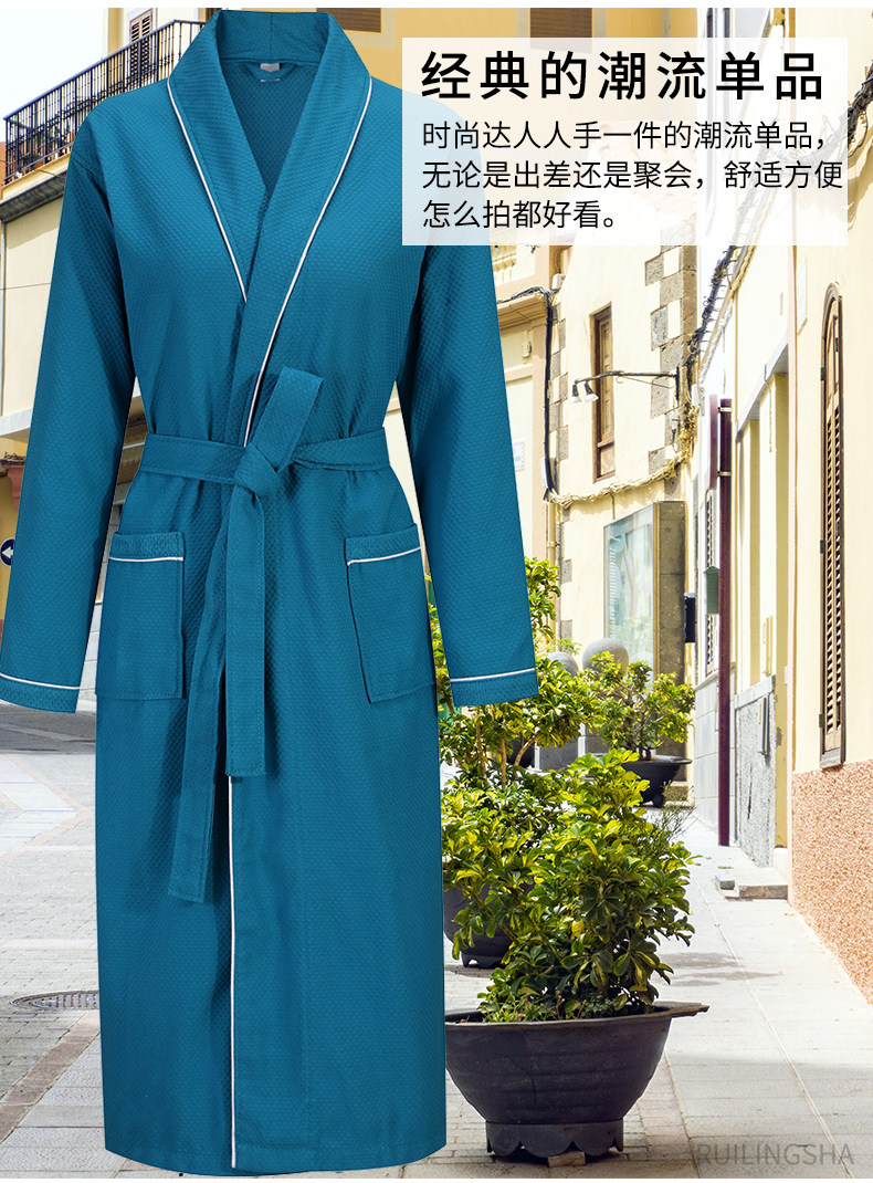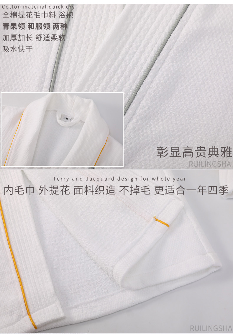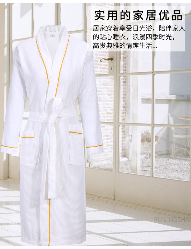 Hotel pure cotton bathrobe absorbent quick-drying towel material for men and women's yukata four seasons beauty salon long style large size sleeping gown