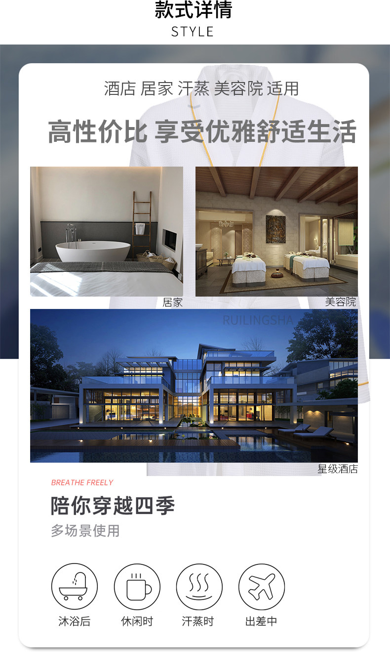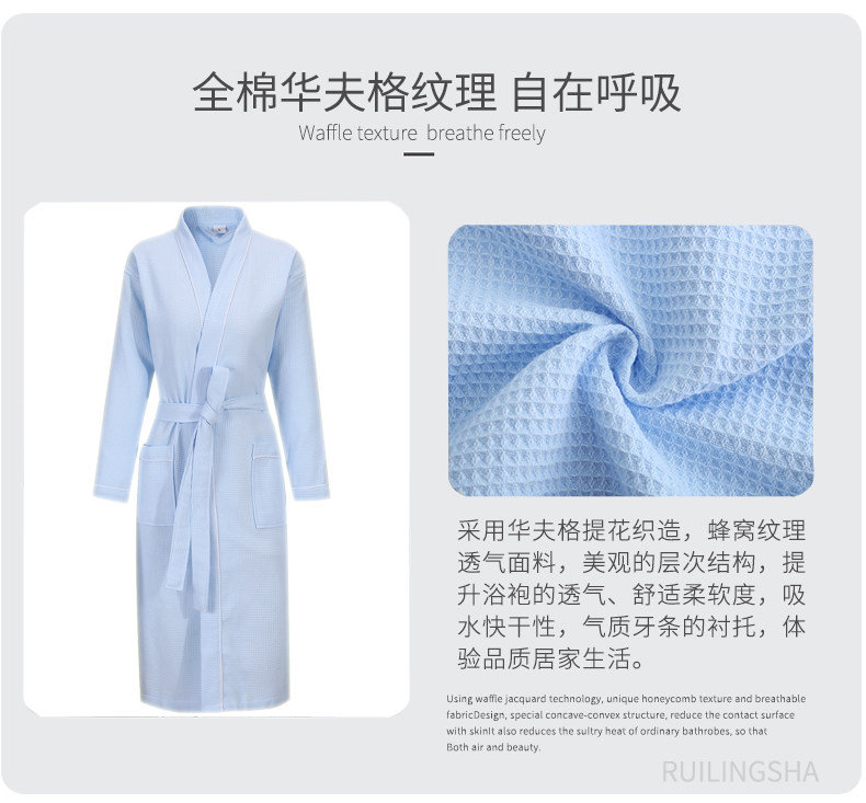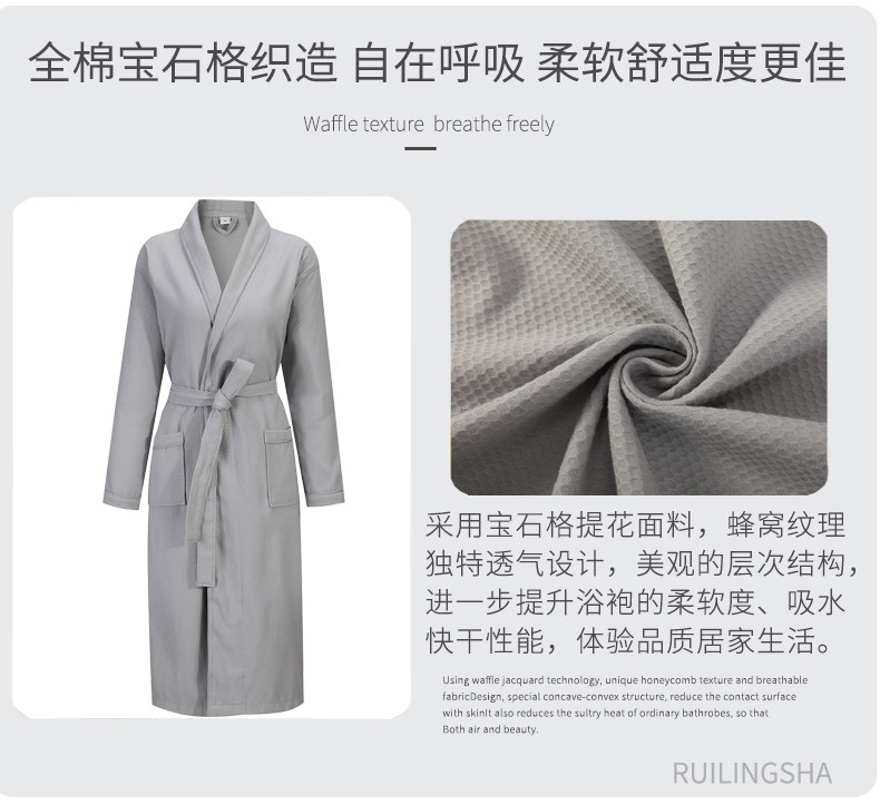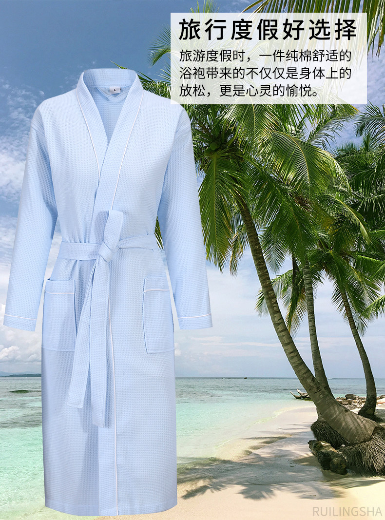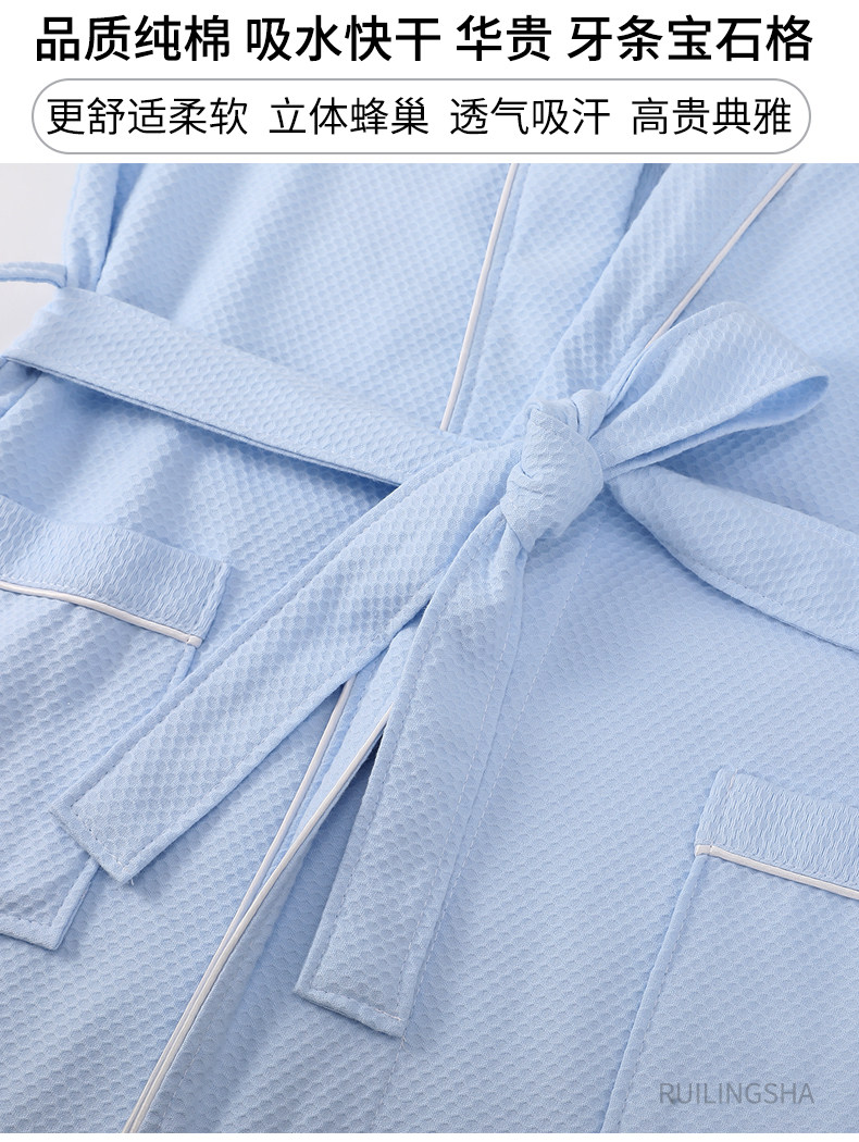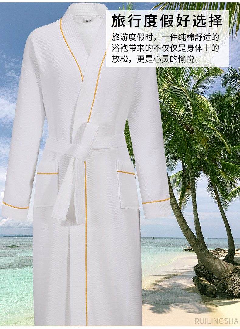 Hotel pure cotton bathrobe absorbent quick-drying towel material for men and women's yukata four seasons beauty salon long style large size sleeping gown