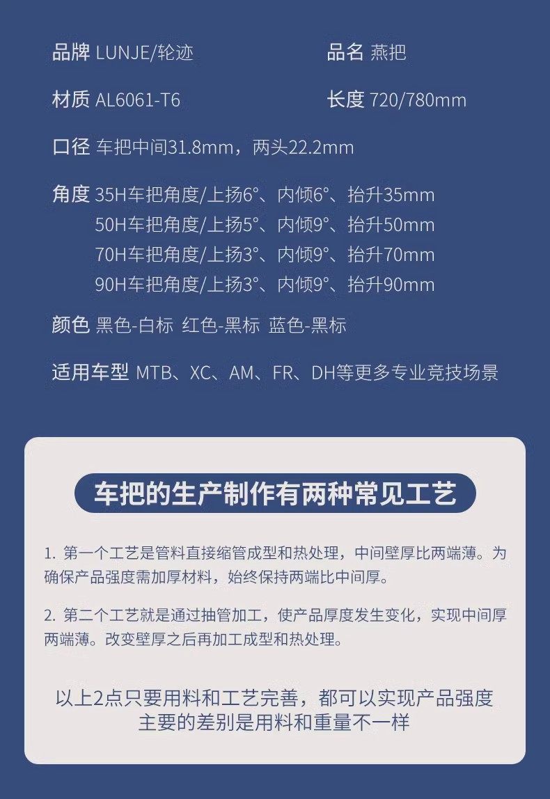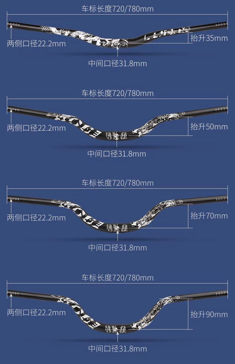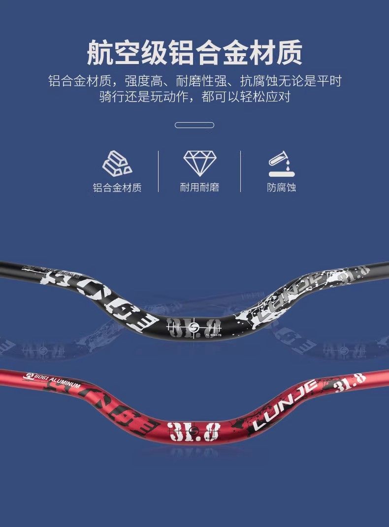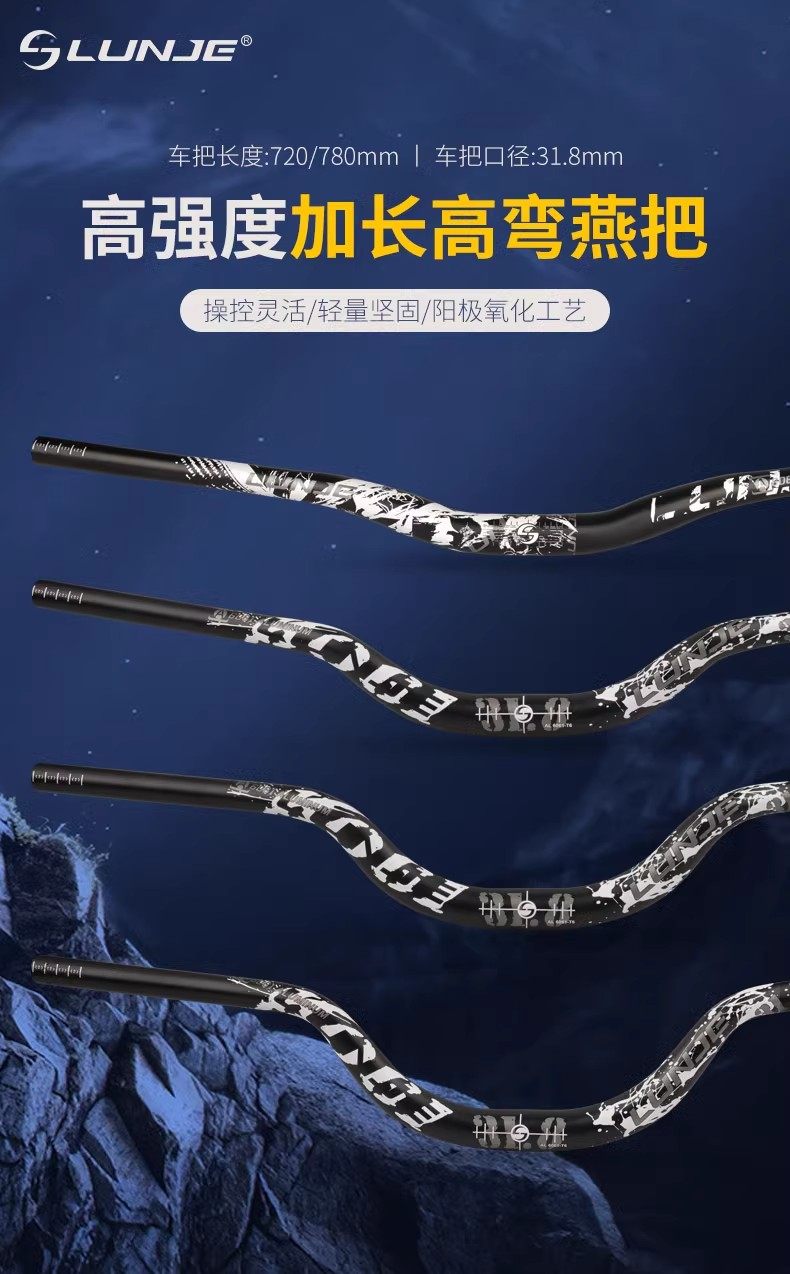 Wheeltrack Mountain Bike Handlebar, Aluminum Alloy, Extended and Enlarged 35/50/70/90, Raised for Street Climbing and Downhill Riding